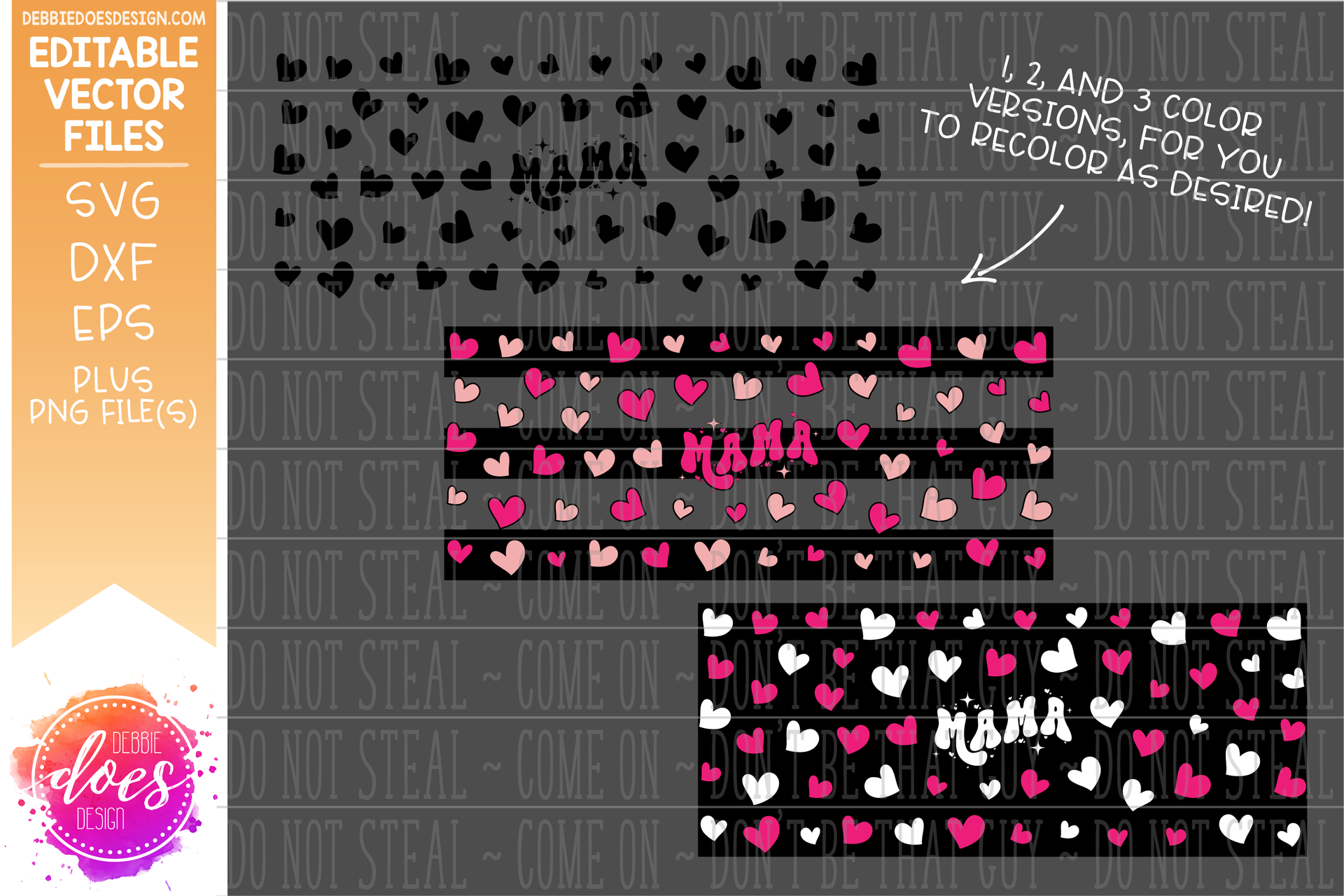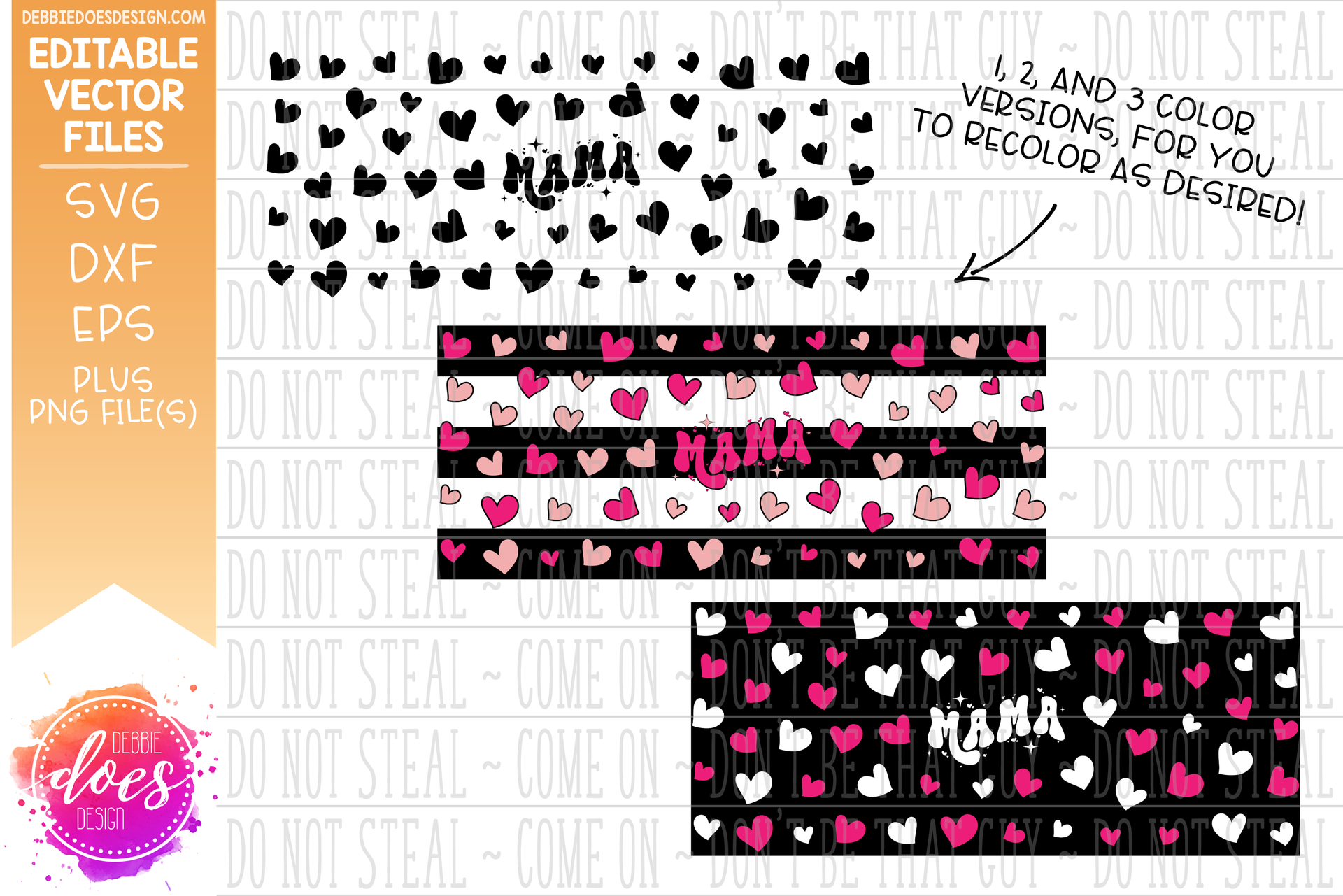 Mama Hearts Print Glass Can Tumbler Designs - Set of 3 - Editable Vector Design