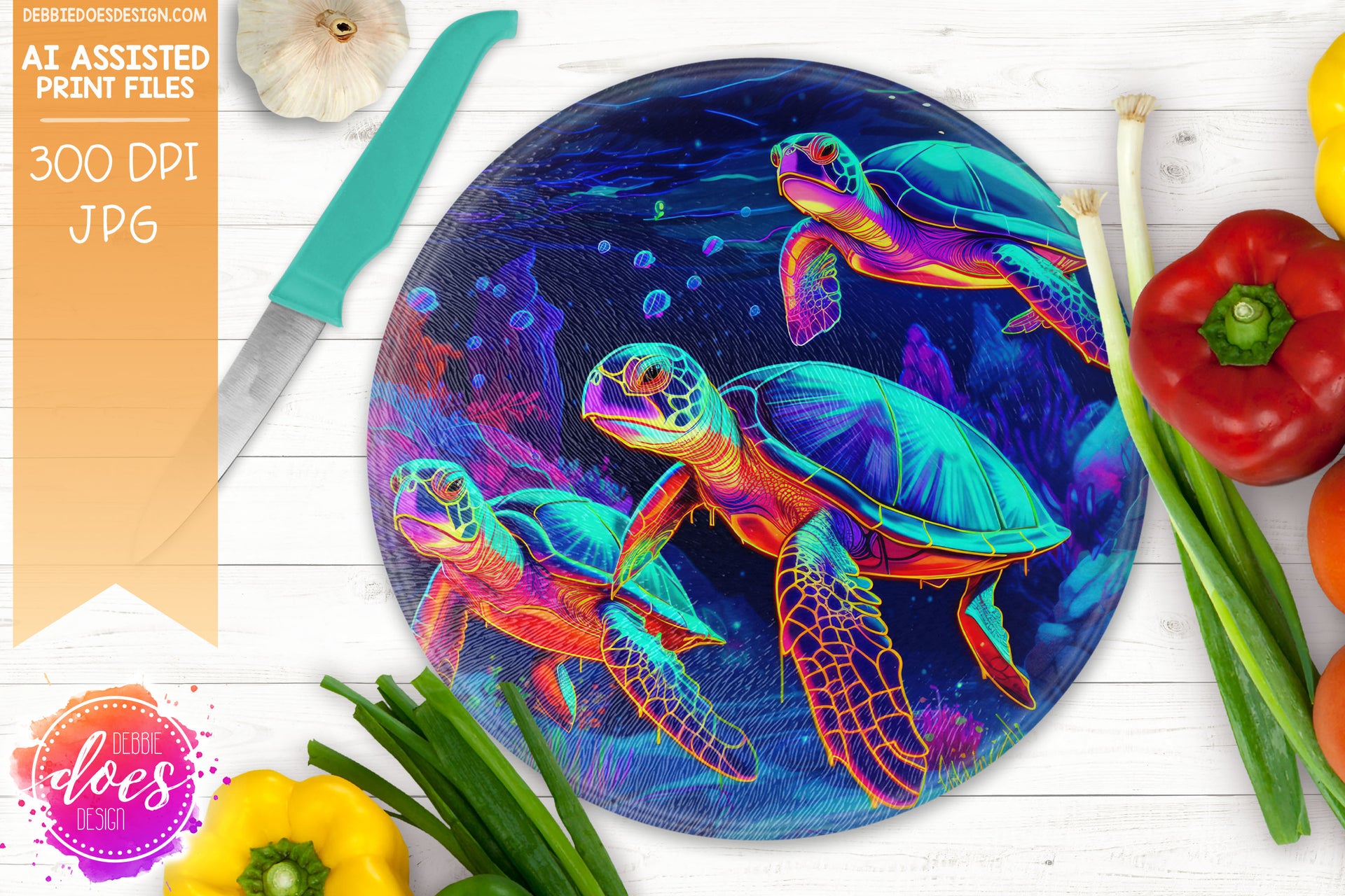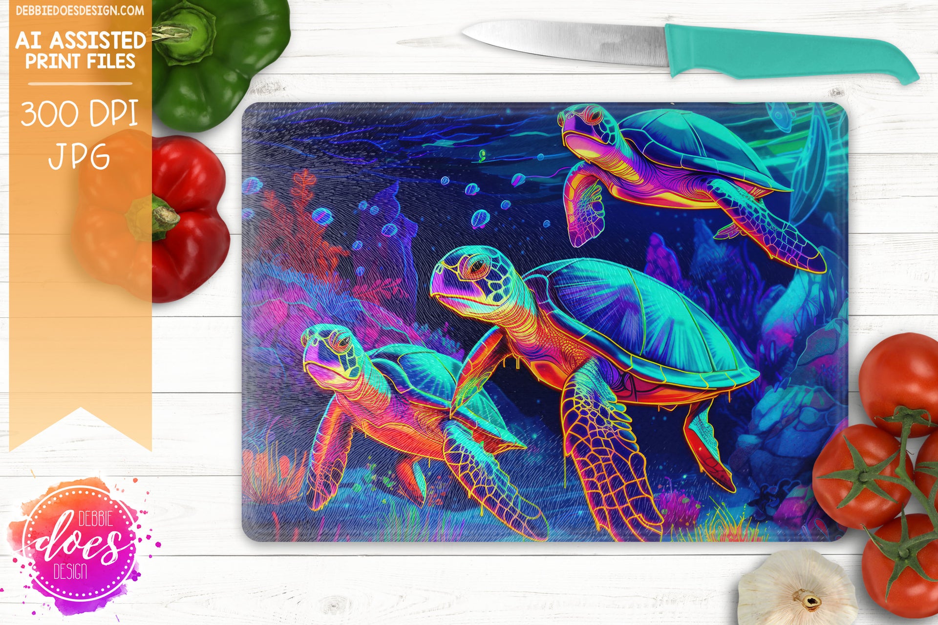 Neon Sea Turtles 1 - Cutting Boards - Printable/Sublimation Design