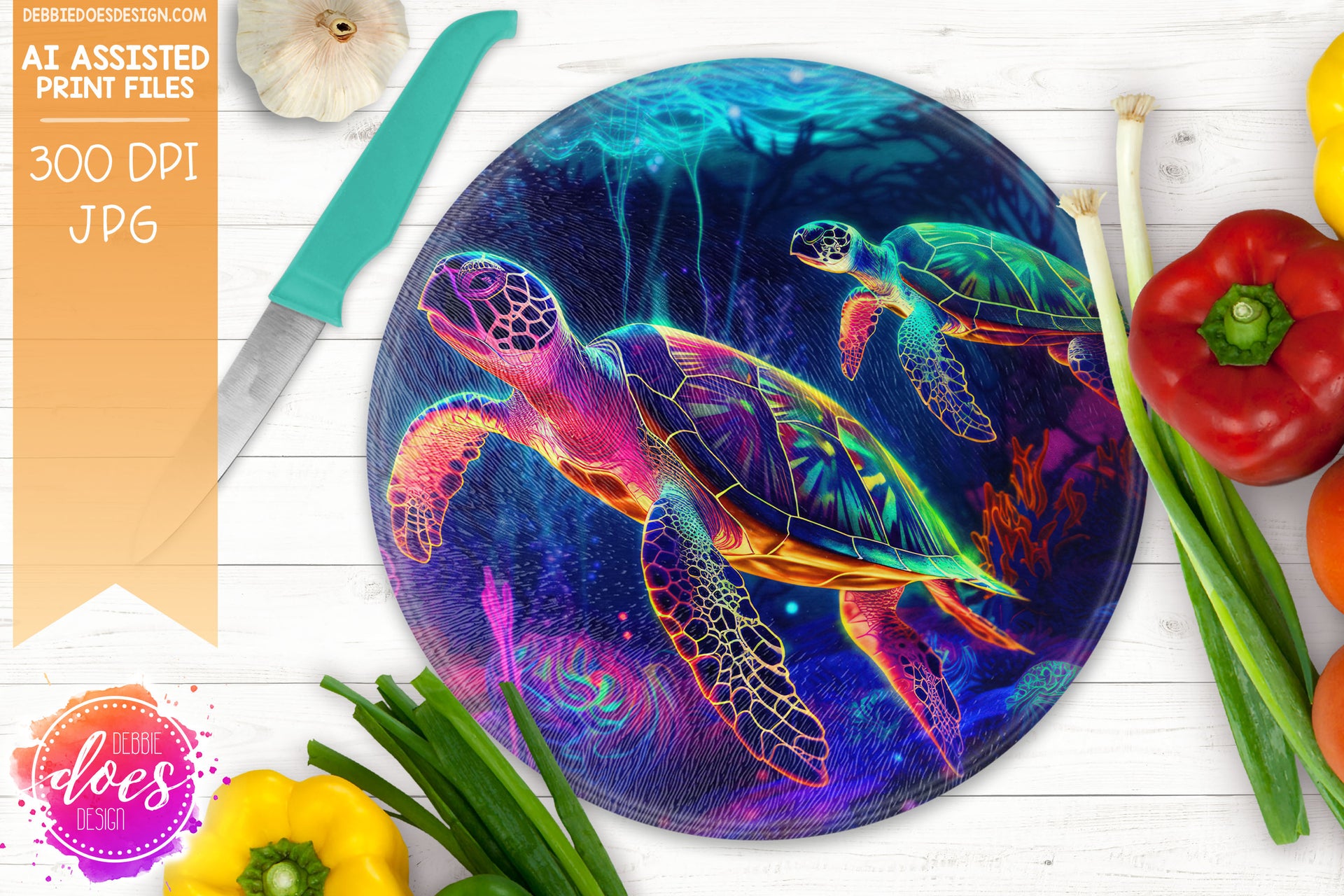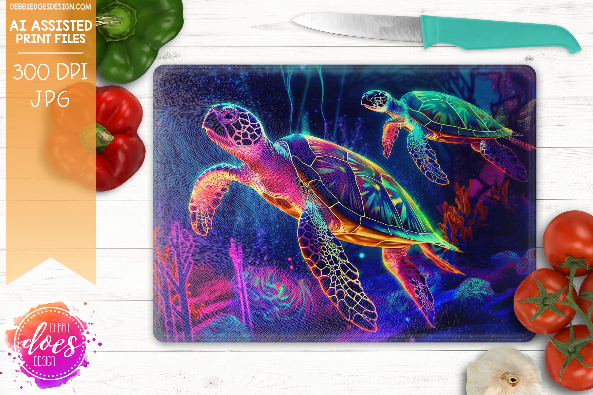Neon Sea Turtles 2 - Cutting Boards - Printable/Sublimation Design