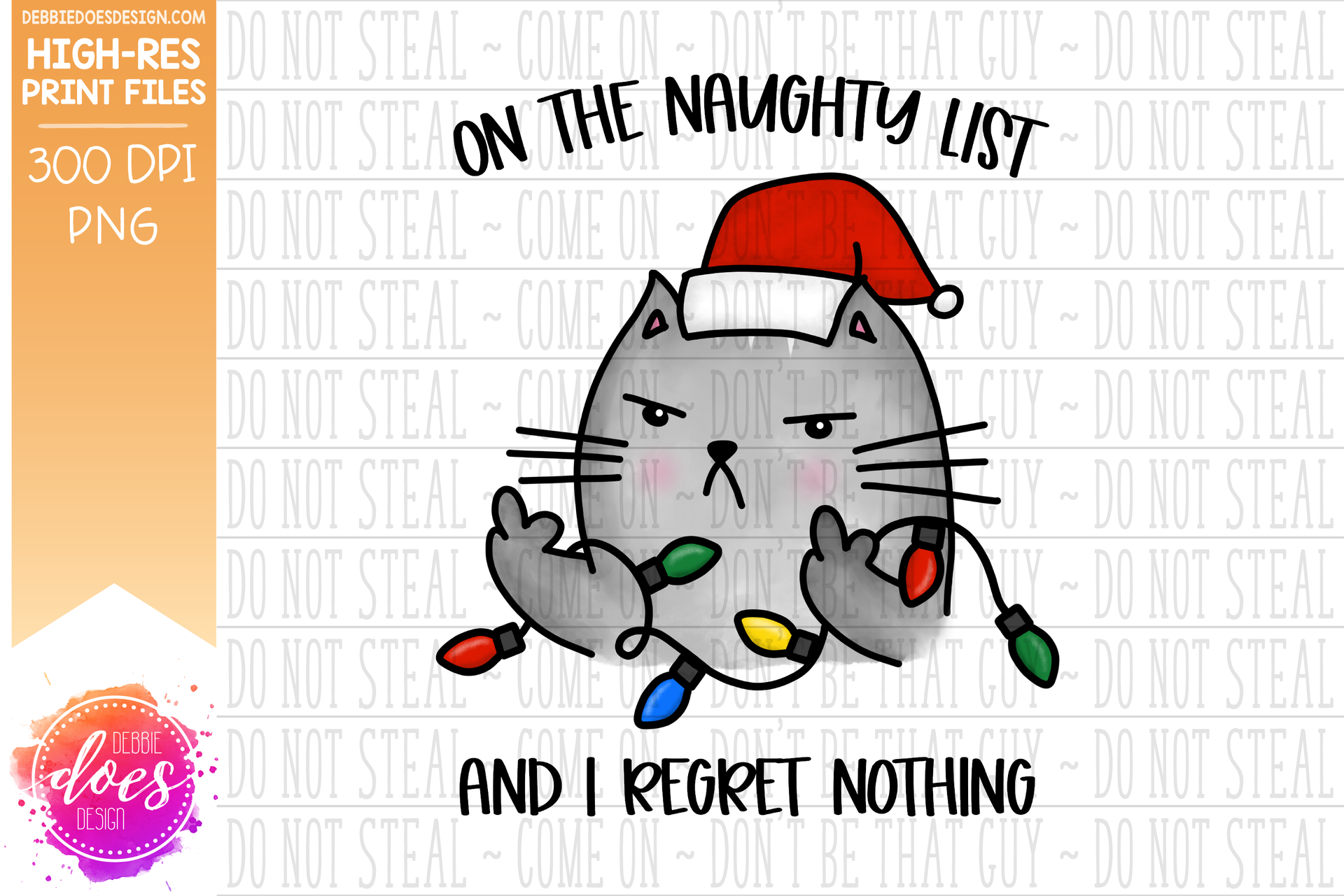 On the Naughty List - I Regret Nothing - Angry Christmas Kitty - Sublimation/Printable Design