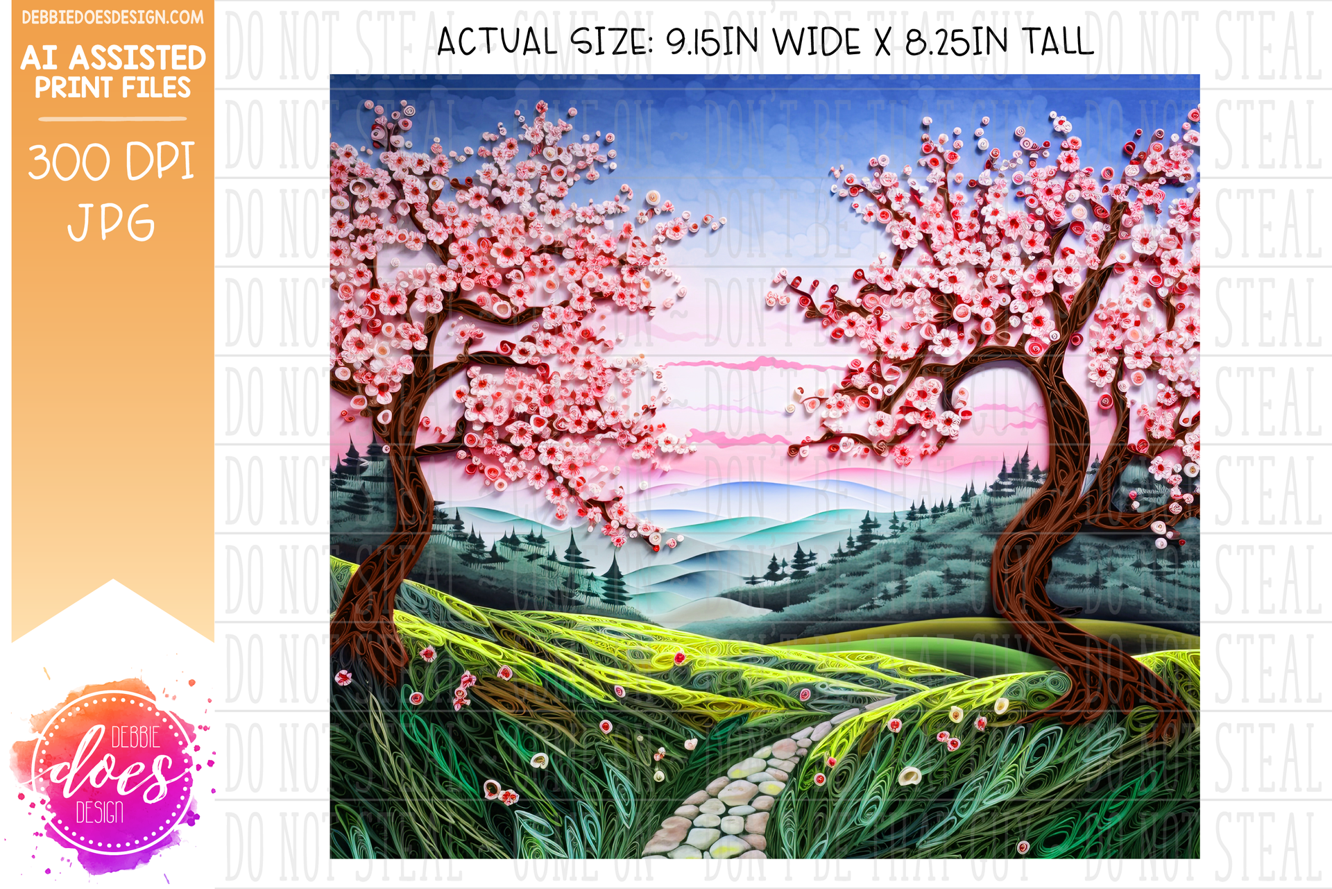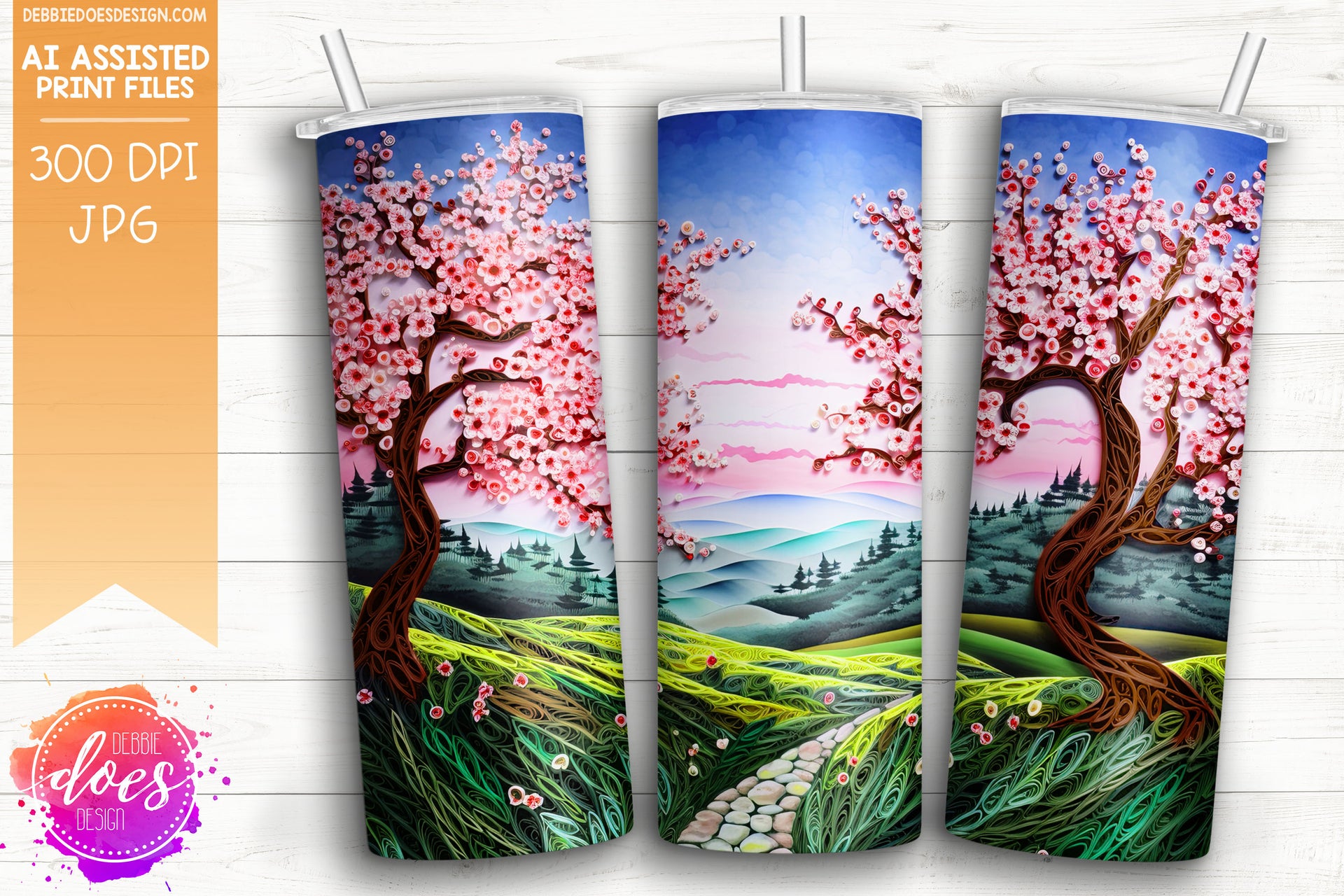 Paper Art - Cherry Blossoms 2 - Tumbler - Printable/Sublimation Design