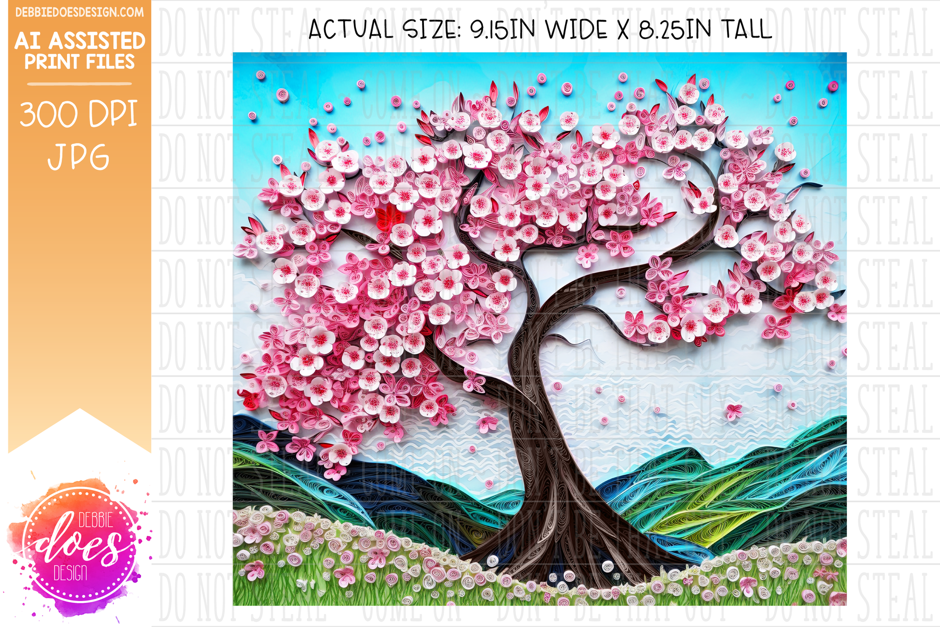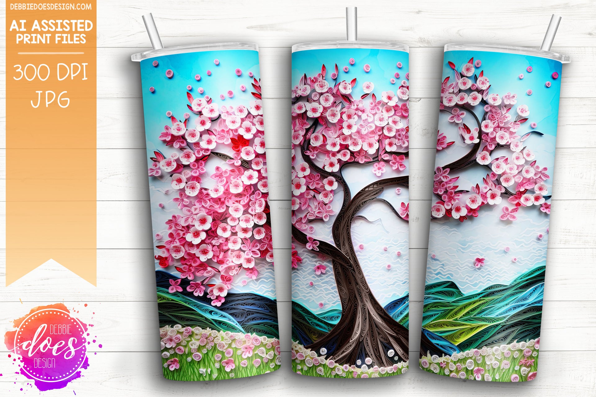 Paper Art - Cherry Blossoms 3 - Tumbler - Printable/Sublimation Design