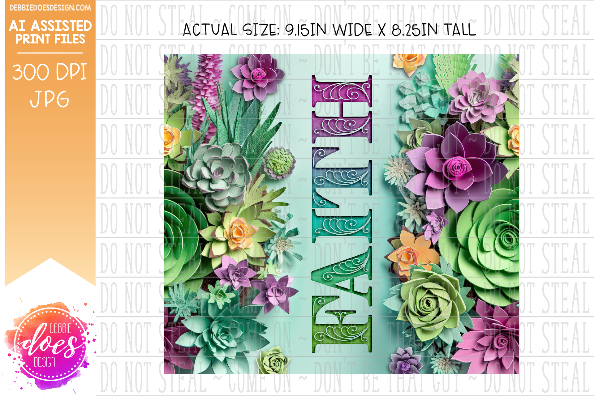 Paper Art - Green and Purple Succulents Tumbler - Faith - Printable/Sublimation Design