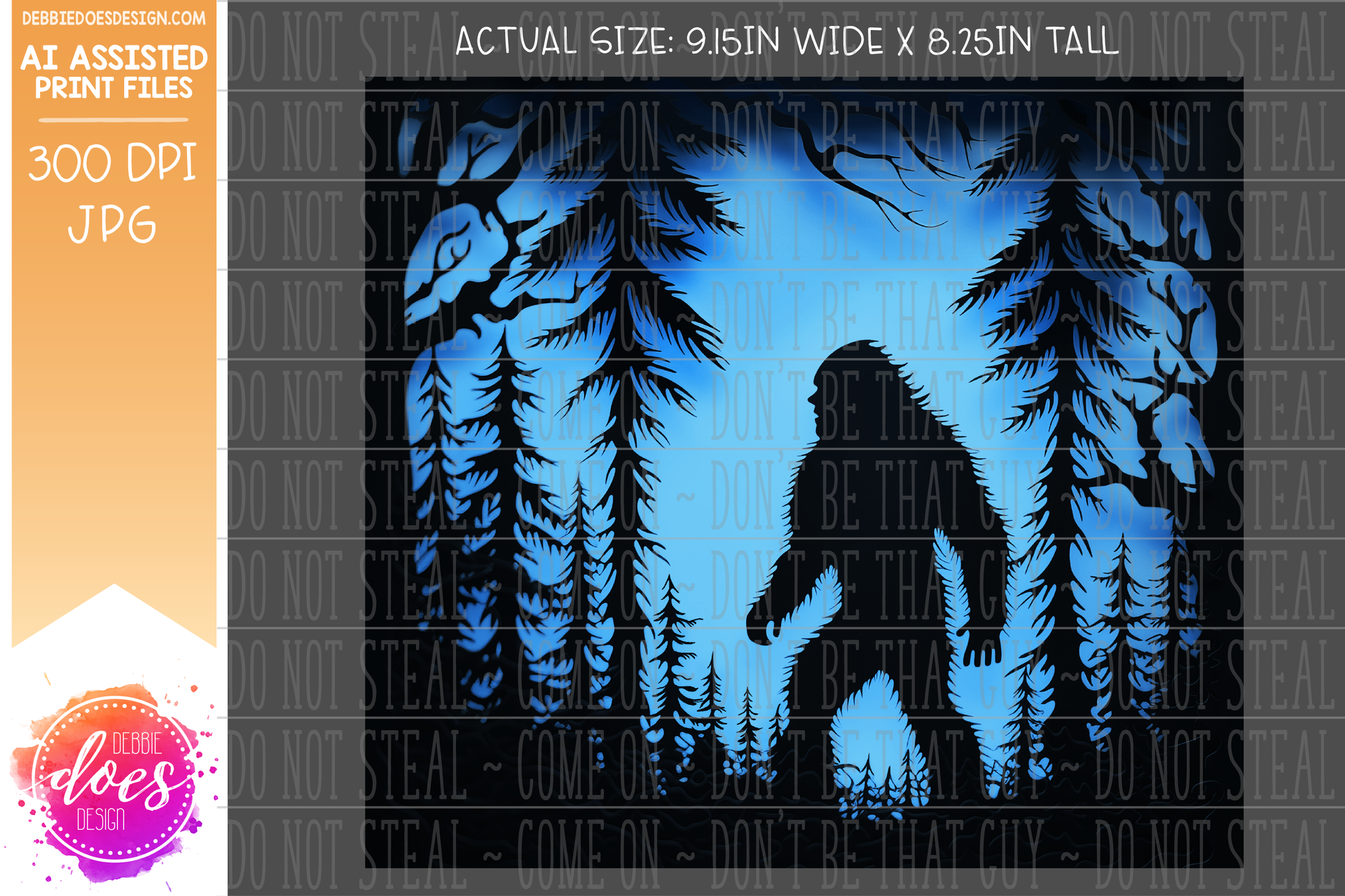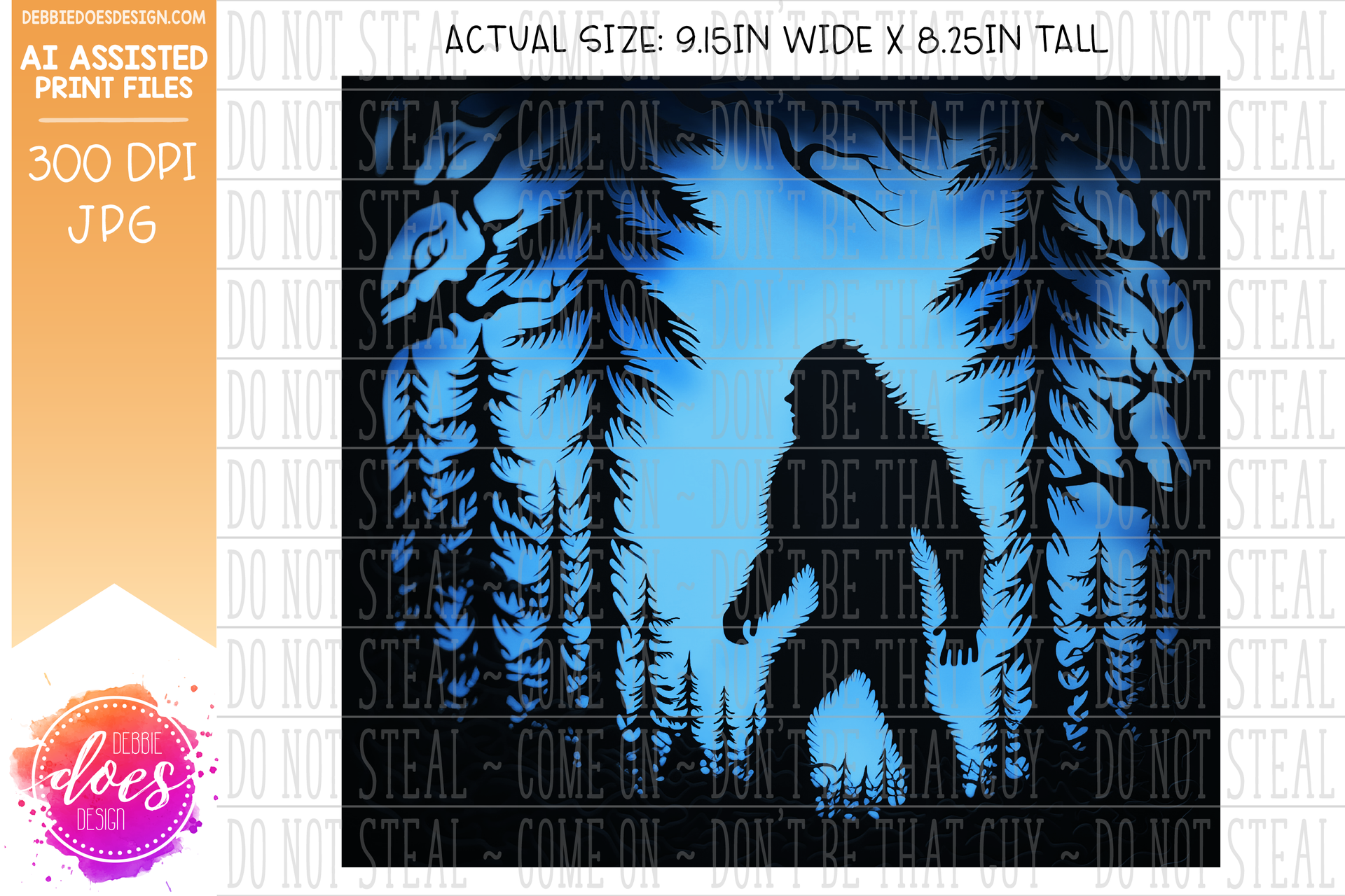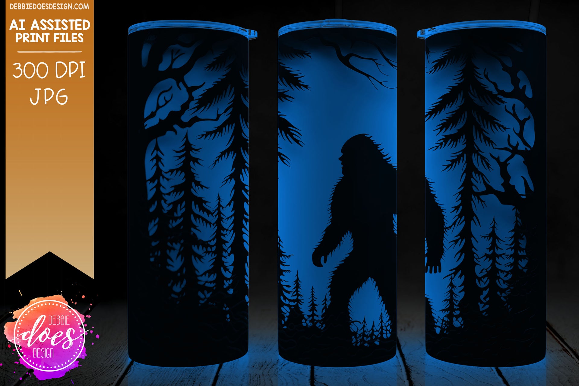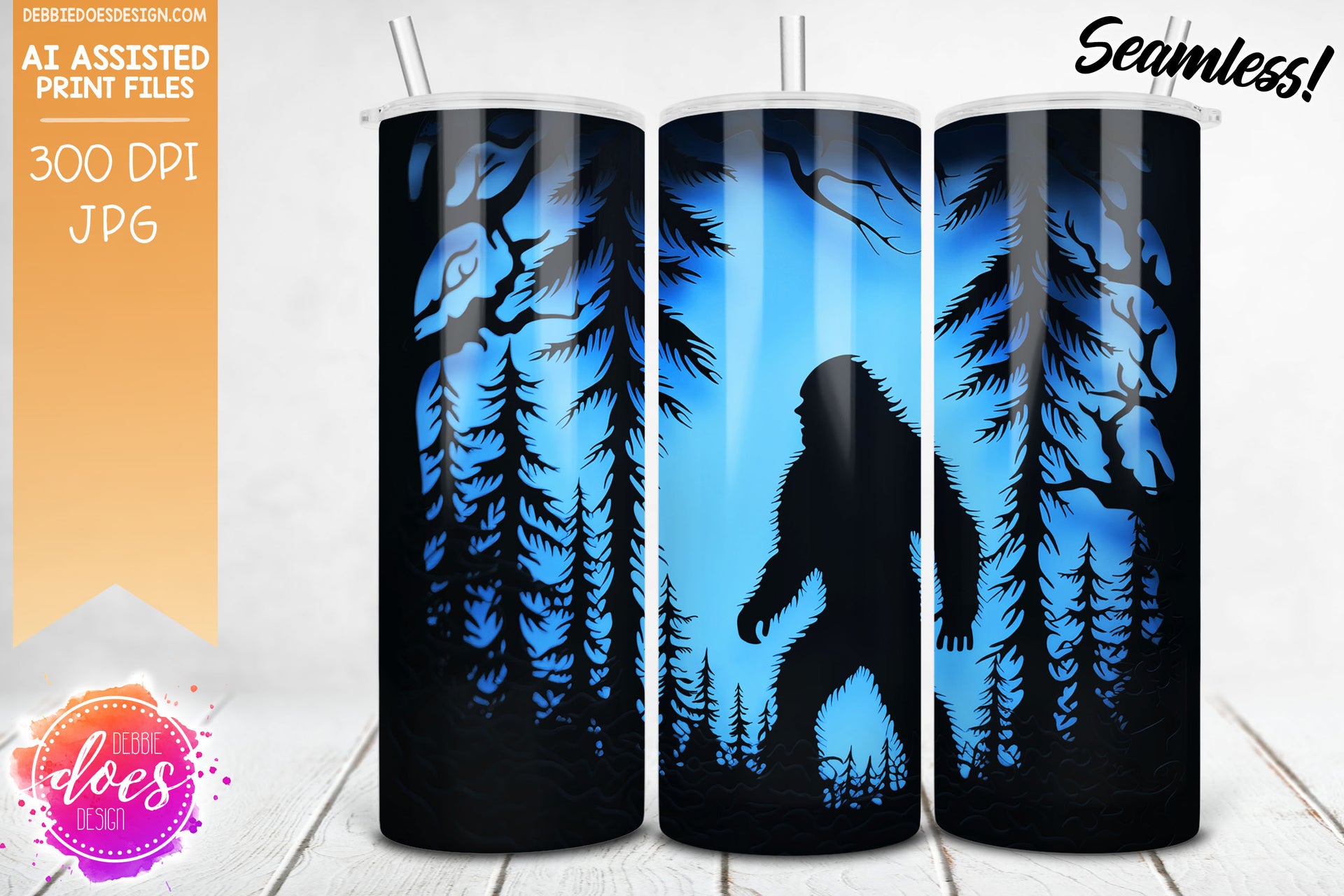 Paper Art - Sasquatch Silhouette in Trees 2 Tumbler - Blue - Printable/Sublimation Design