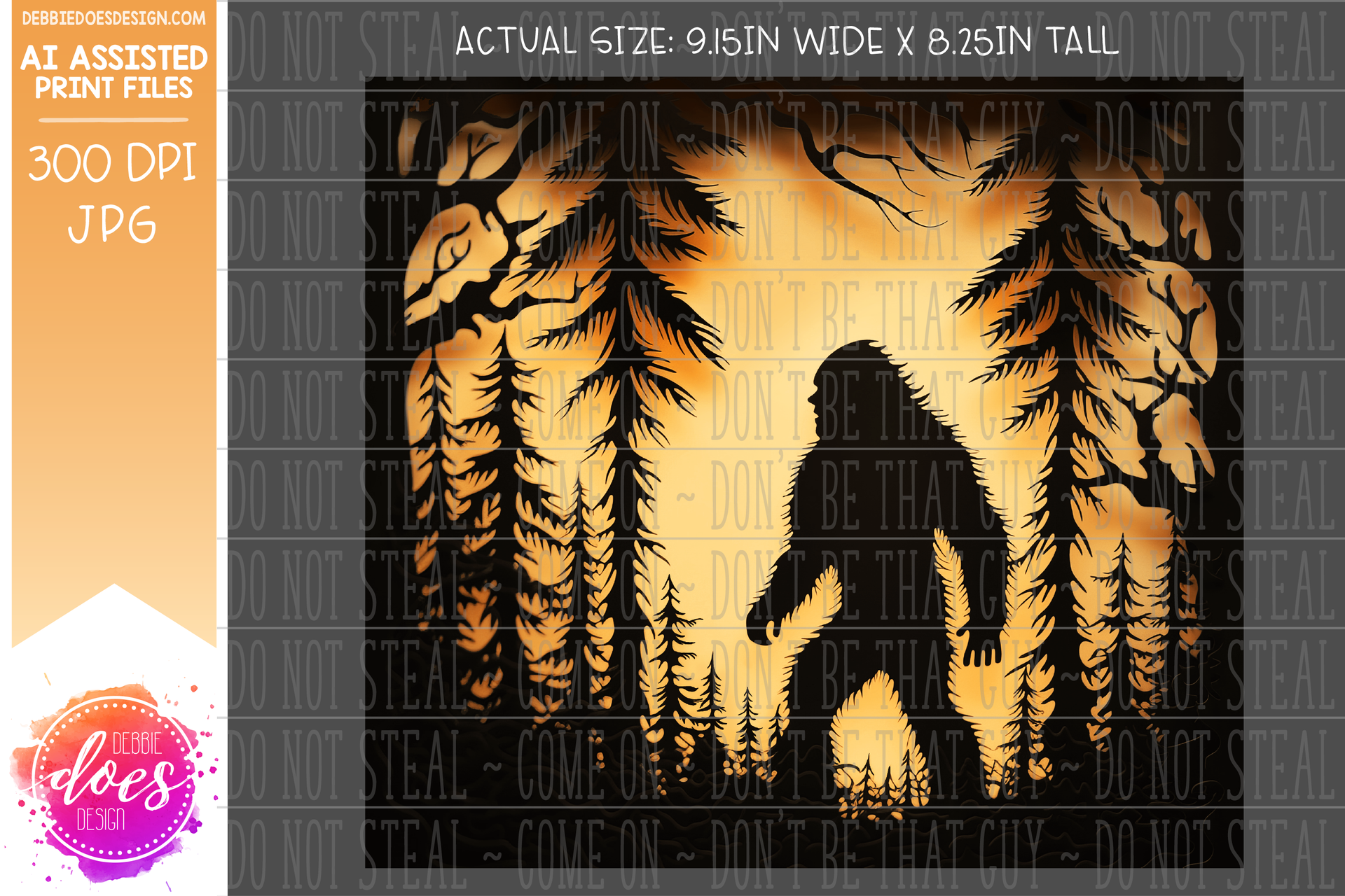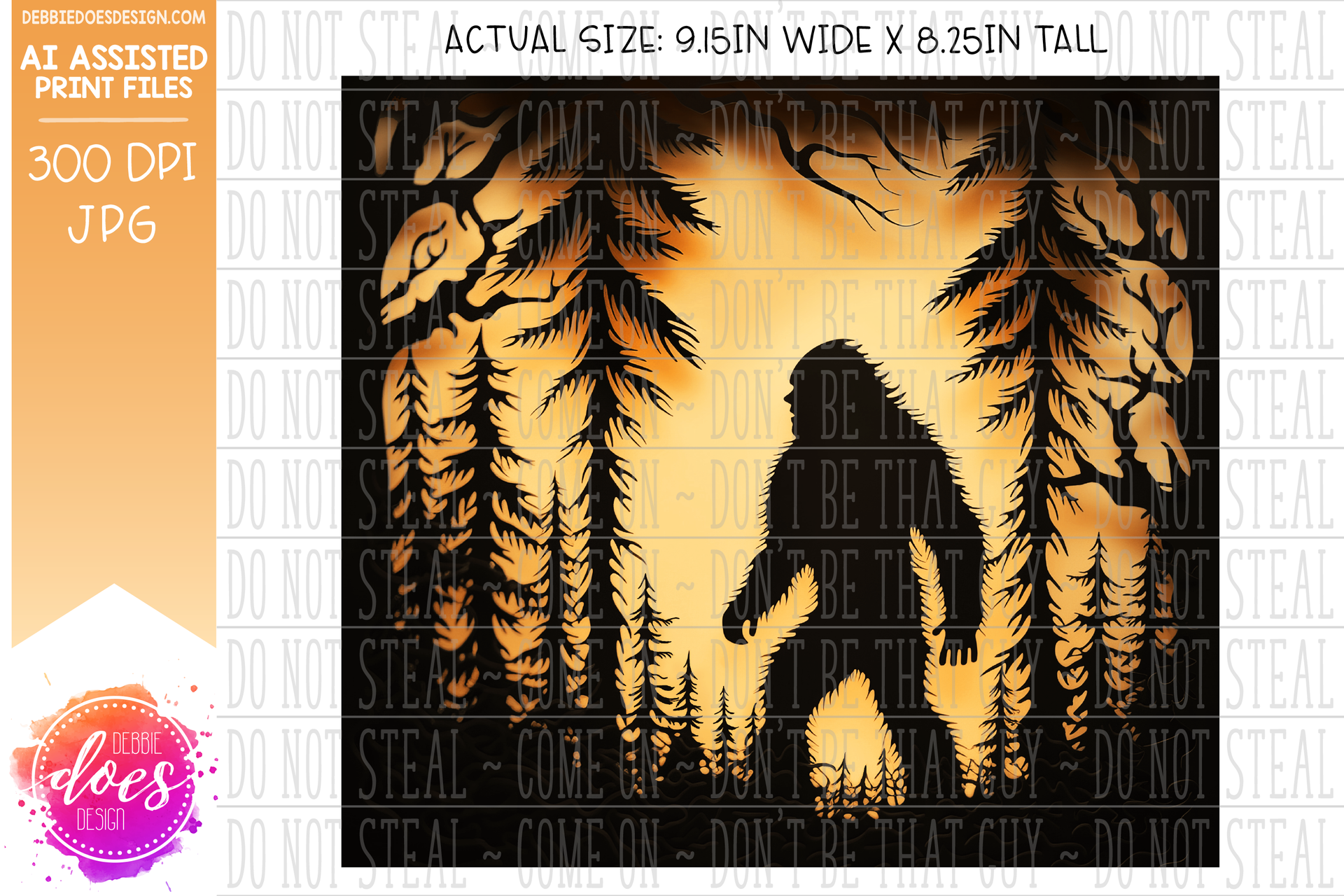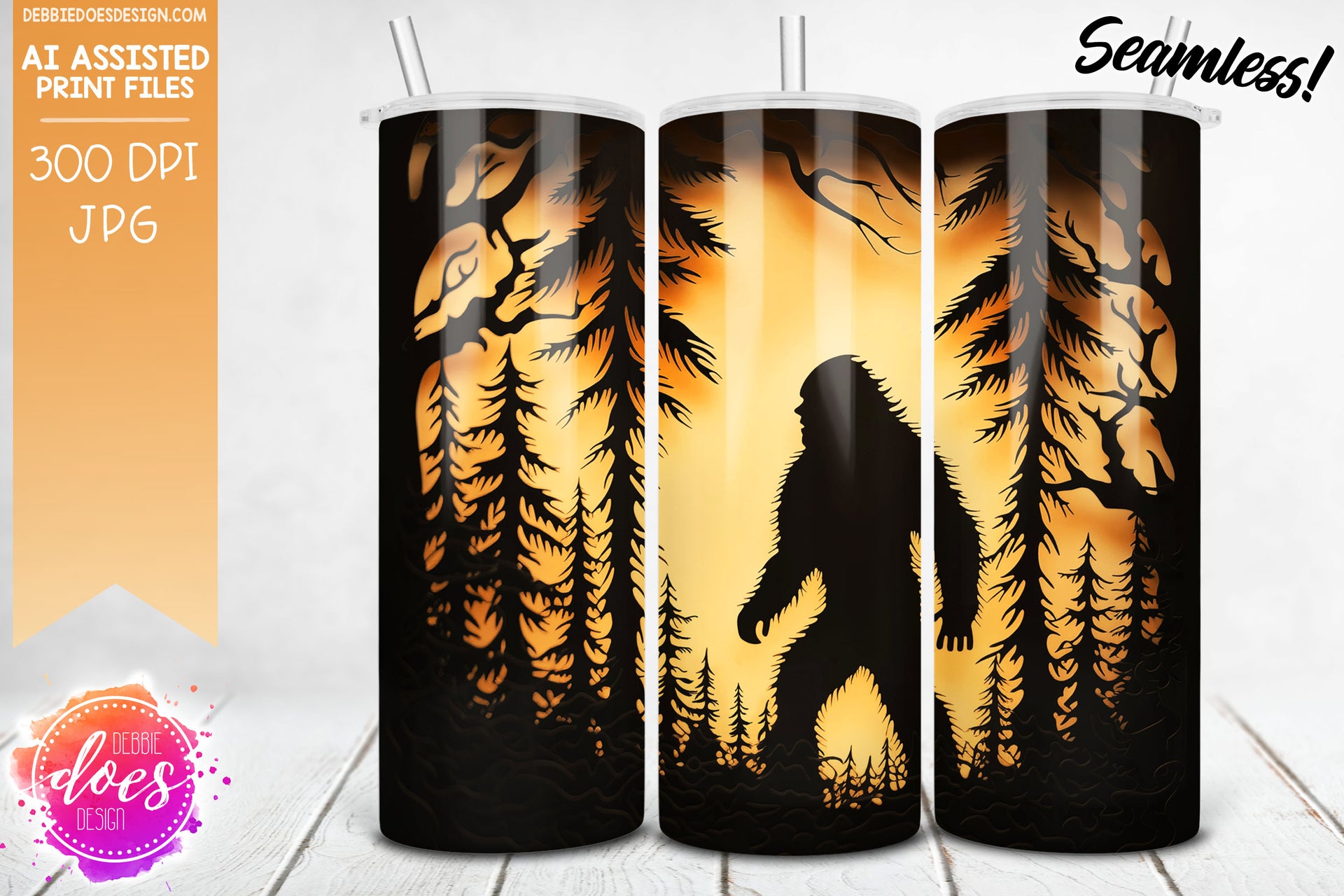 Paper Art - Sasquatch Silhouette in Trees 2 Tumbler - Golden - Printable/Sublimation Design