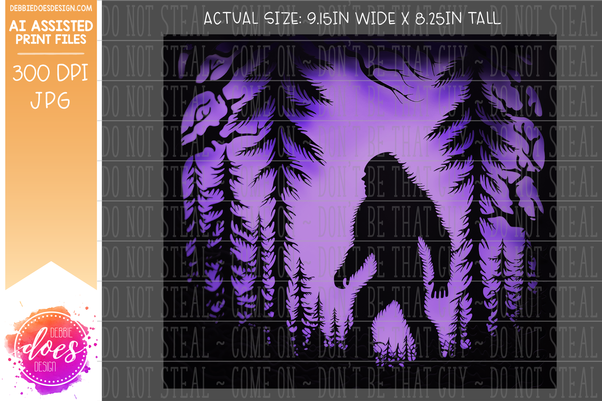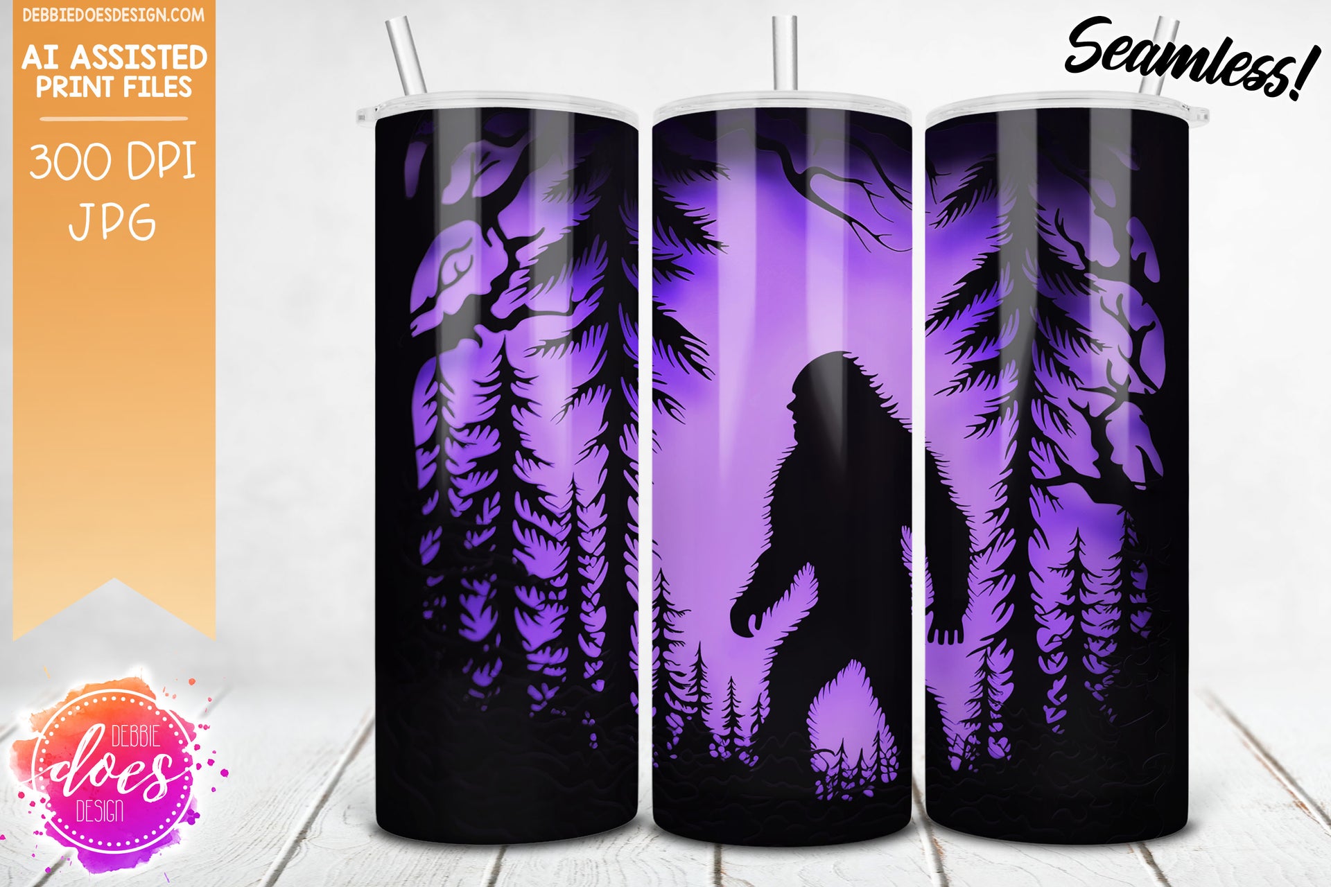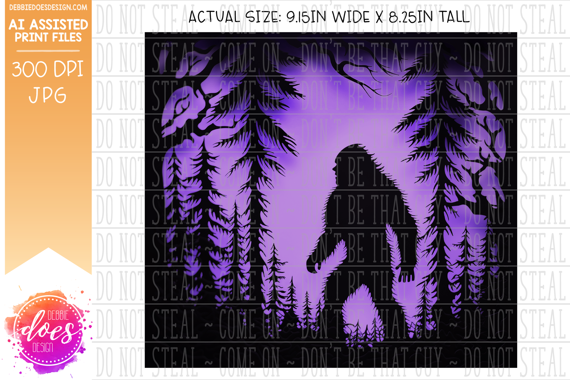 Paper Art - Sasquatch Silhouette in Trees 2 Tumbler - Purple - Printable/Sublimation Design