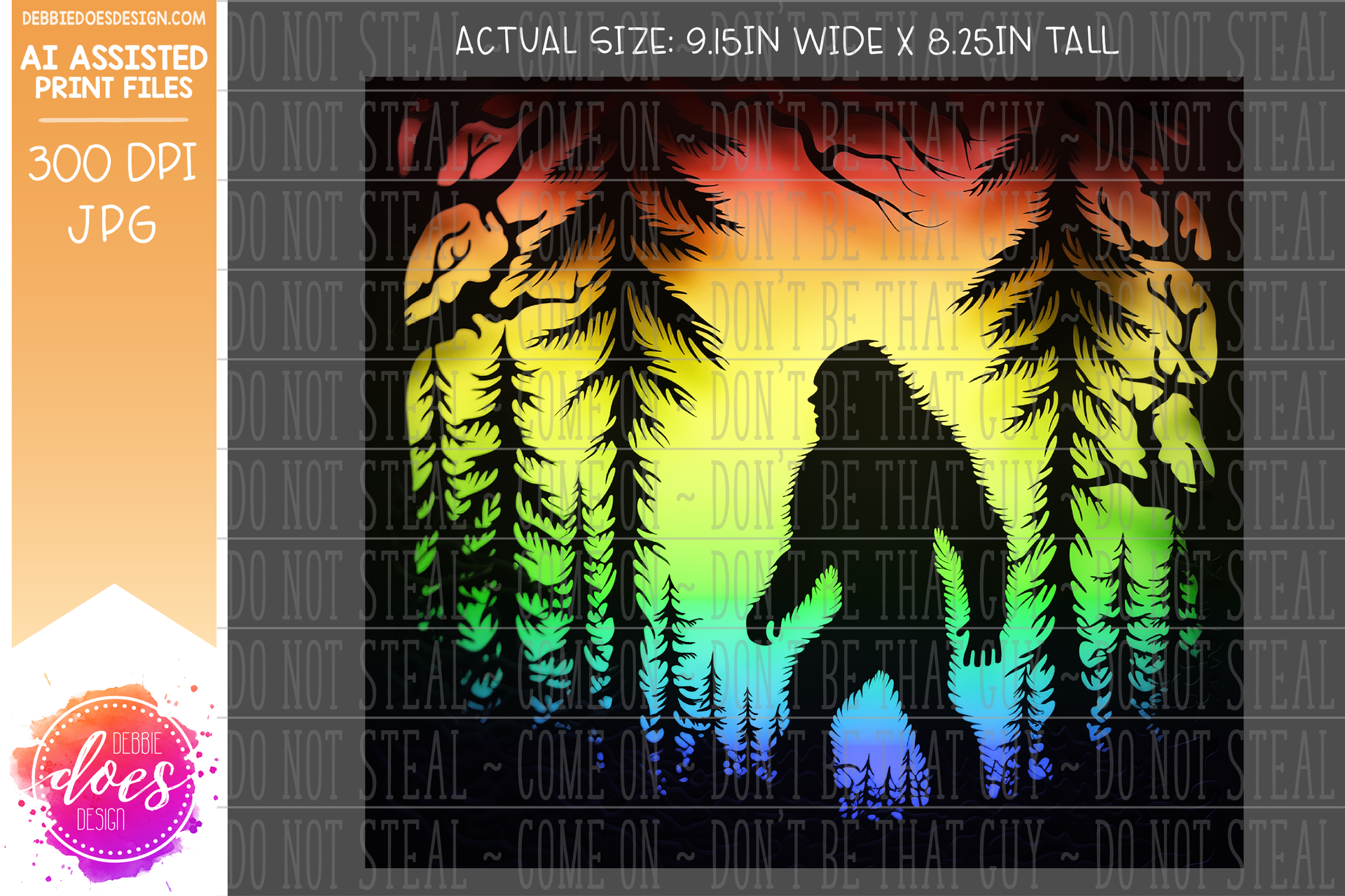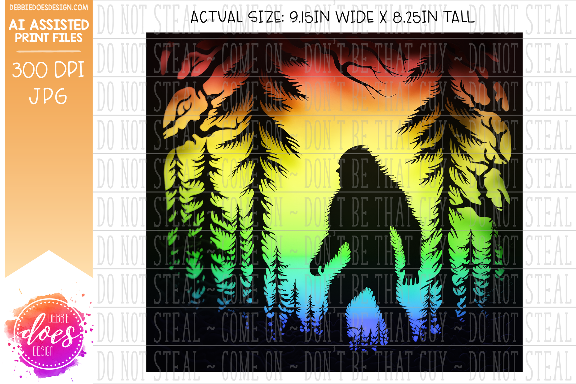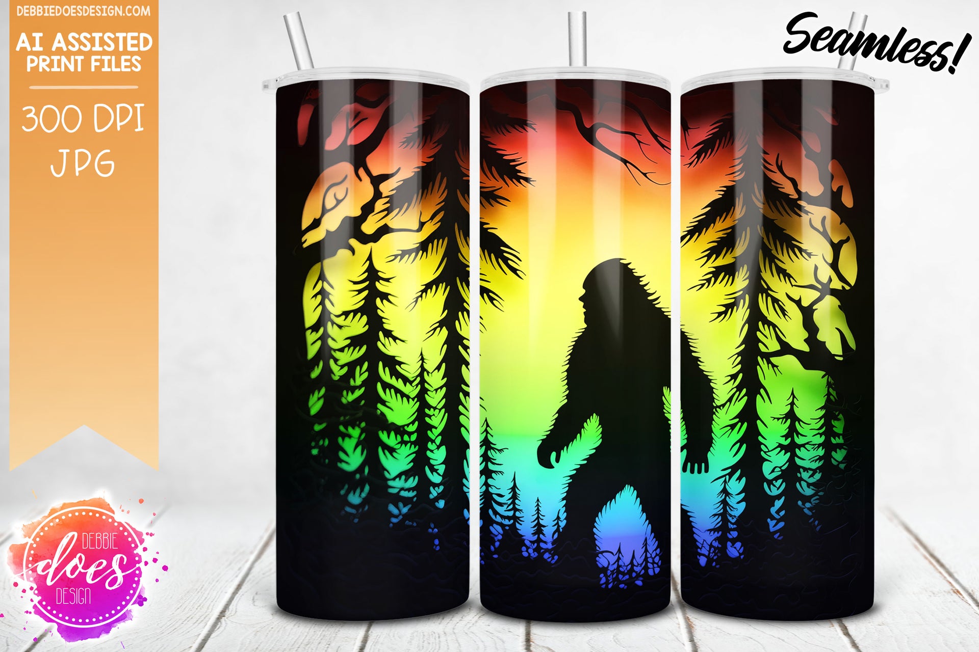 Paper Art - Sasquatch Silhouette in Trees 2 Tumbler - Rainbow - Printable/Sublimation Design