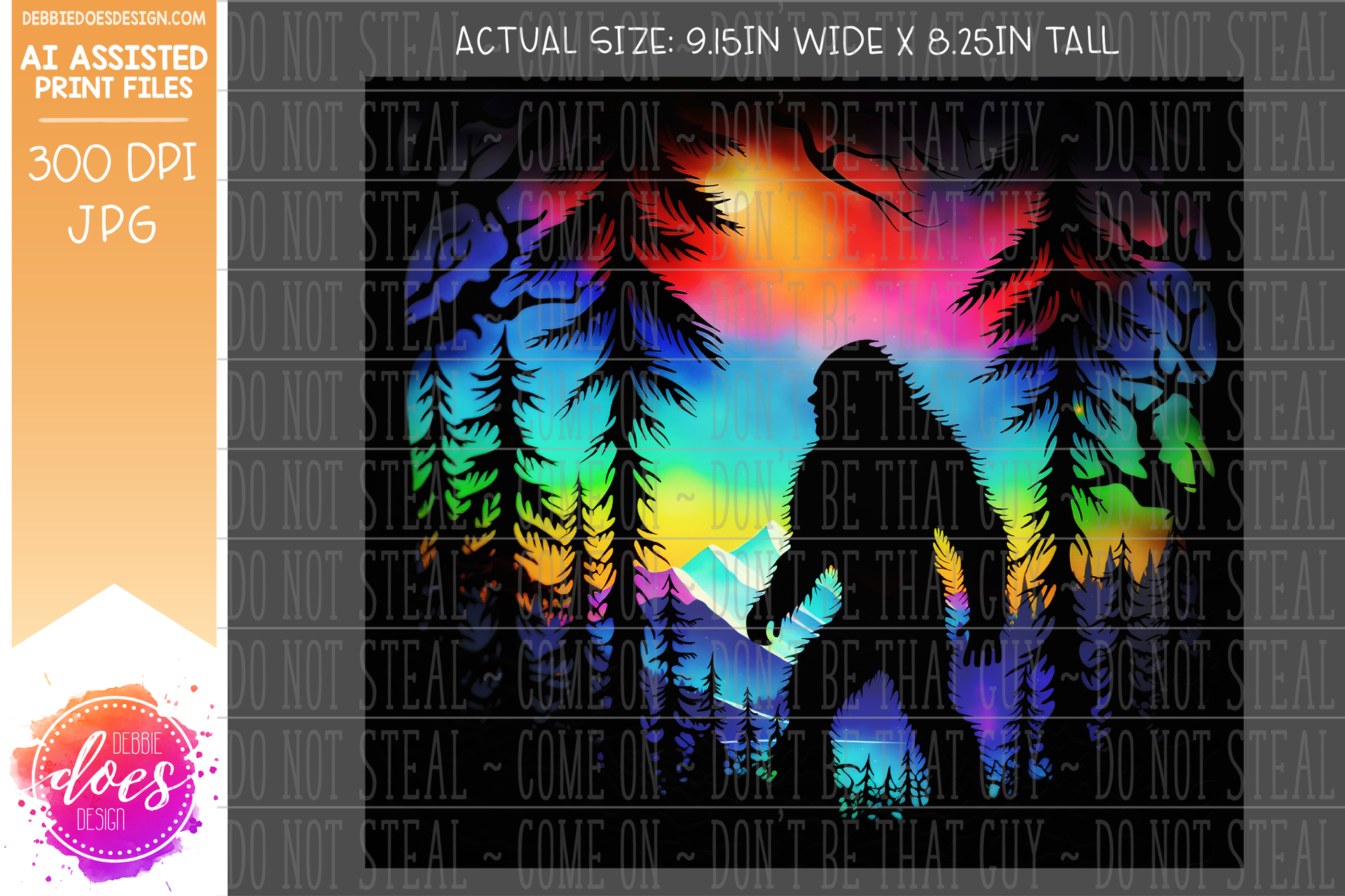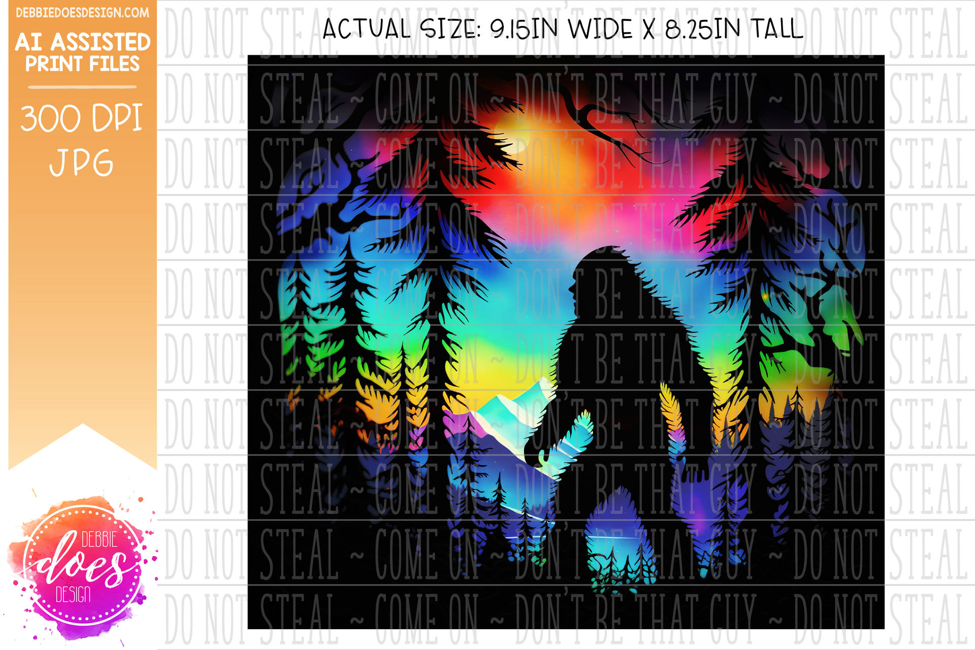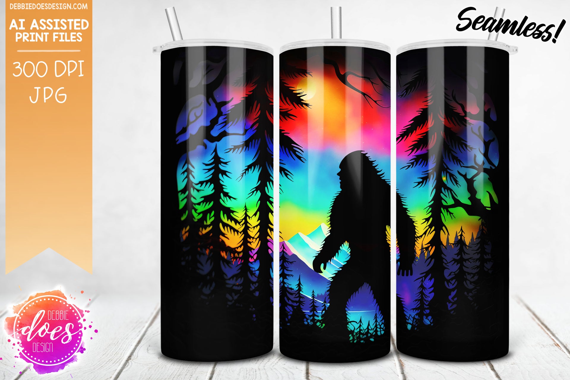 Paper Art - Sasquatch Silhouette in Trees 2 Tumbler - Sunset Mountains - Printable/Sublimation Design