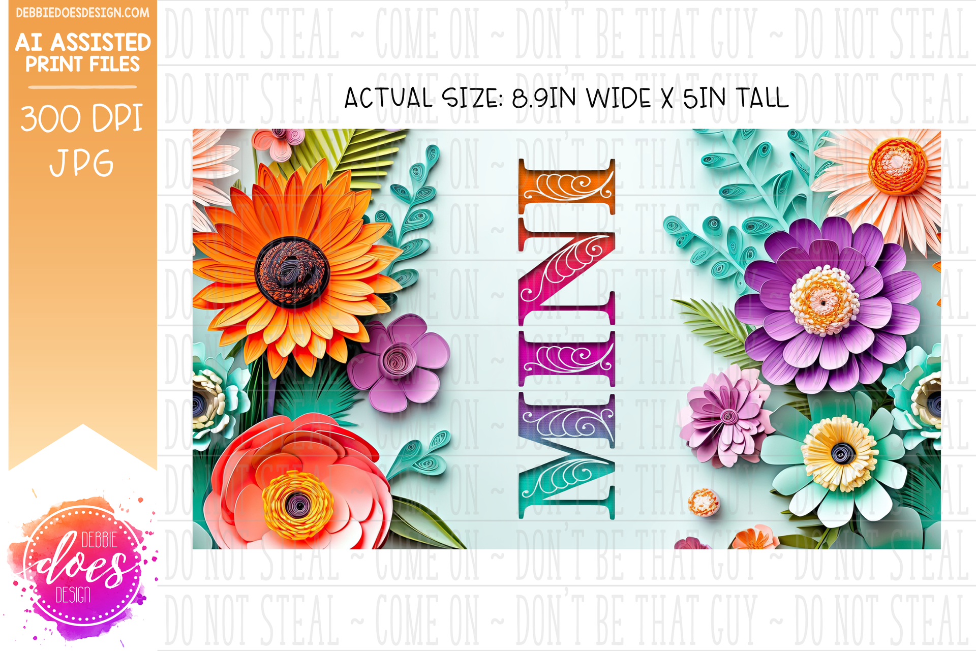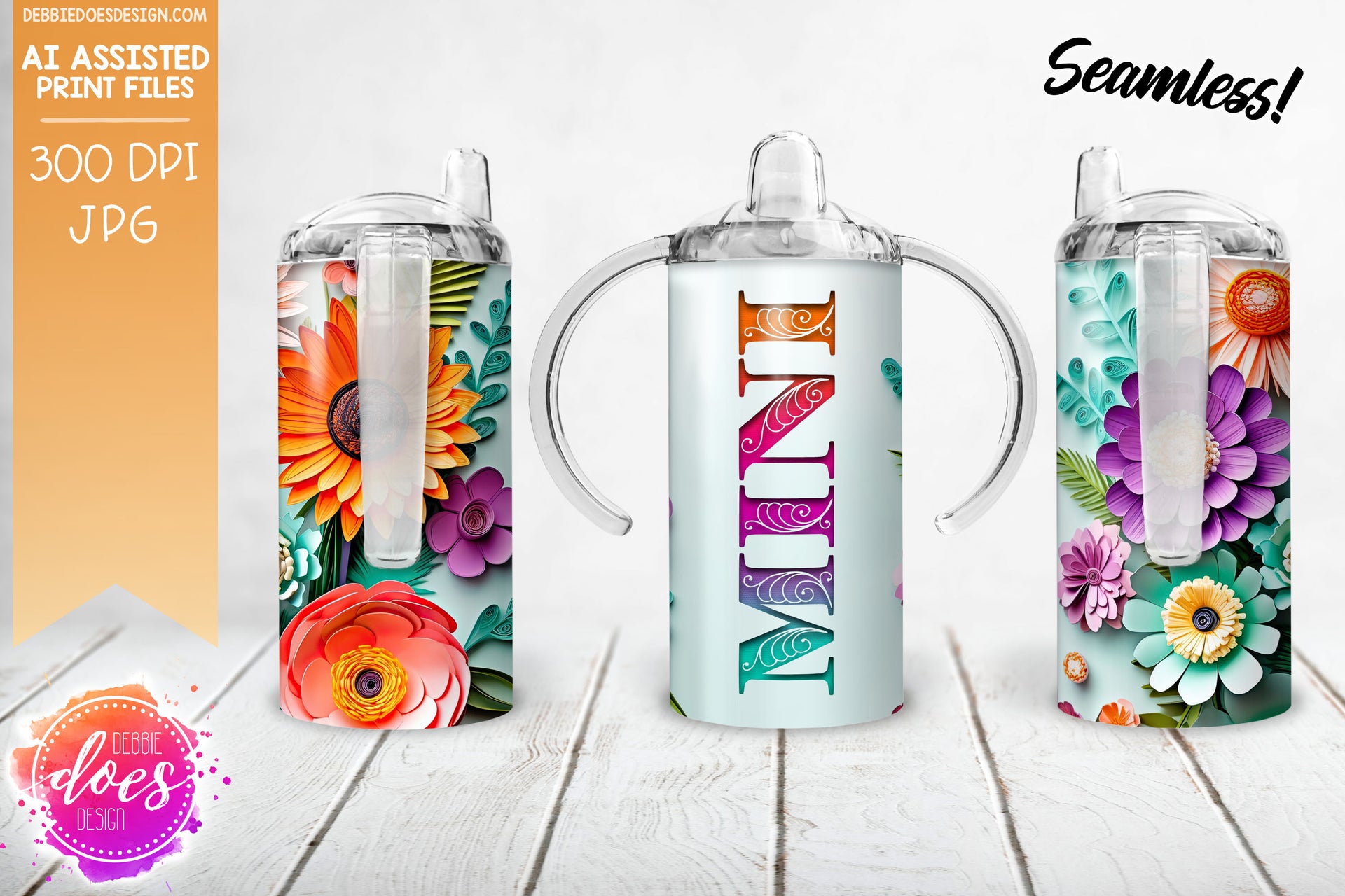 Paper Flowers - Coral Teal Purple - Kids Sippy Cup - Mini - Printable/Sublimation Design