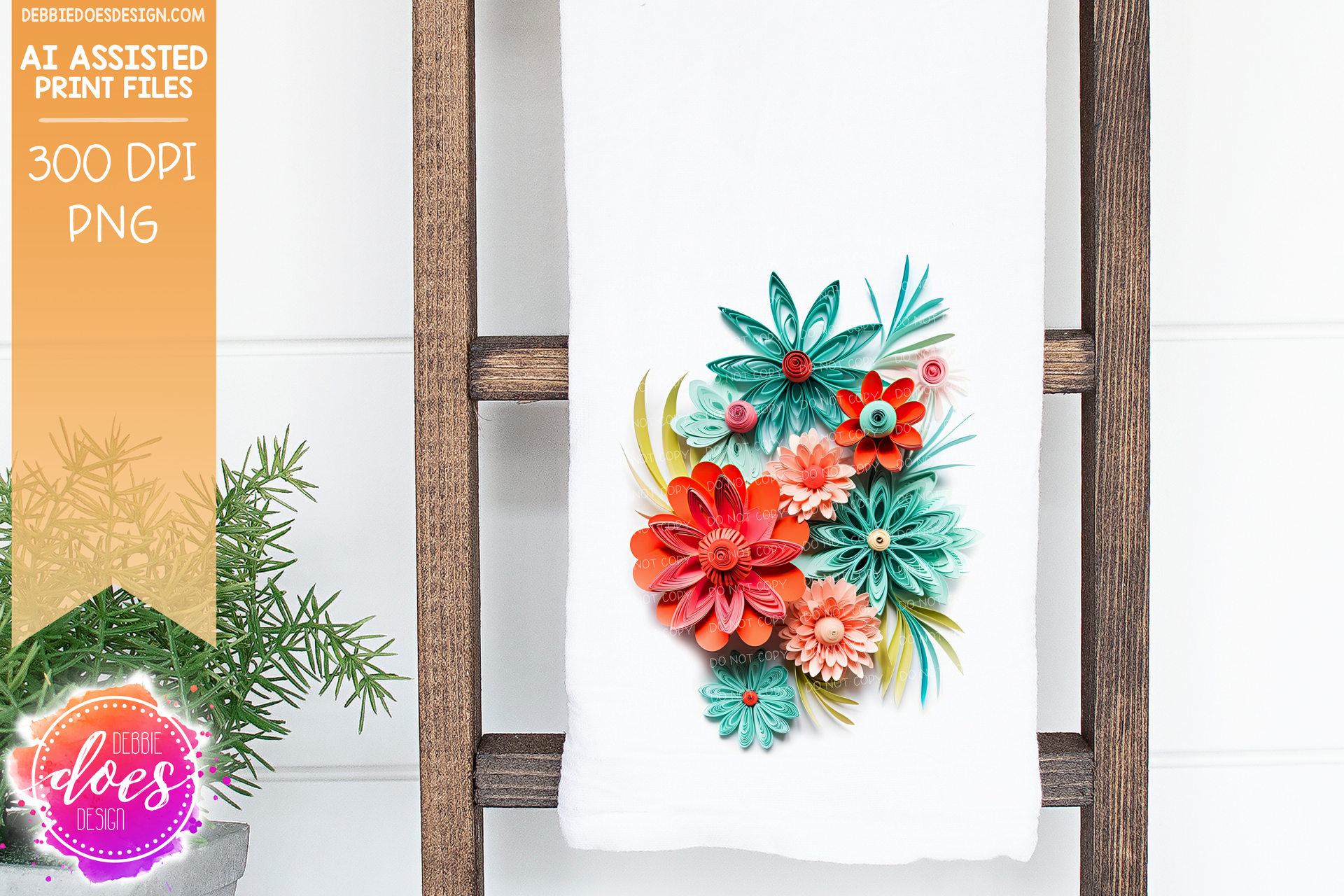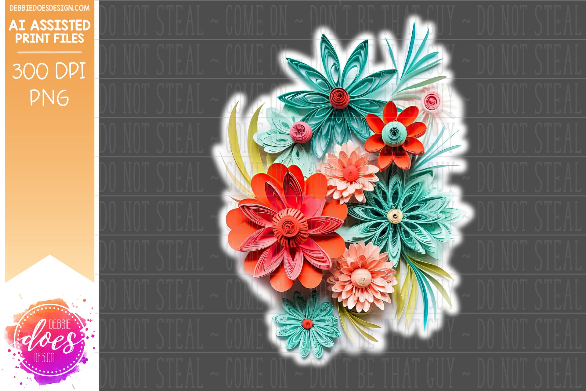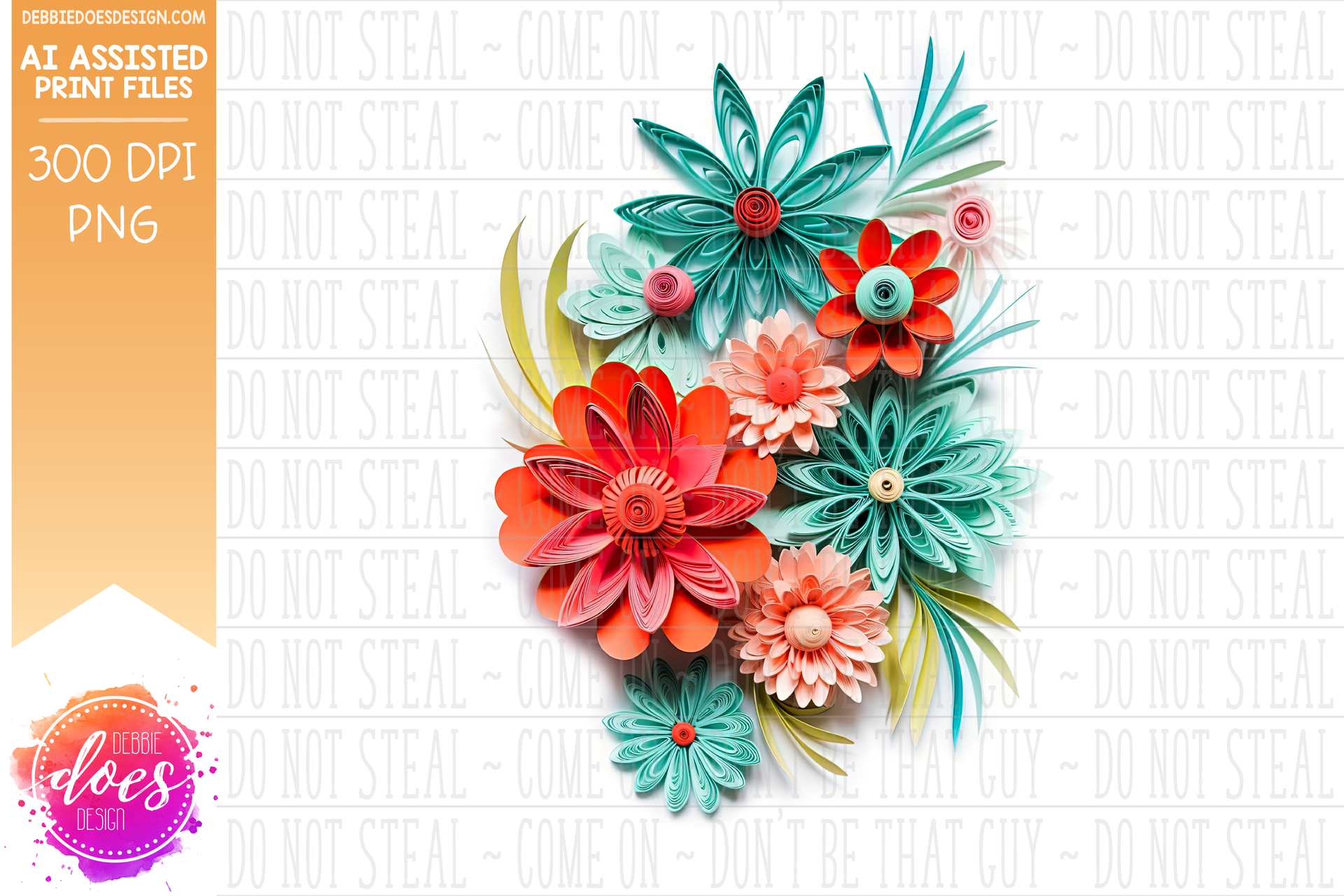 Paper Flowers - Coral Teal - White Glow - Design Elements