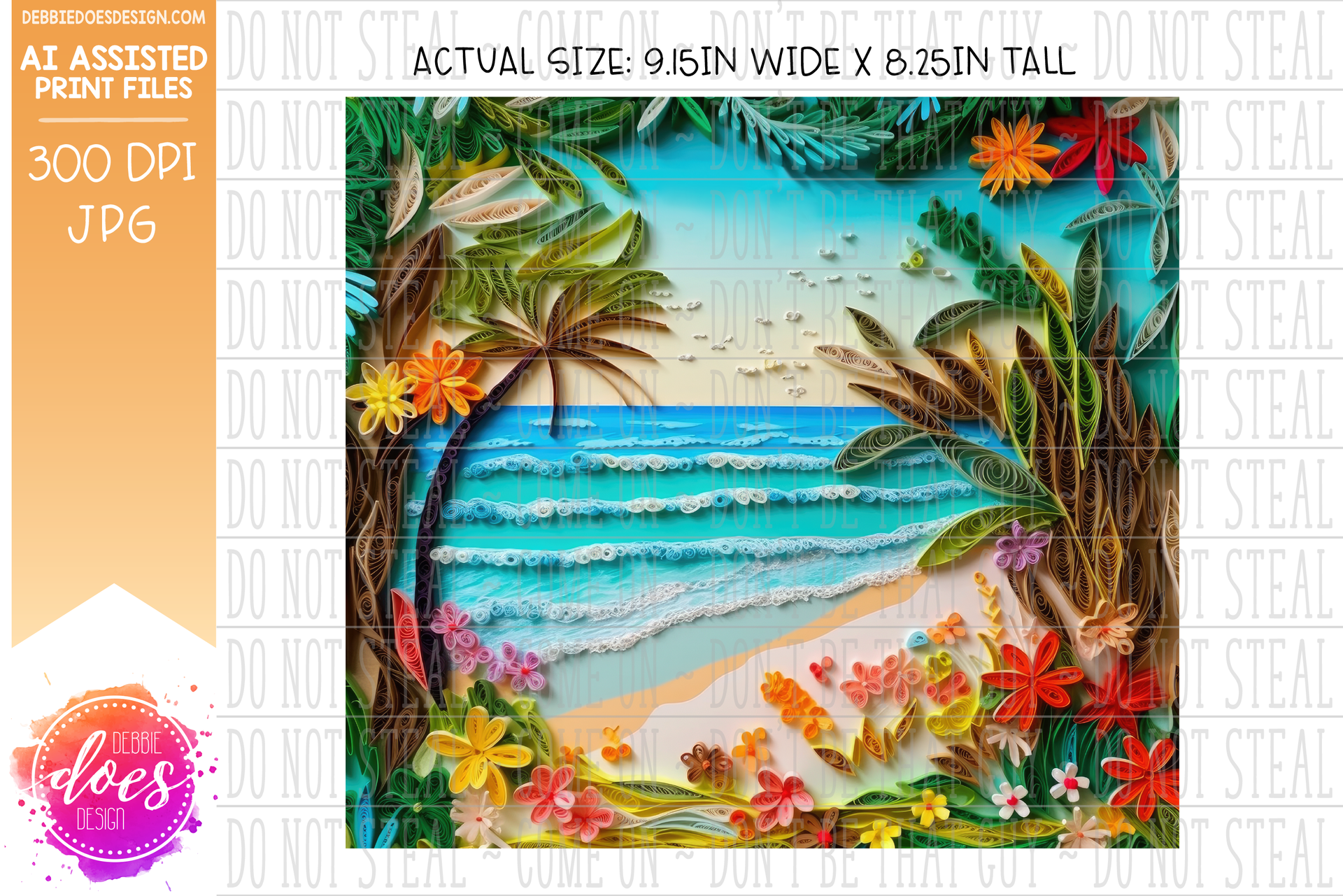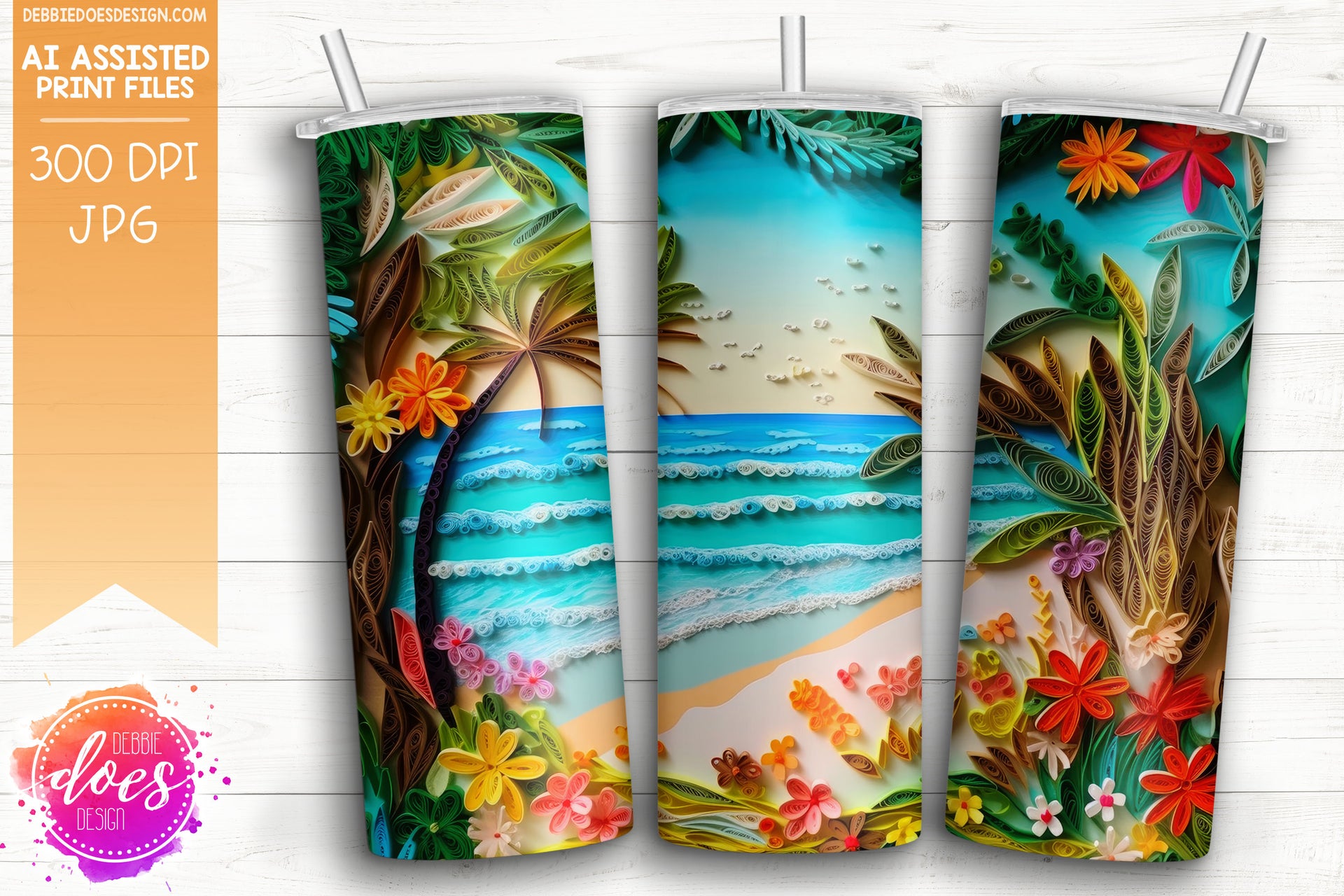 Paper Quilling - Beach Scene with Flowers - Tumbler - Printable/Sublimation Design