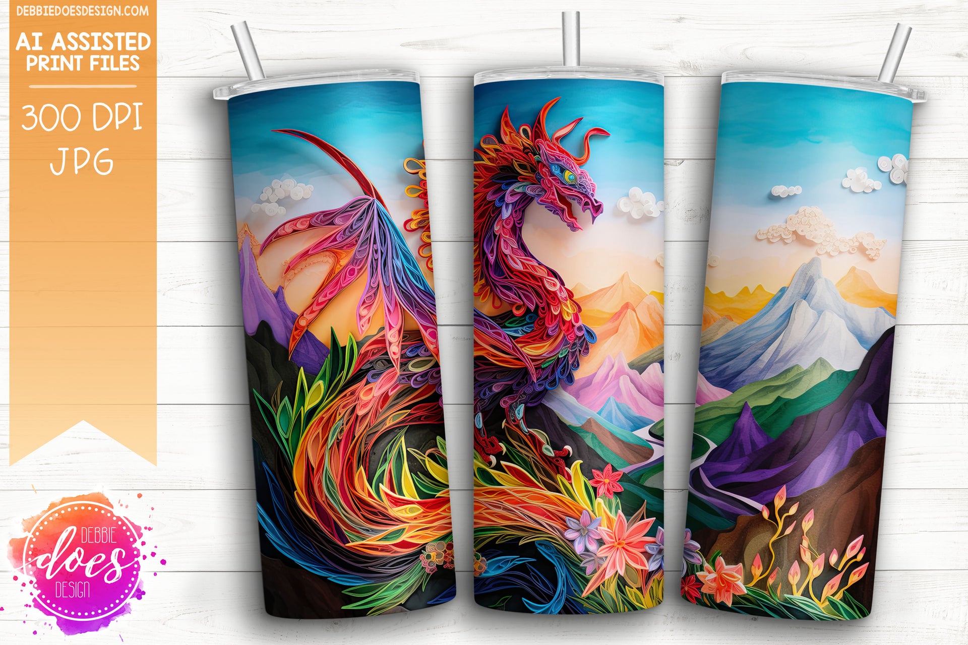 Paper Quilling - Dragon and Mountains Colorful 1 - Tumbler - Printable/Sublimation Design