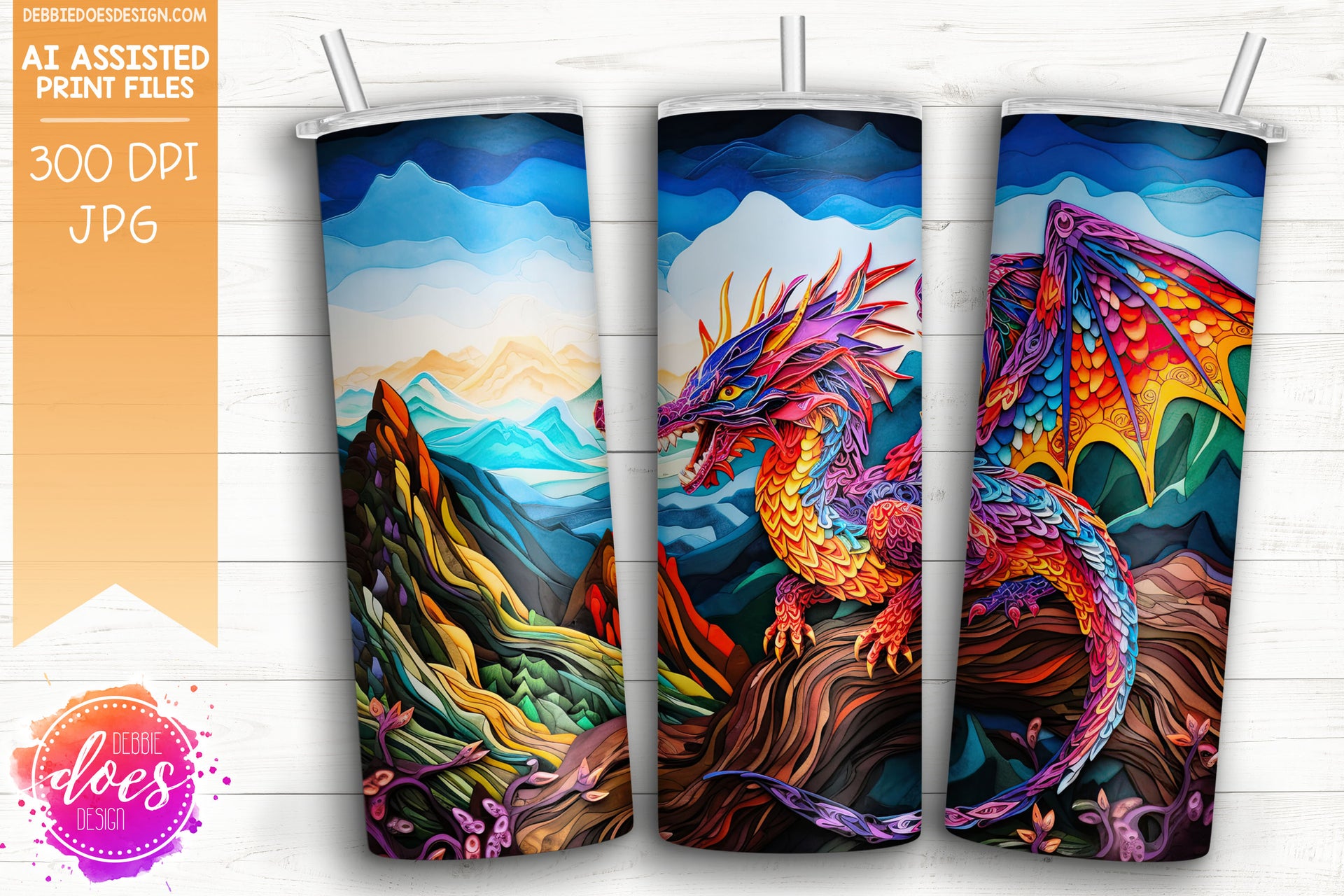 Paper Quilling - Dragon and Mountains Colorful 2 - Tumbler - Printable/Sublimation Design