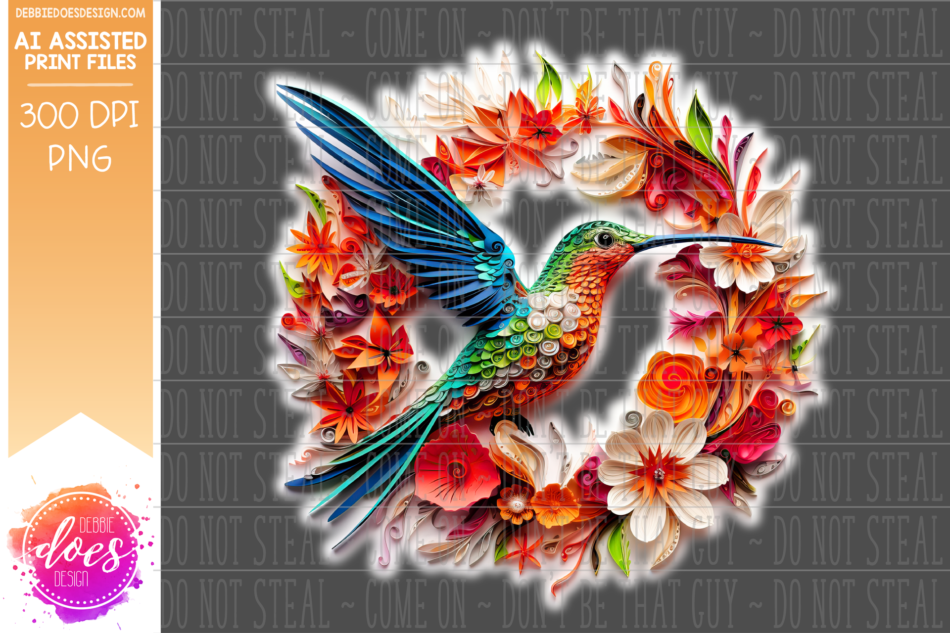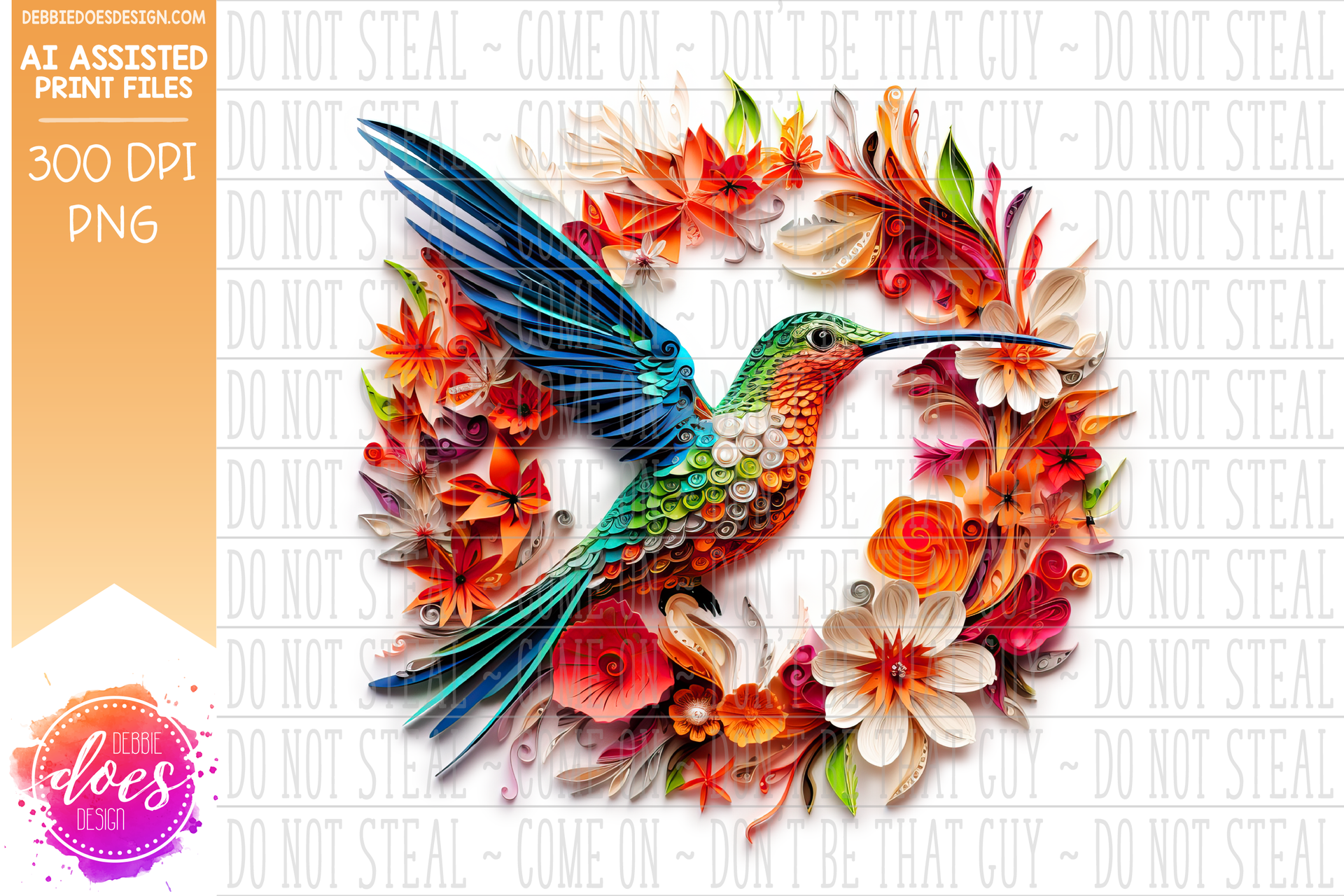 Paper Quilling - Hummingbird 5 - White Glow - Design Elements