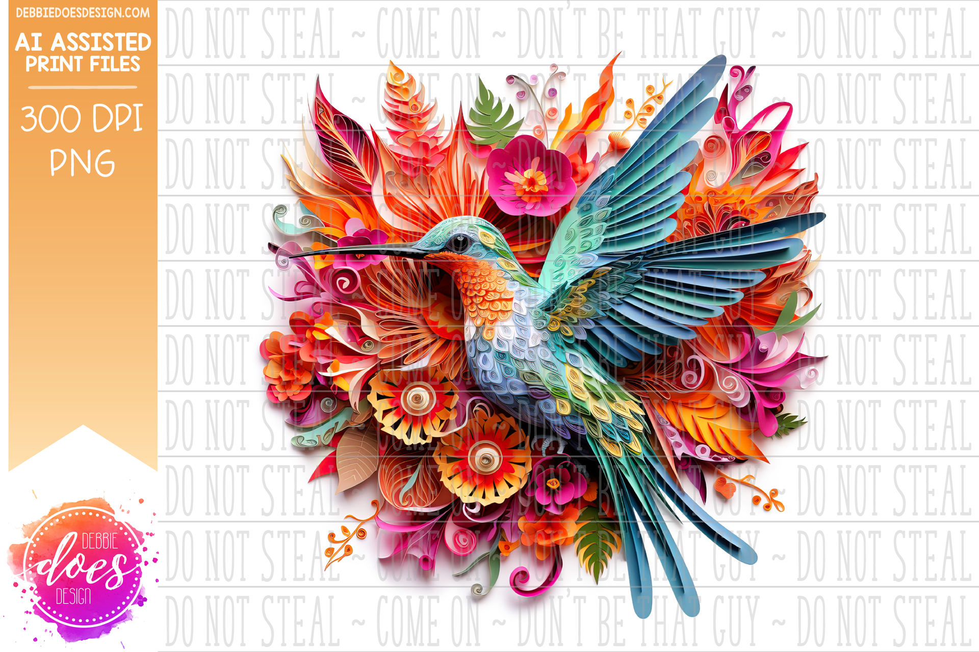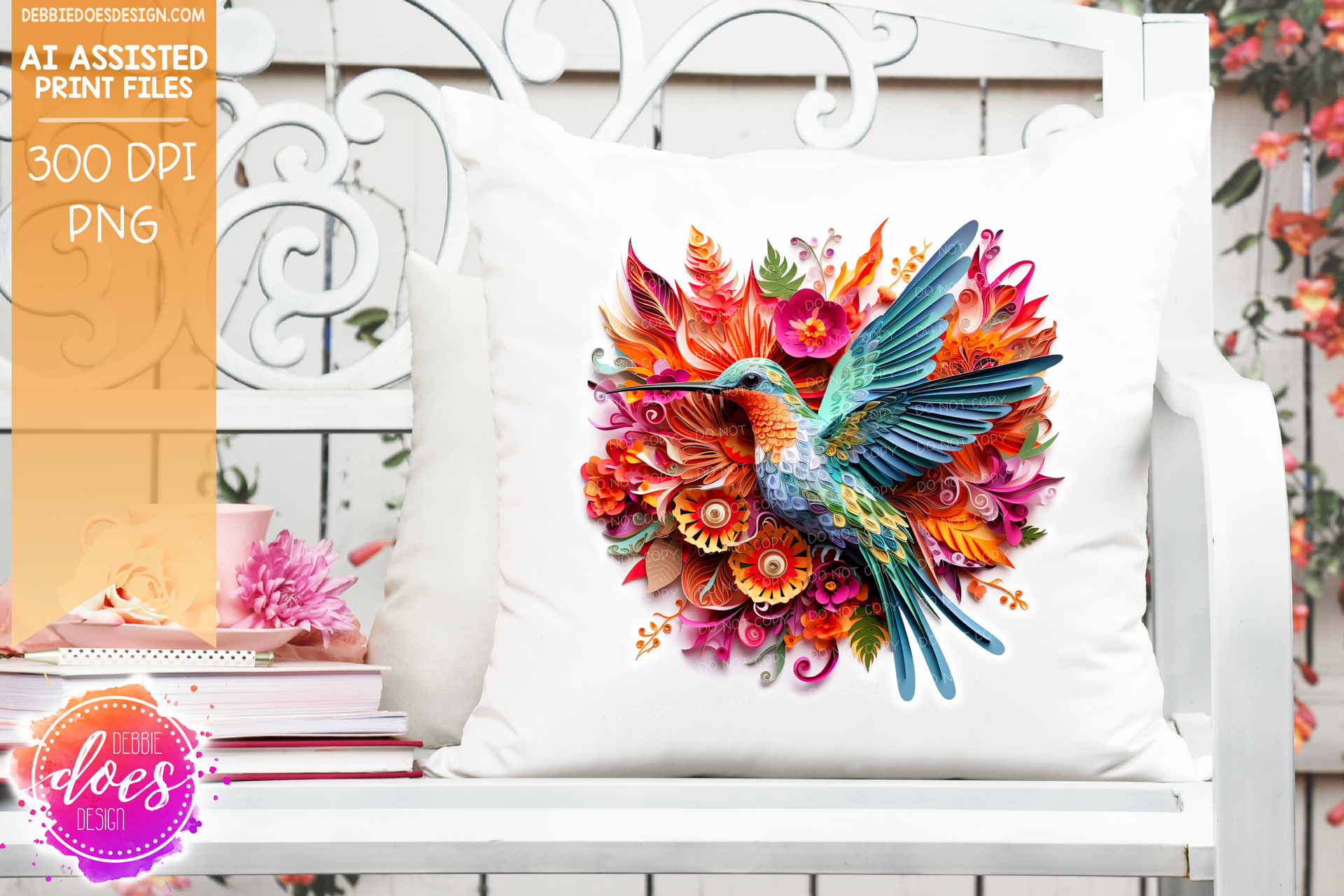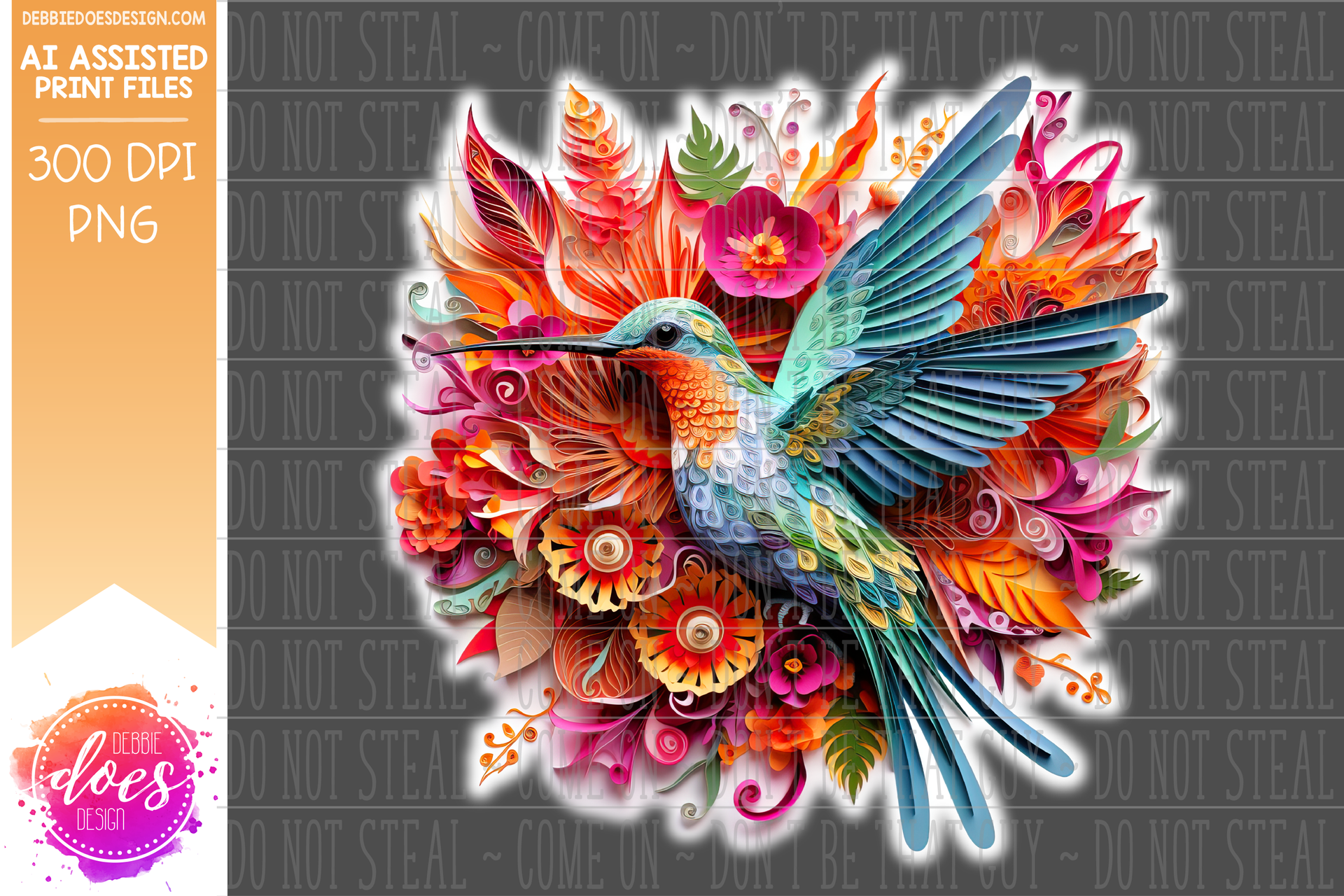 Paper Quilling - Hummingbird 6 - White Glow - Design Elements