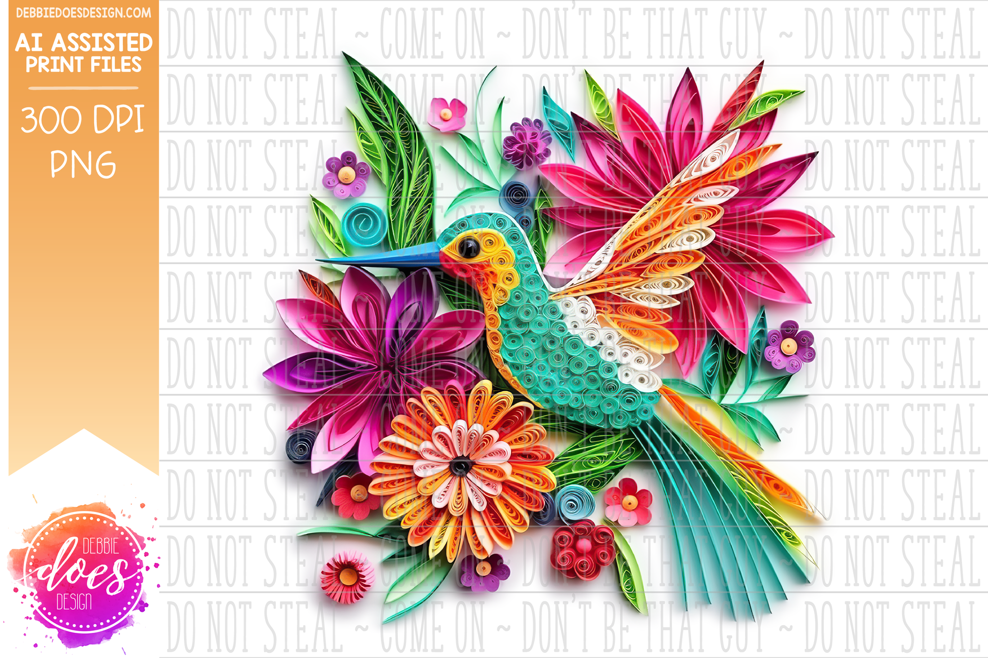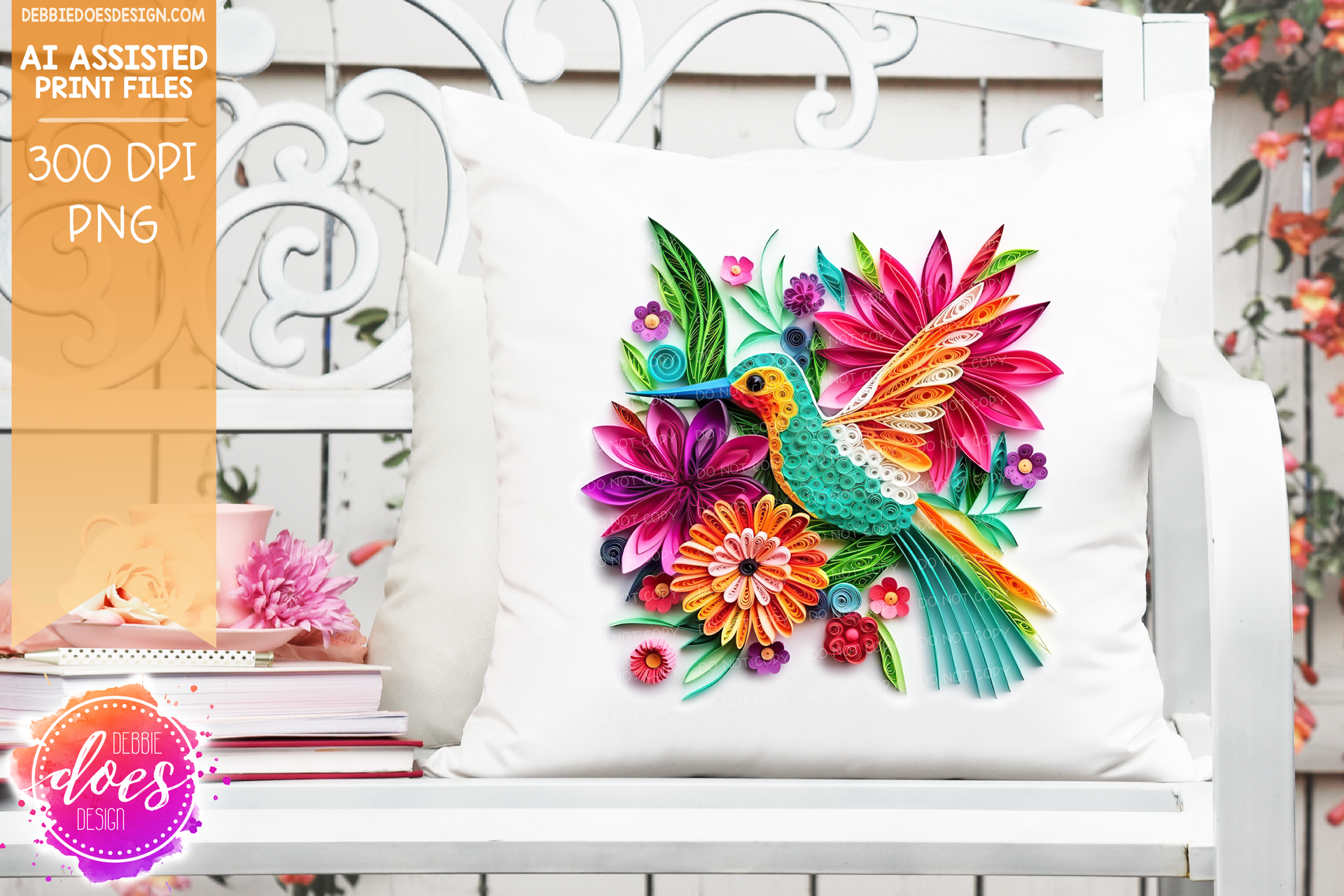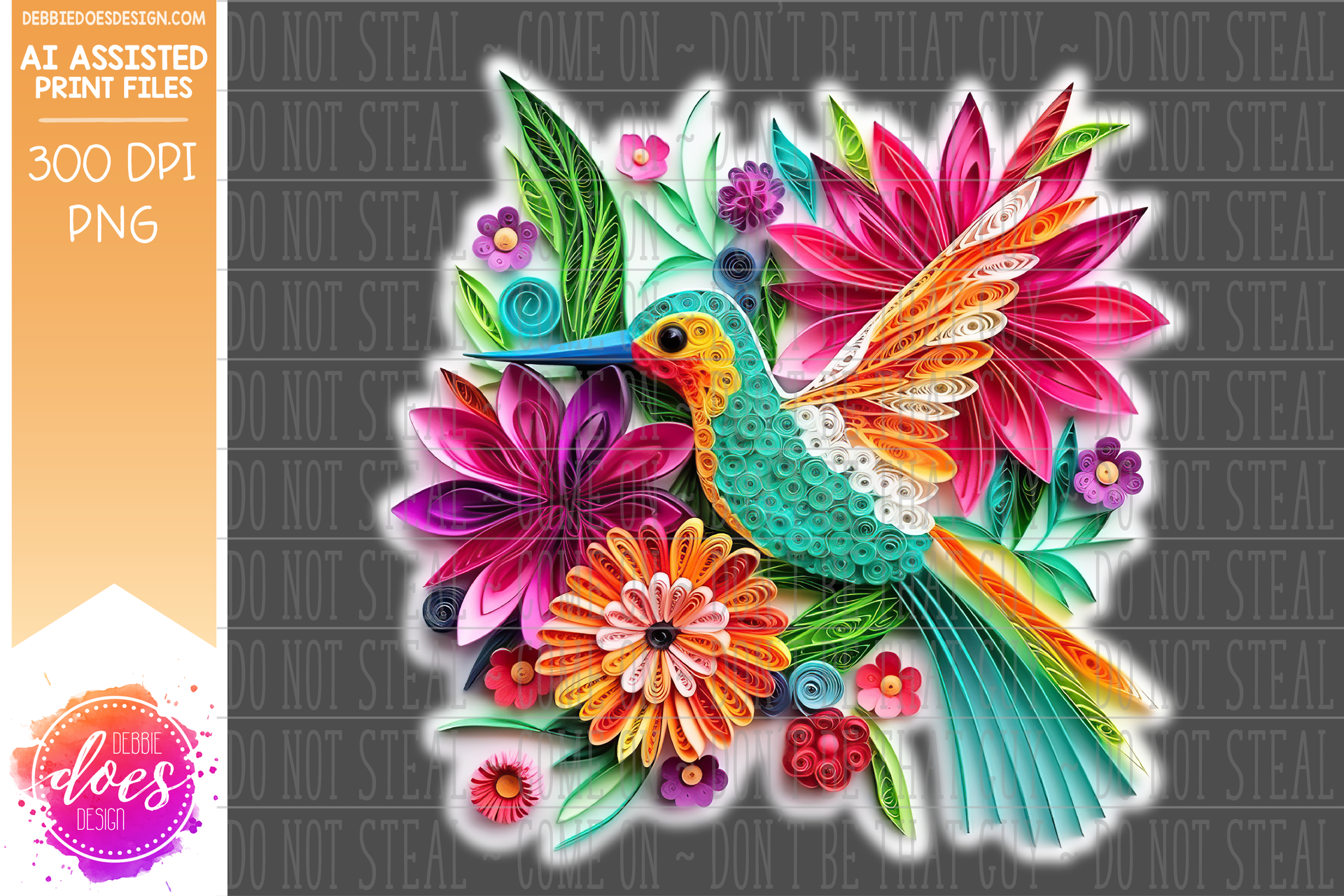 Paper Quilling - Hummingbird 8 - White Glow - Design Elements