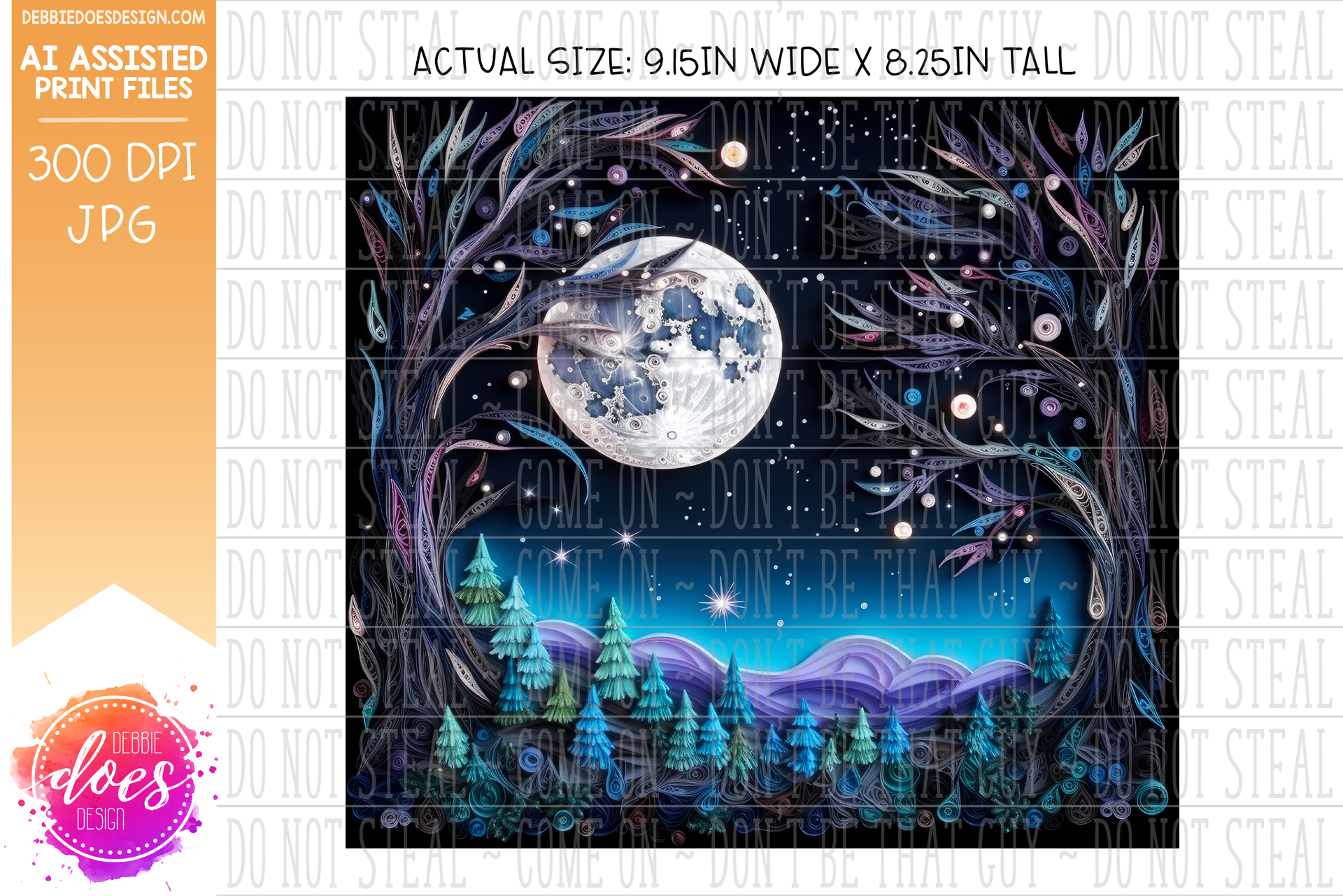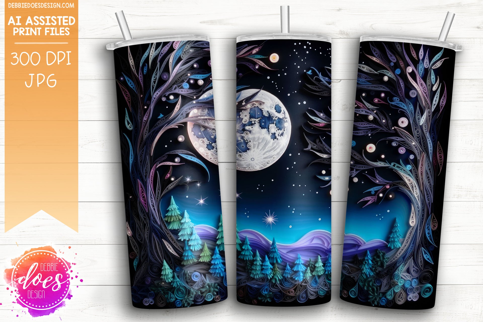 Paper Quilling - Night Sky and Trees - Tumbler - Printable/Sublimation Design