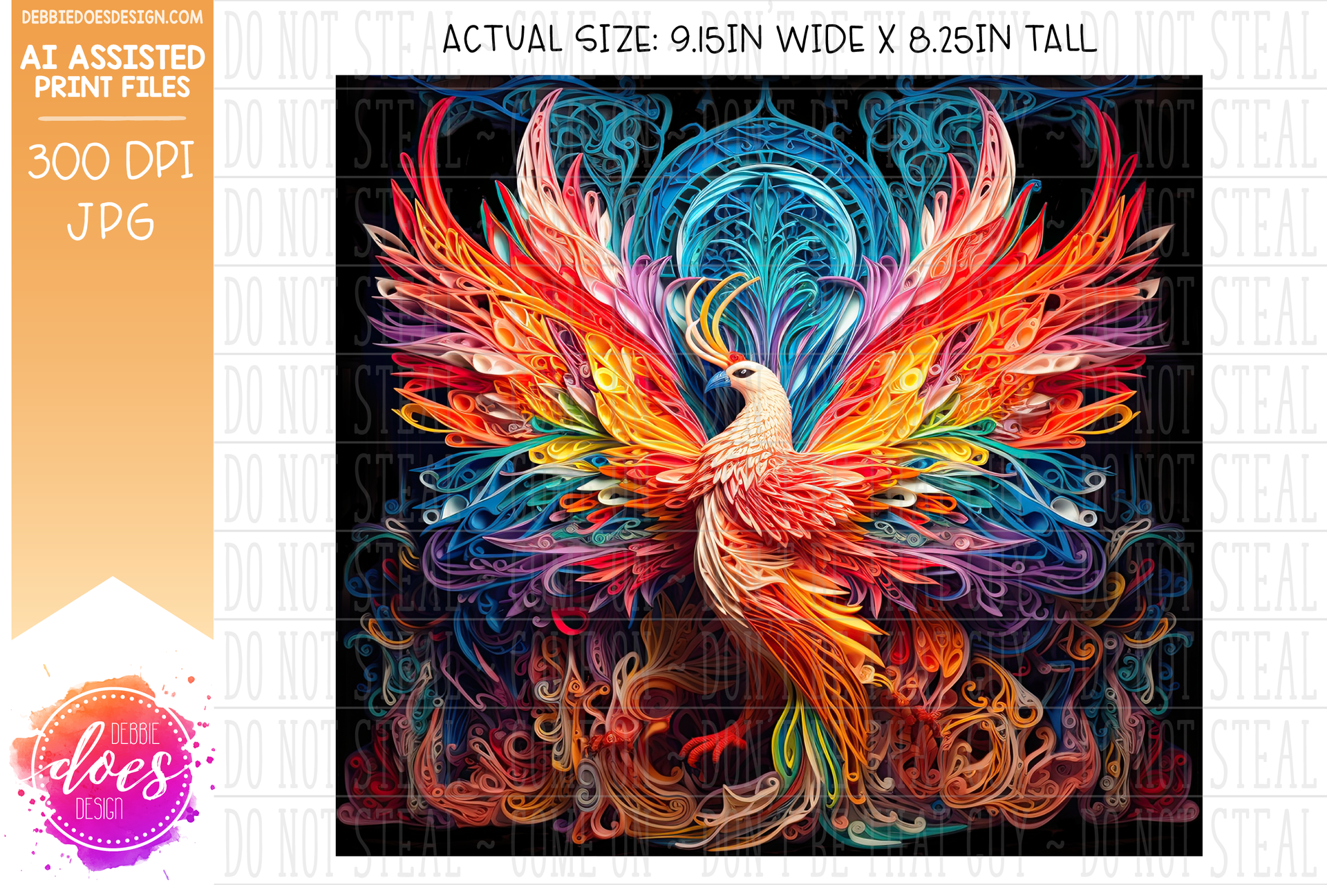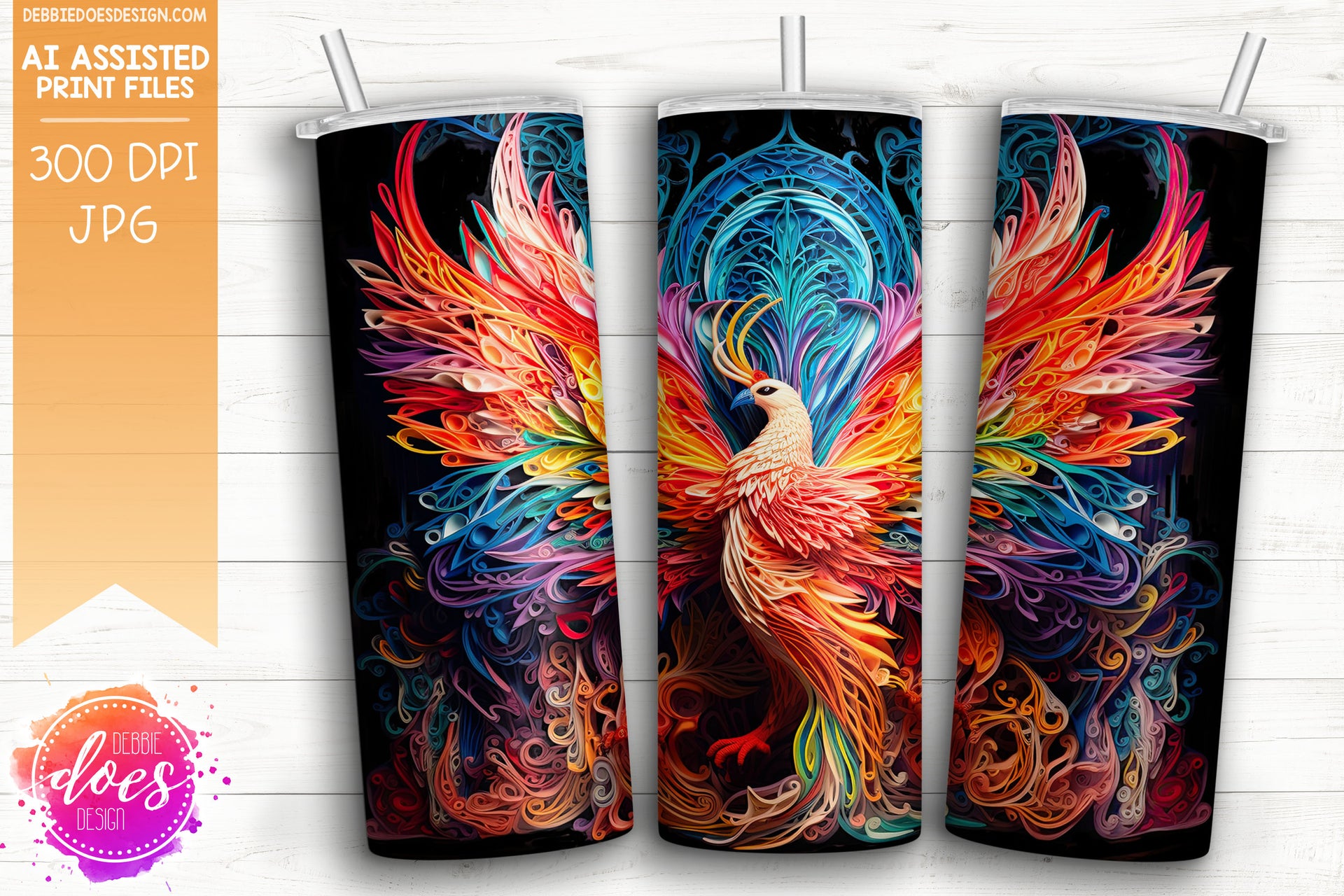 Paper Quilling - Rainbow Phoenix - Tumbler - Printable/Sublimation Design