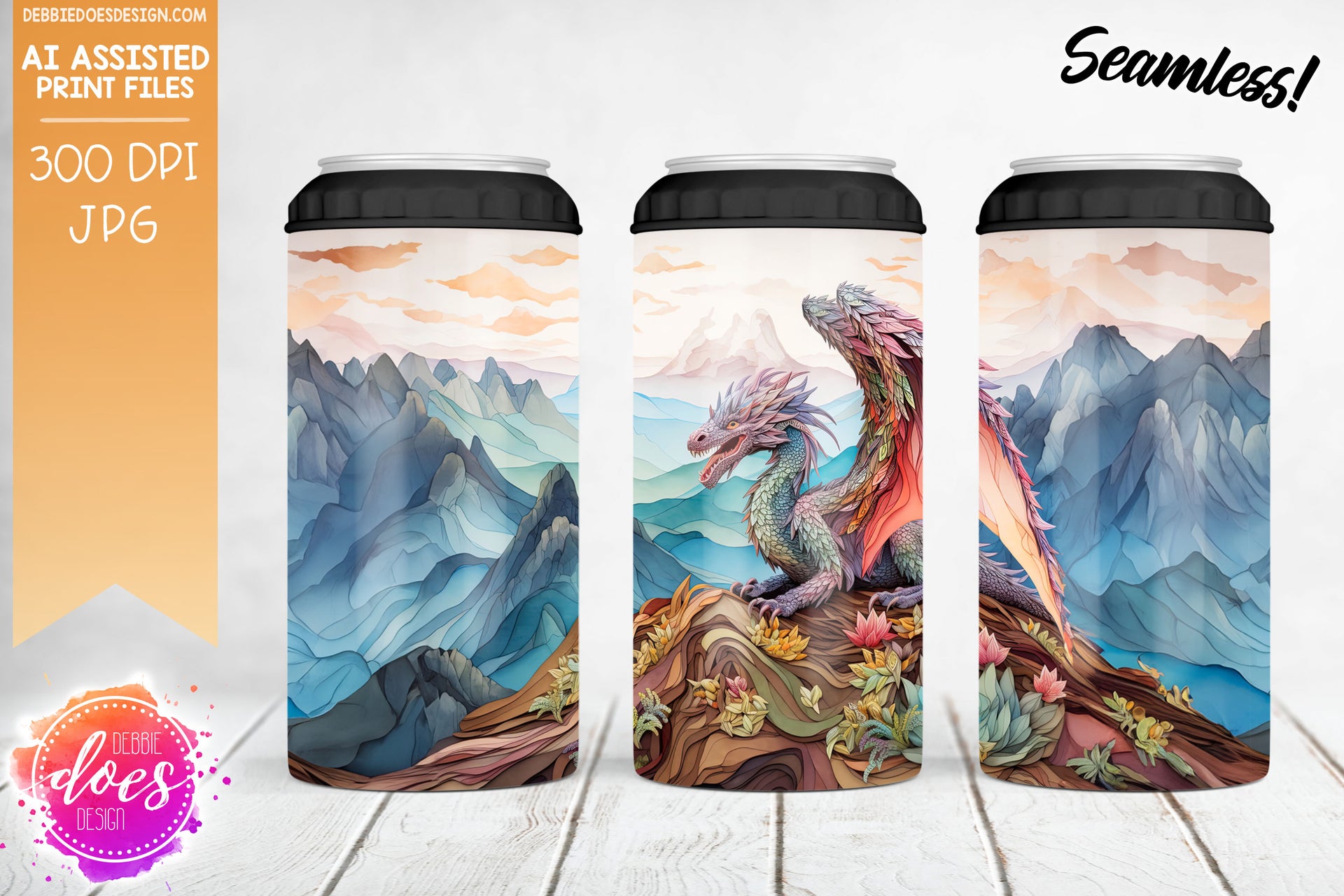 Pastel Dragon on Mountain 1 - 4-in-1 Can Cooler - Printable/Sublimation Design