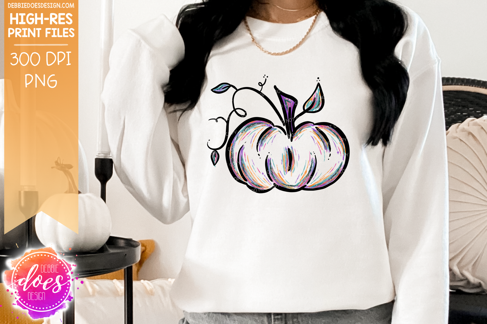Pastel Painted Pumpkin - Printable/Sublimation File