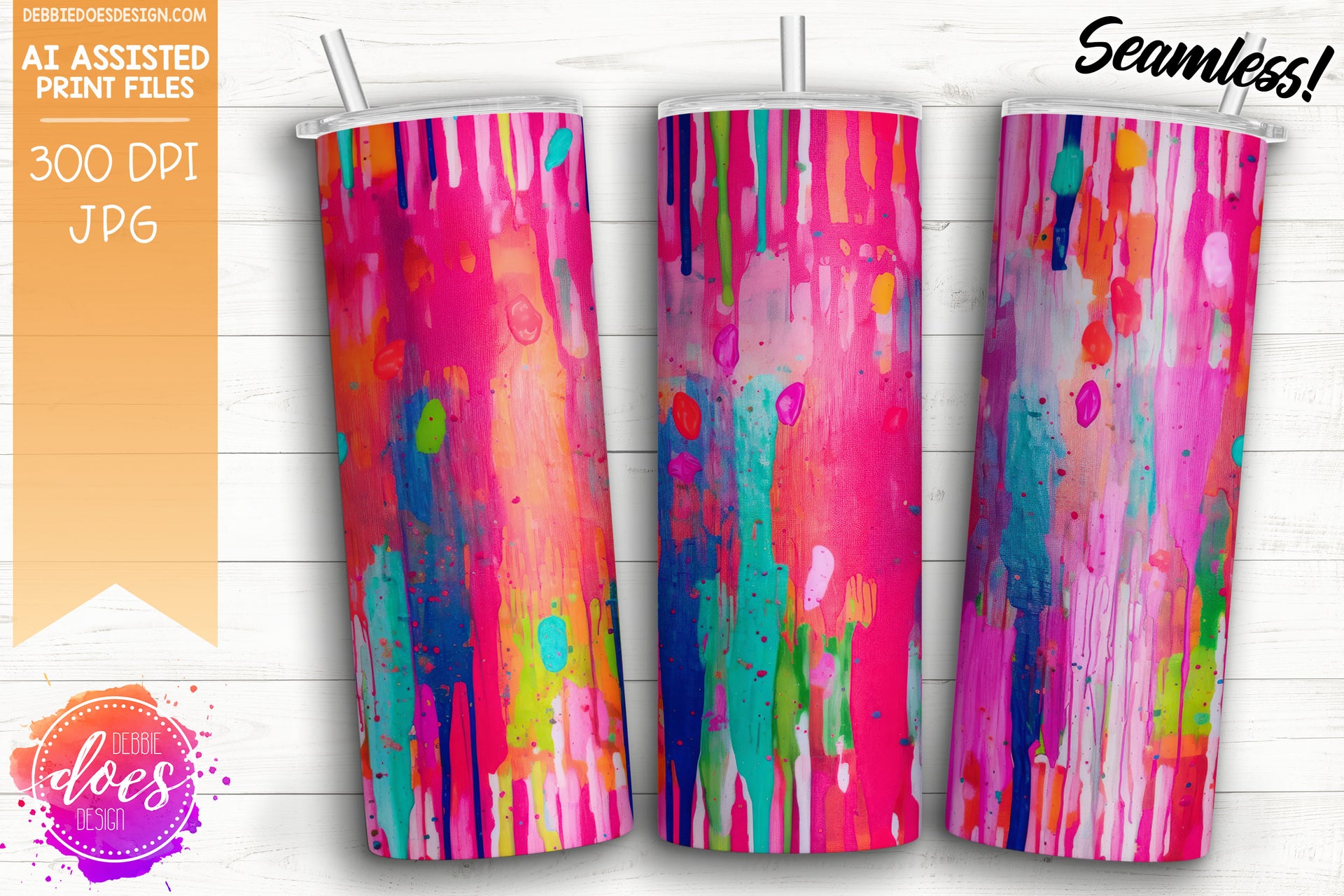 Pink Teal Colorful - Abstract Seamless Paint Strokes - Tumbler - Printable/Sublimation Design
