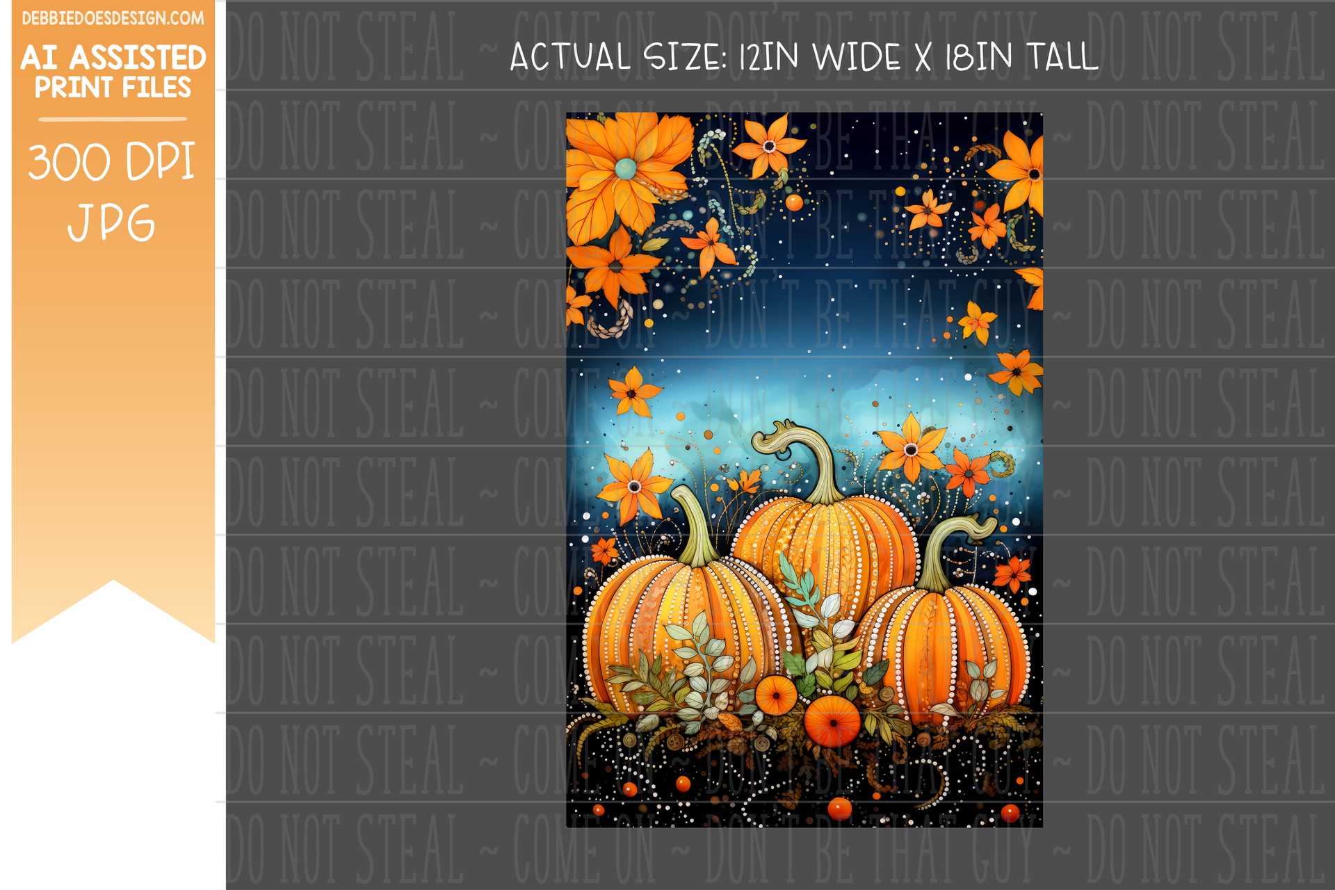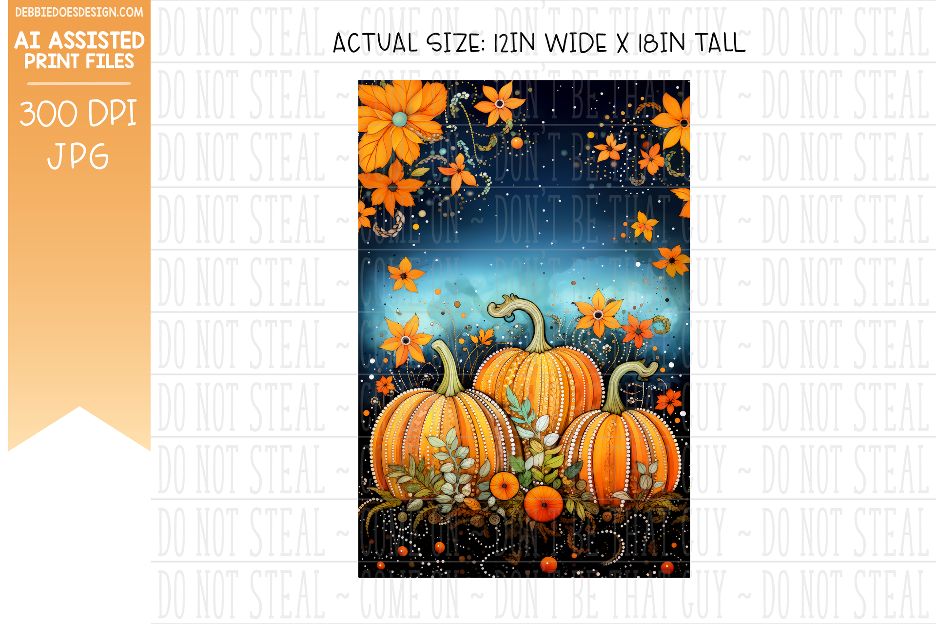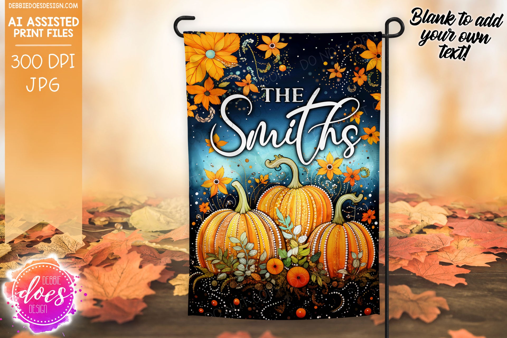 Polka Dots Pumpkins and Flowers - Blank - Garden Flag - AI Assisted Printable/Sublimation Design