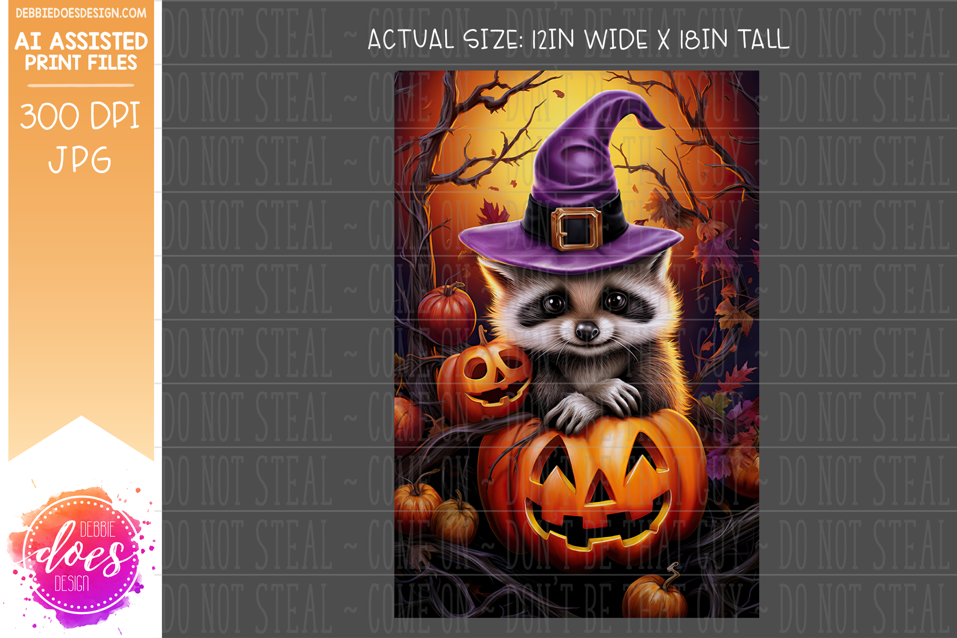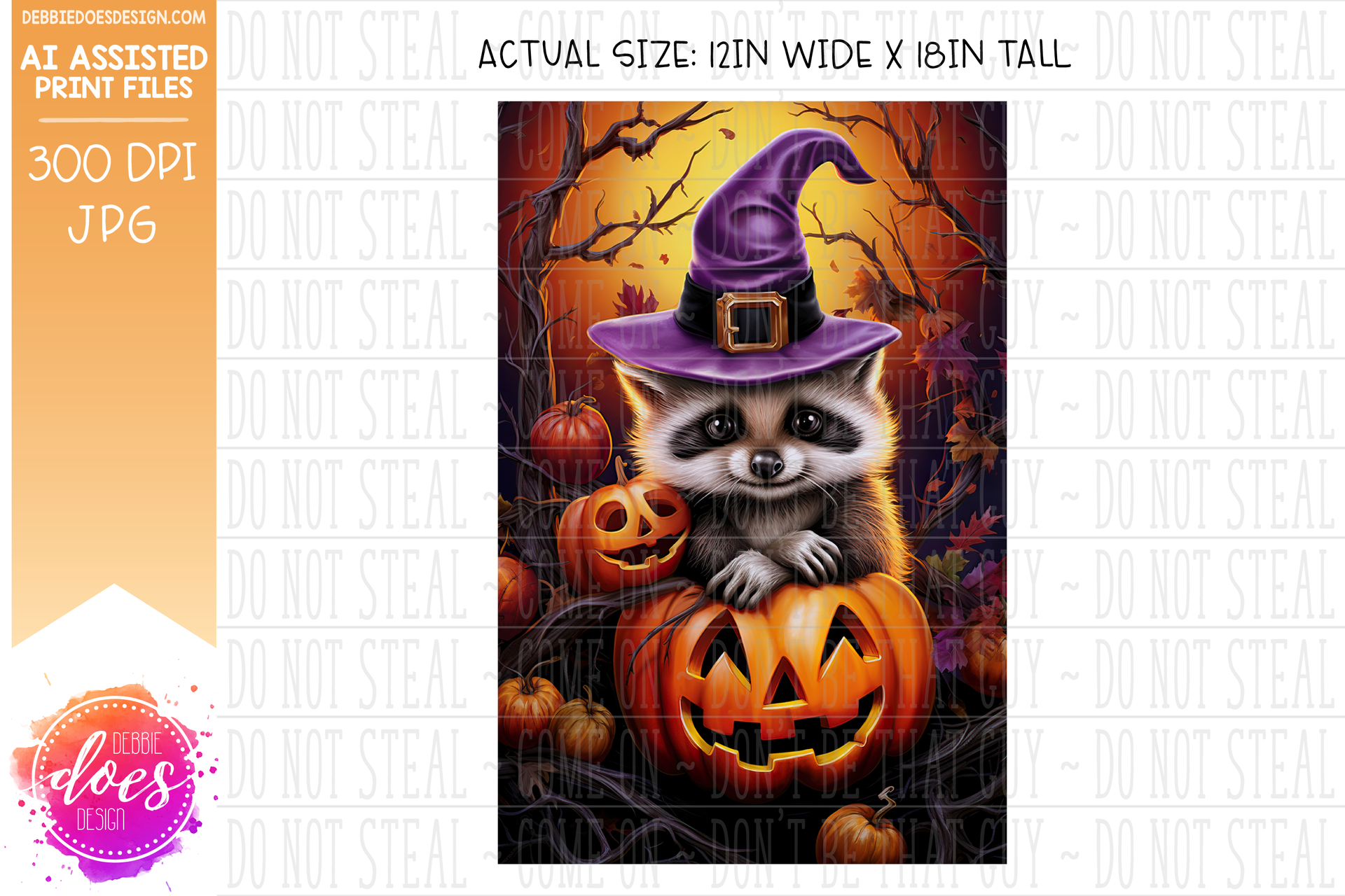 Raccoon with Witches Hat on Jack O Lantern - Garden Flag - Printable/Sublimation Design