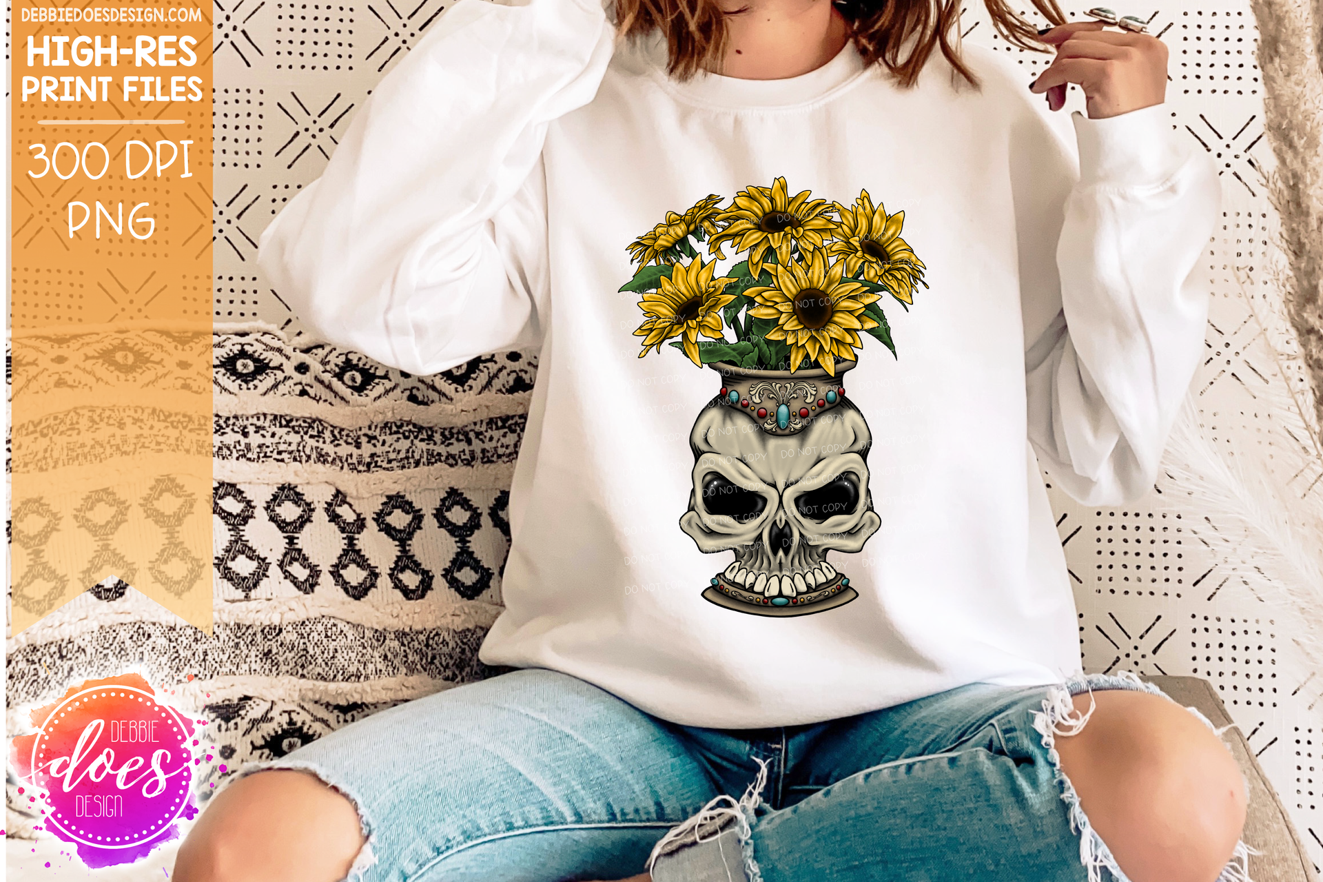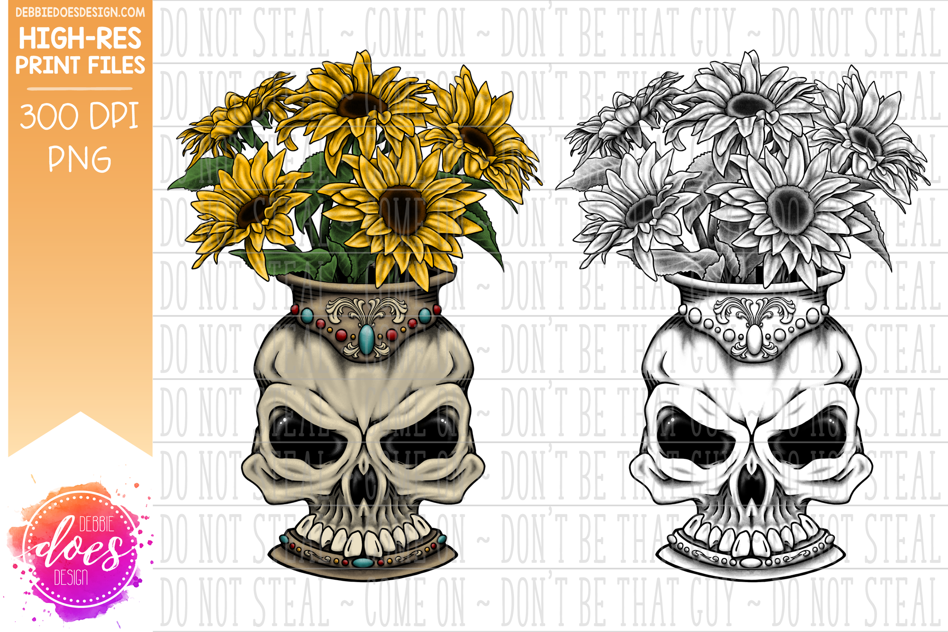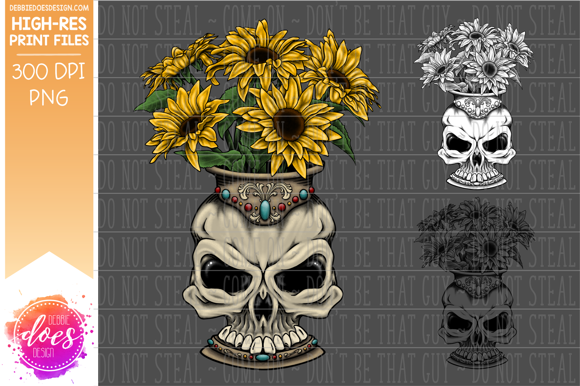 Skull Vase with Sunflowers - 3 Versions! - Sublimation/Printable Design