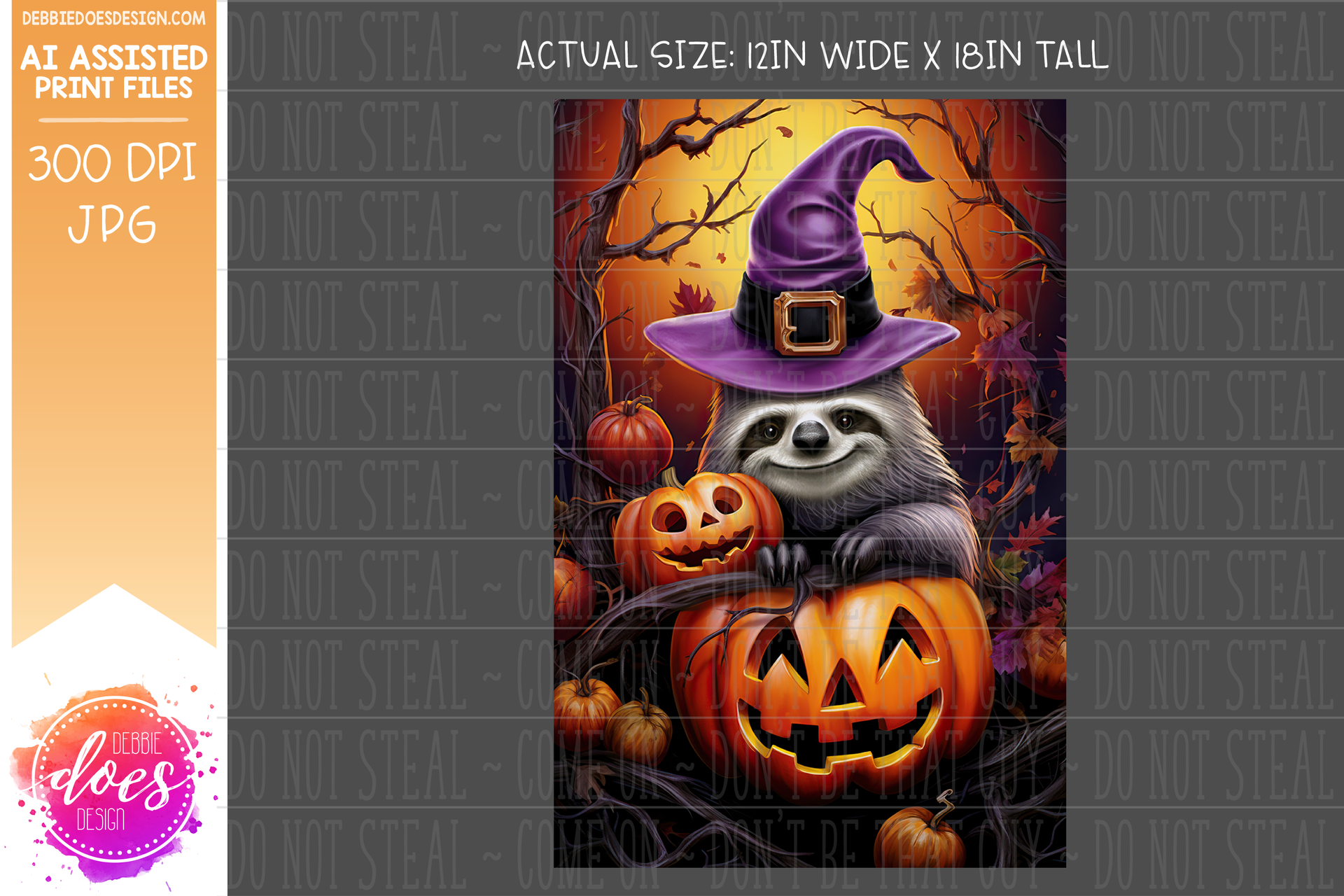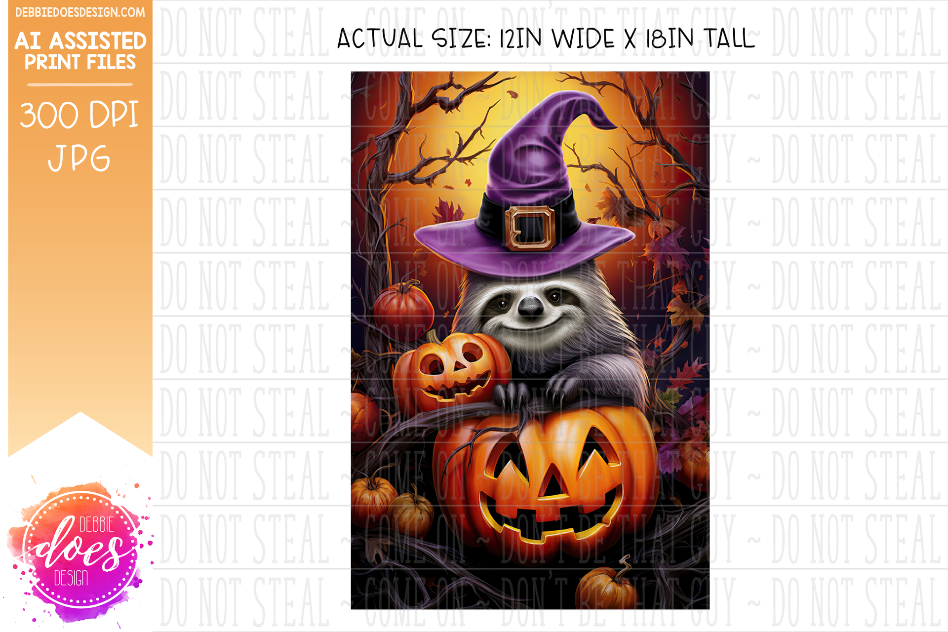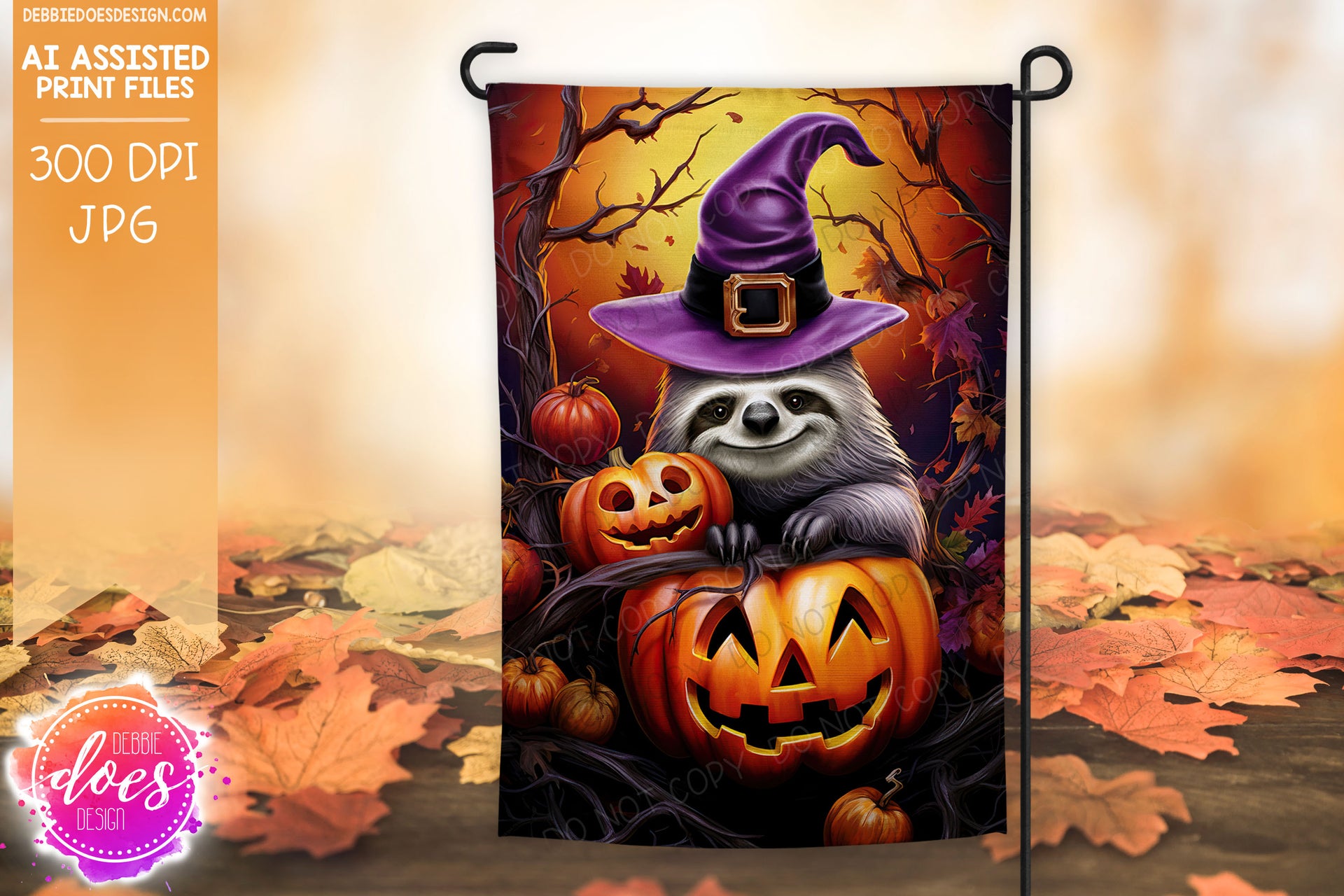 Sloth with Witches Hat on Jack O Lantern - Garden Flag - Printable/Sublimation Design