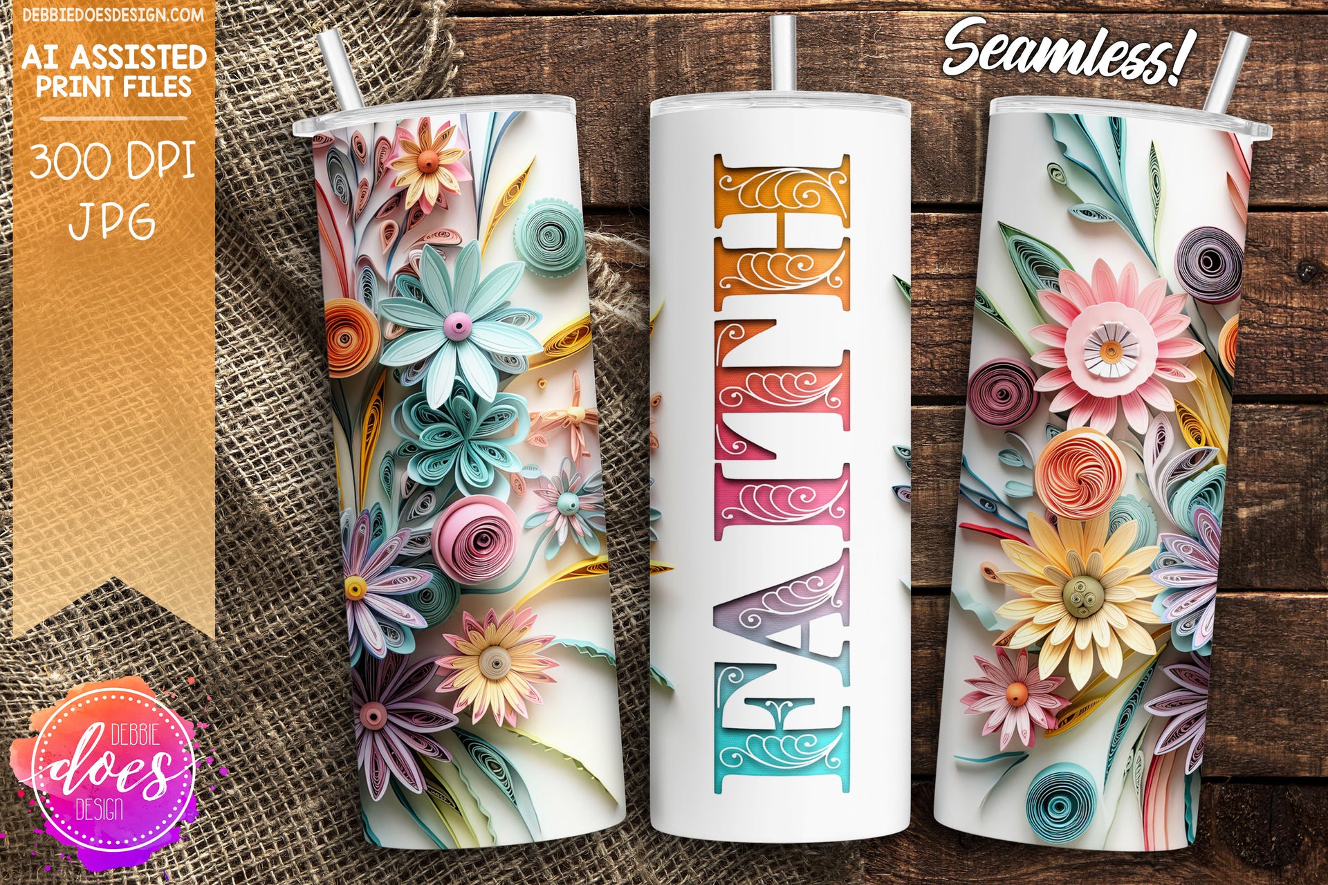 Soft Pastel Wildflowers Tumbler - Faith- Printable/Sublimation Design