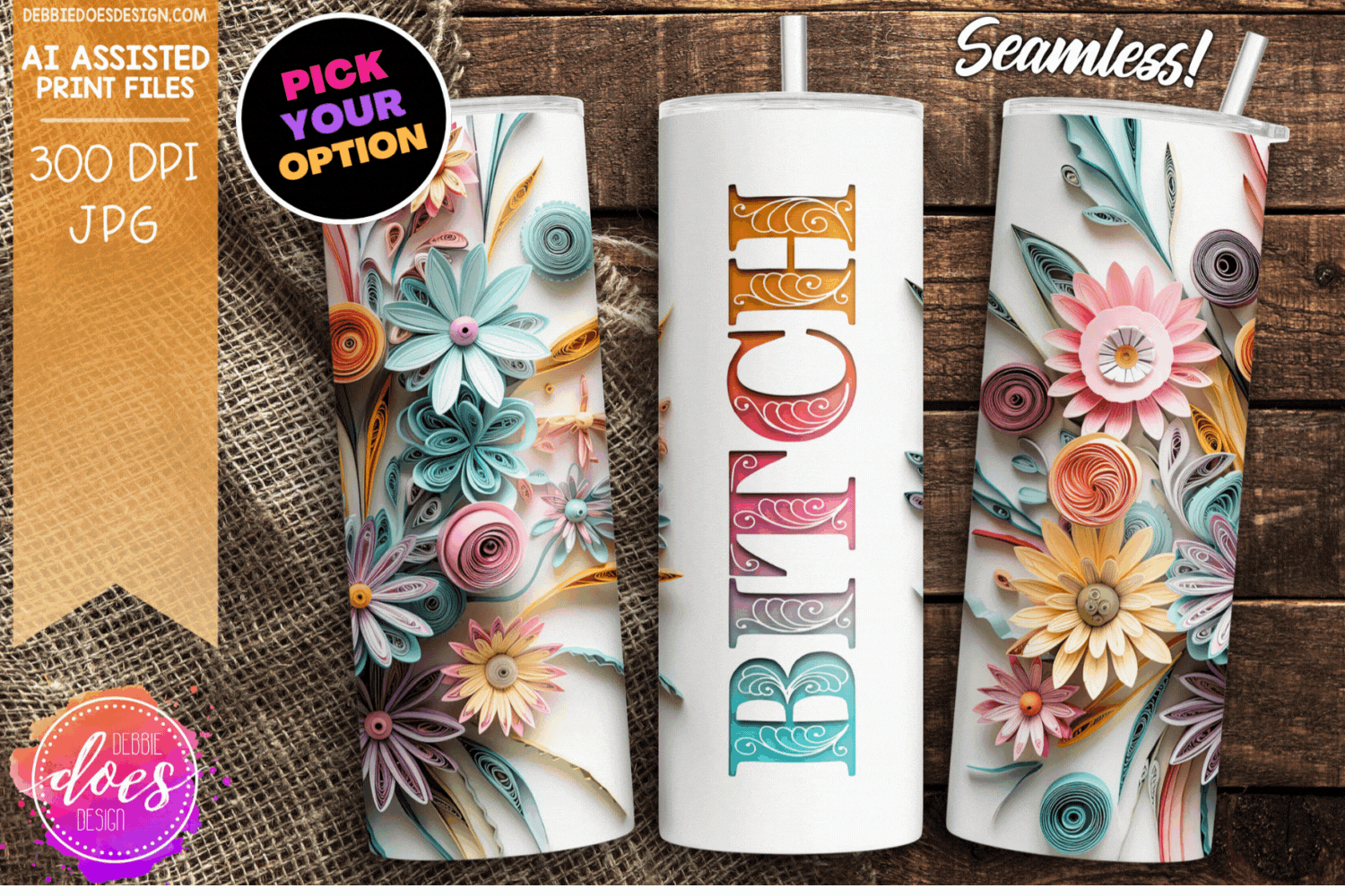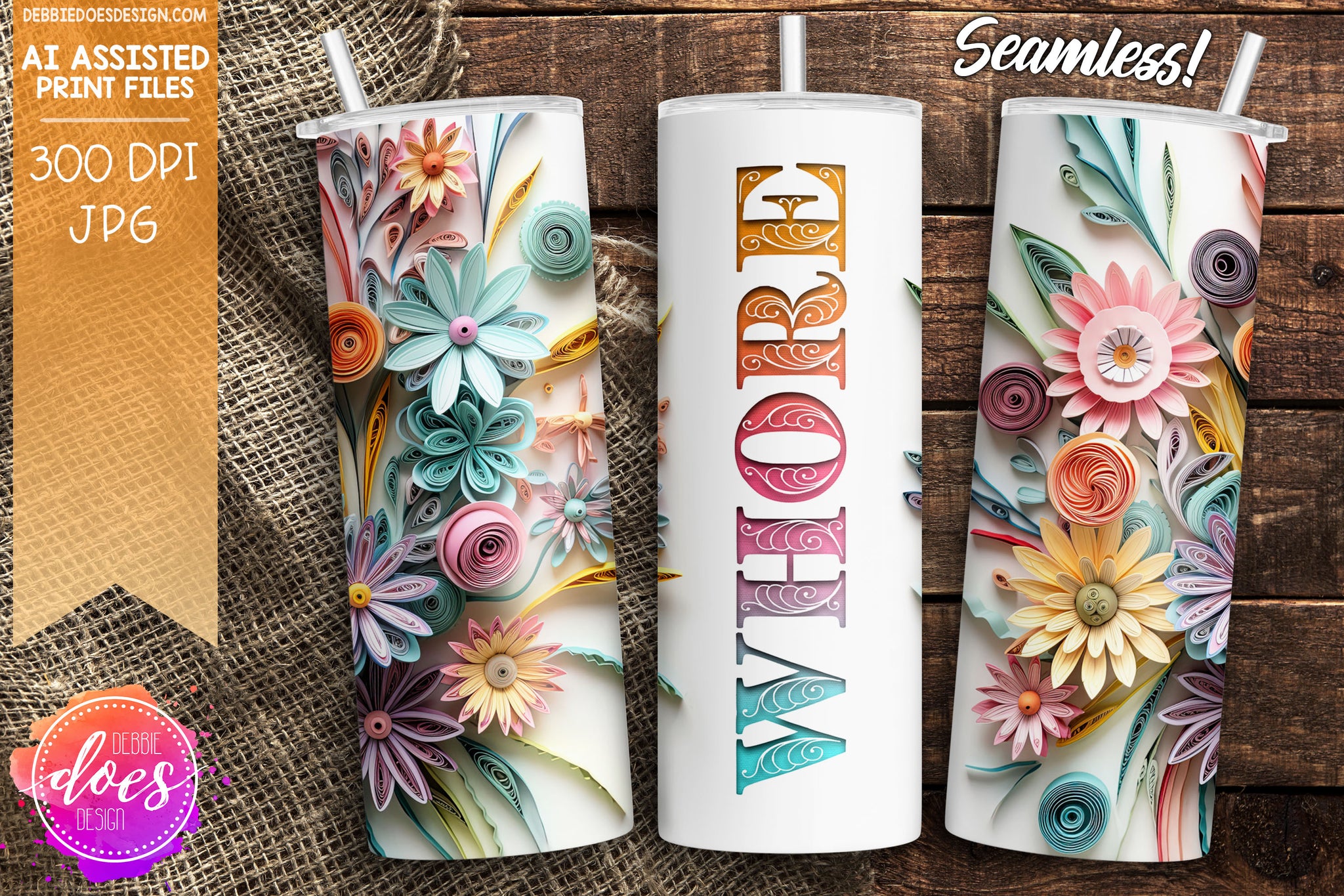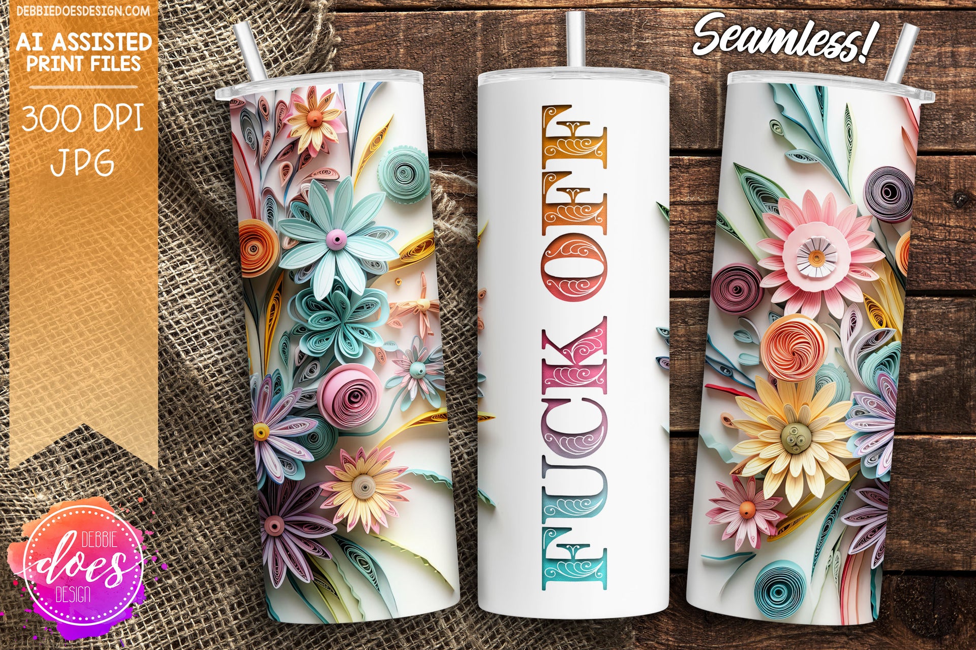Soft Pastel Wildflowers Tumbler - Sassy Versions - Choose your Option - Printable/Sublimation Design