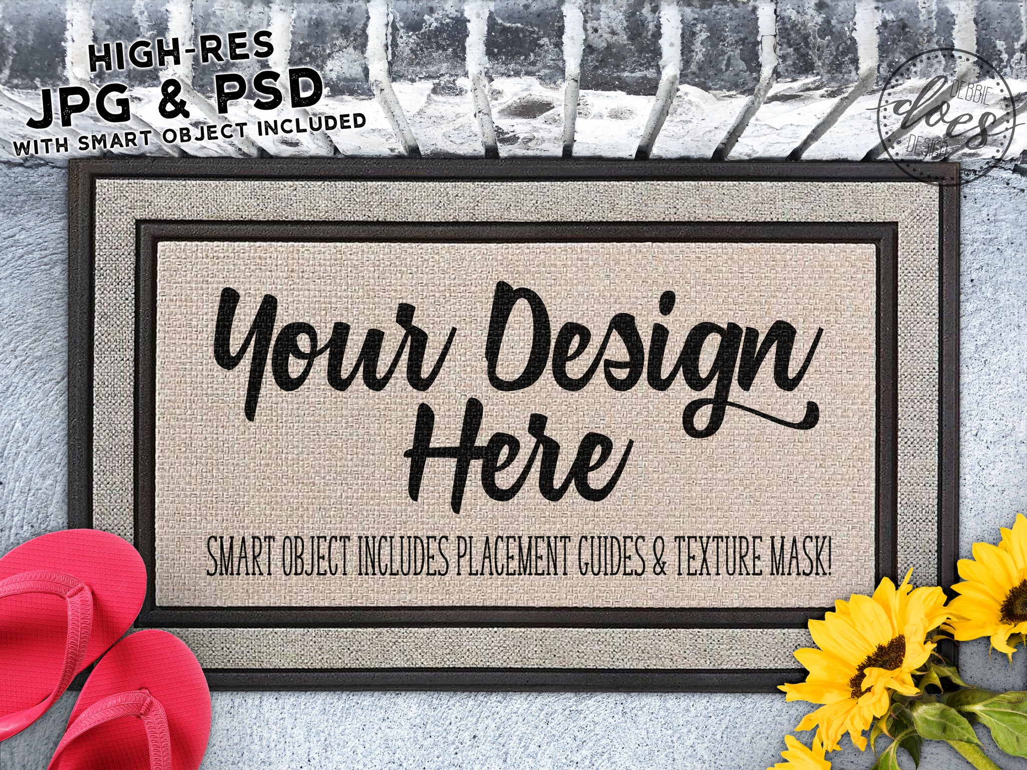 Sunflowers & Flip Flops Grey Doormat Mockup with Smart Object