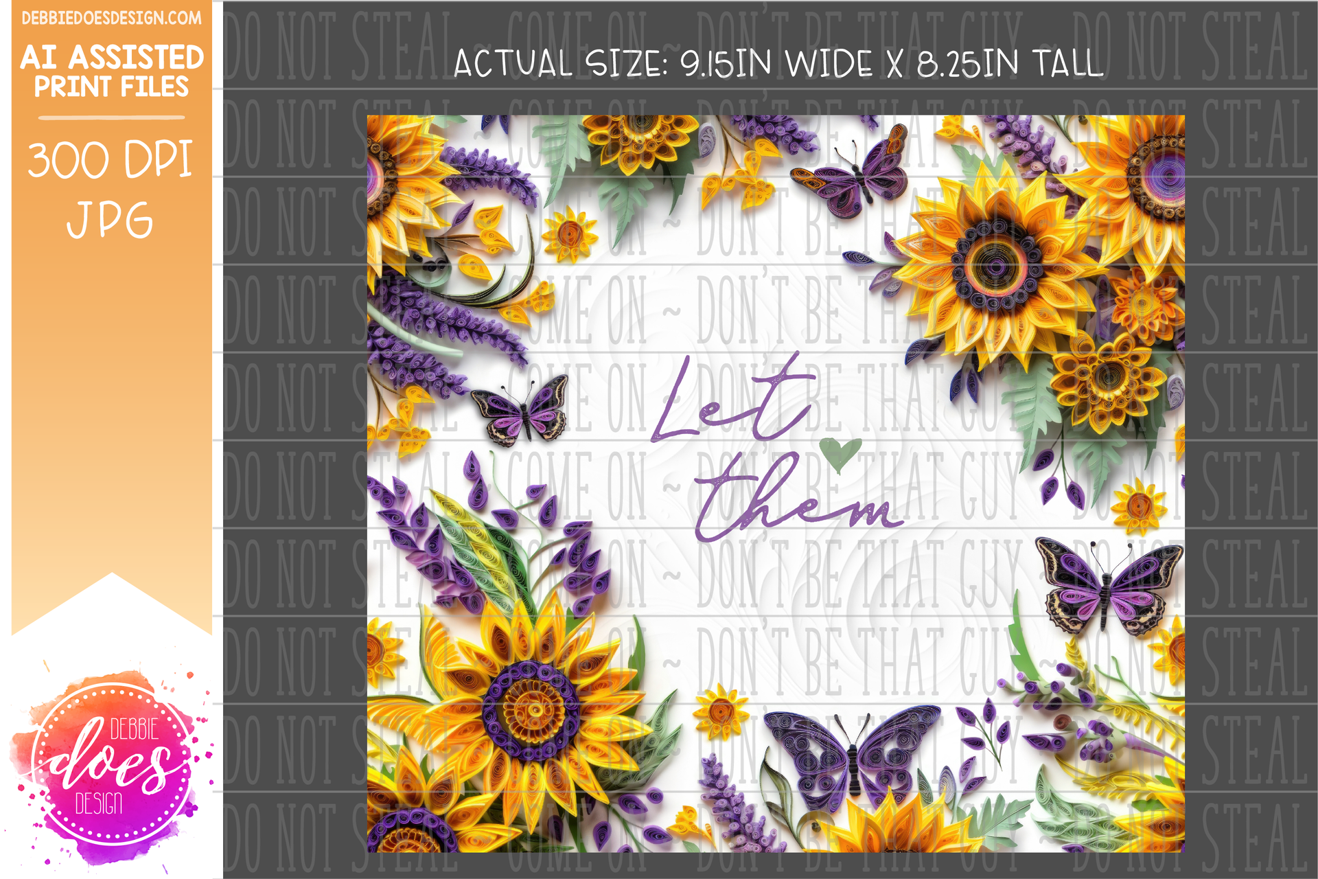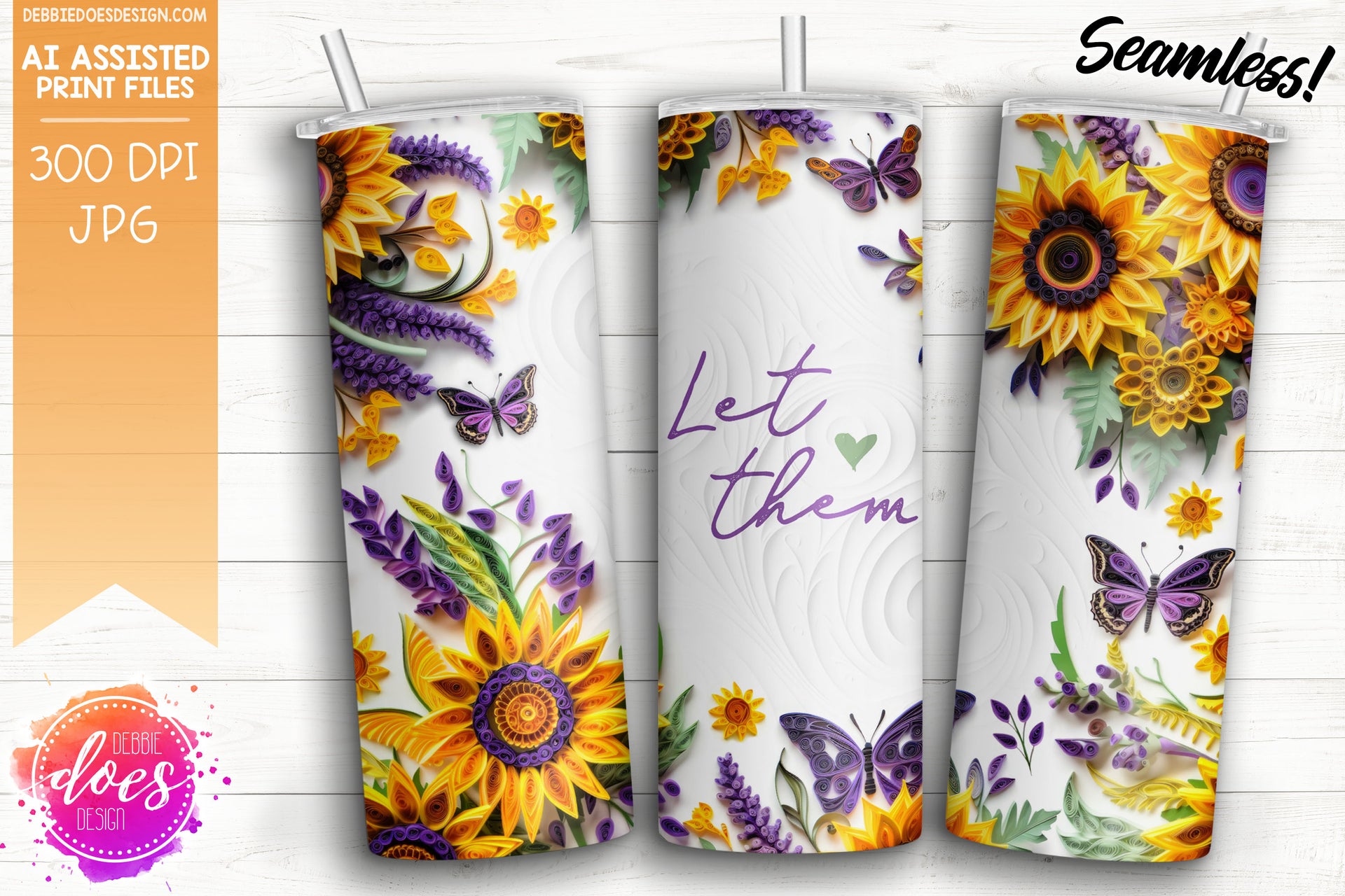 Sunflowers Lavender Butterflies Tumbler - Let Them - Printable/Sublimation Design