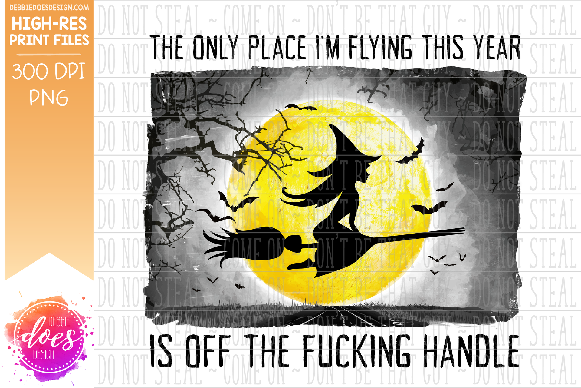 The Only Place I'm Flying This Year is Off the Fucking Handle - Witch - Sublimation/Printable Design