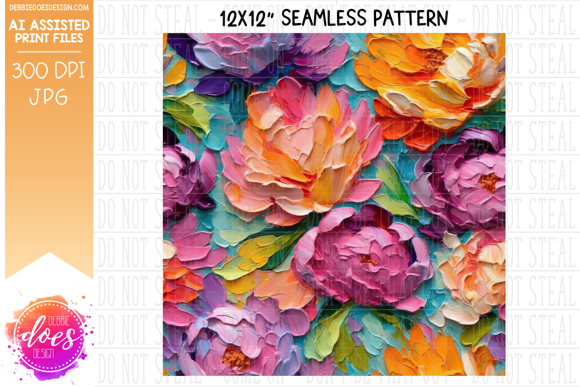 Thick Acrylic Painting - Pastel Peonies 1 - Seamless Pattern - Design Elements