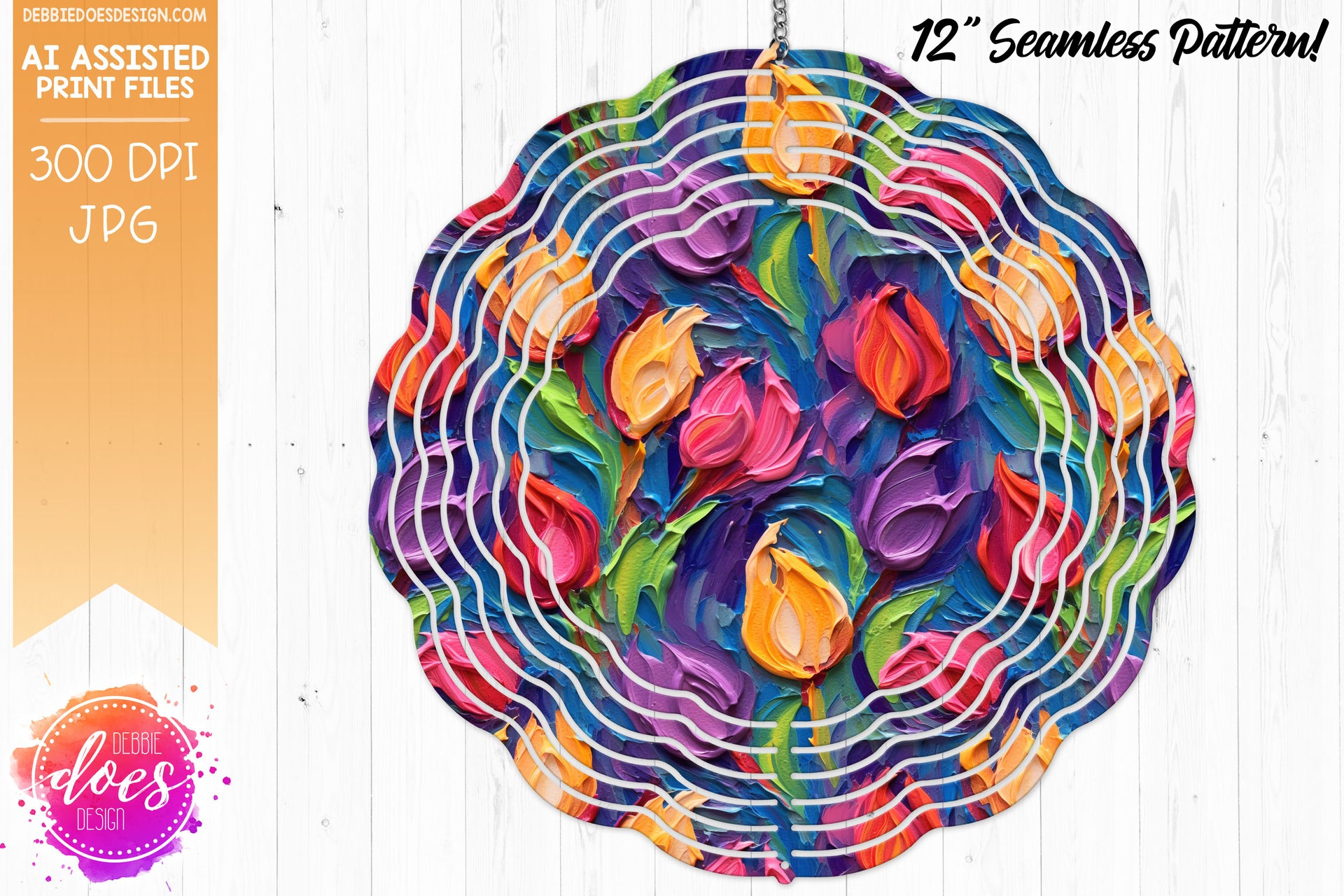 Thick Acrylic Painting - Purple Pink Orange Tulips 1 - Seamless Pattern - Design Elements