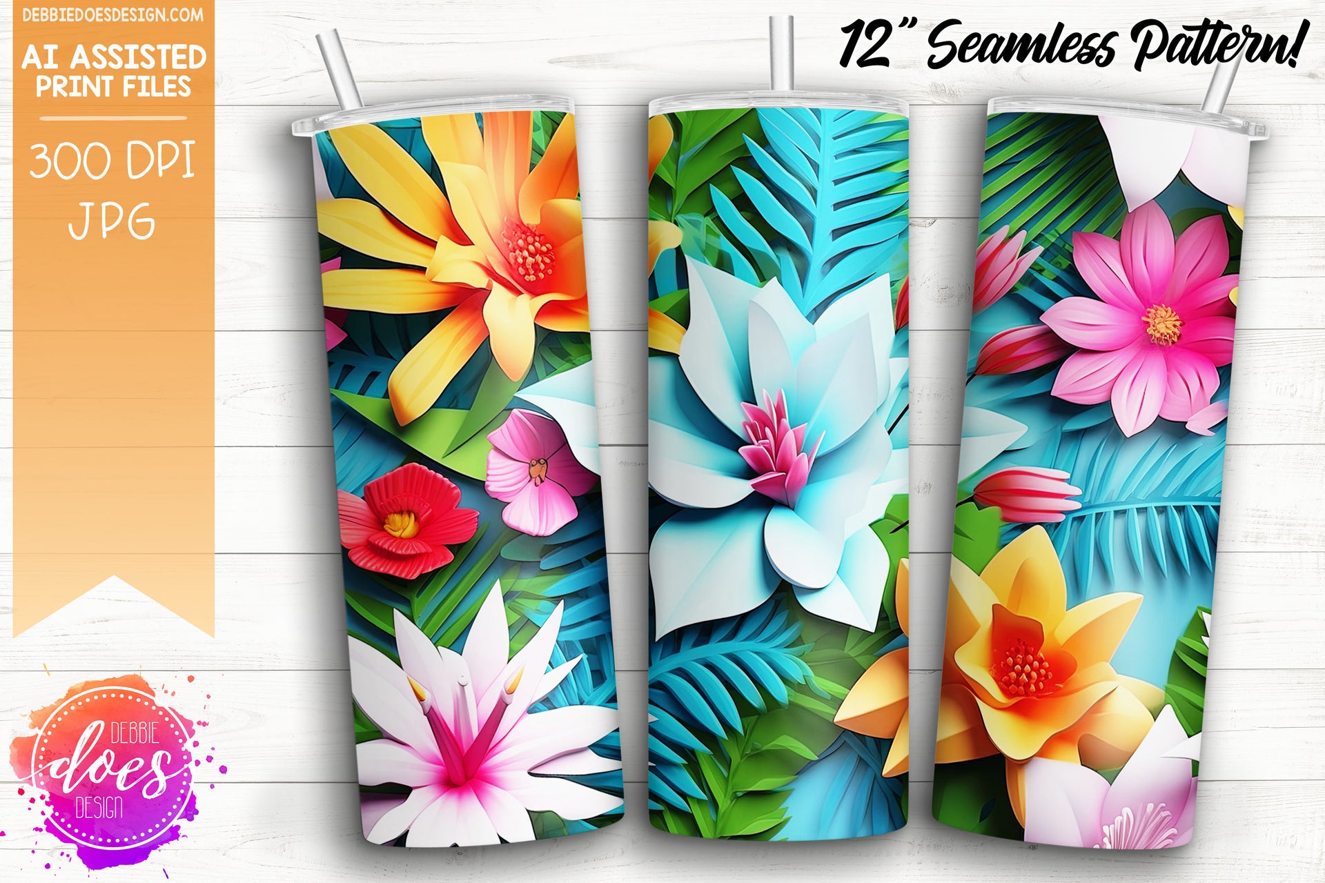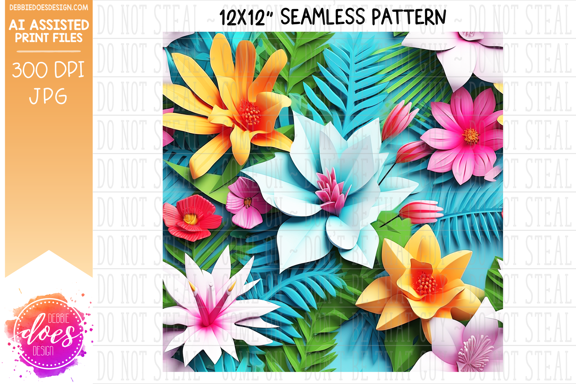 Tropical Flowers - Blue - Seamless Pattern - Design Elements