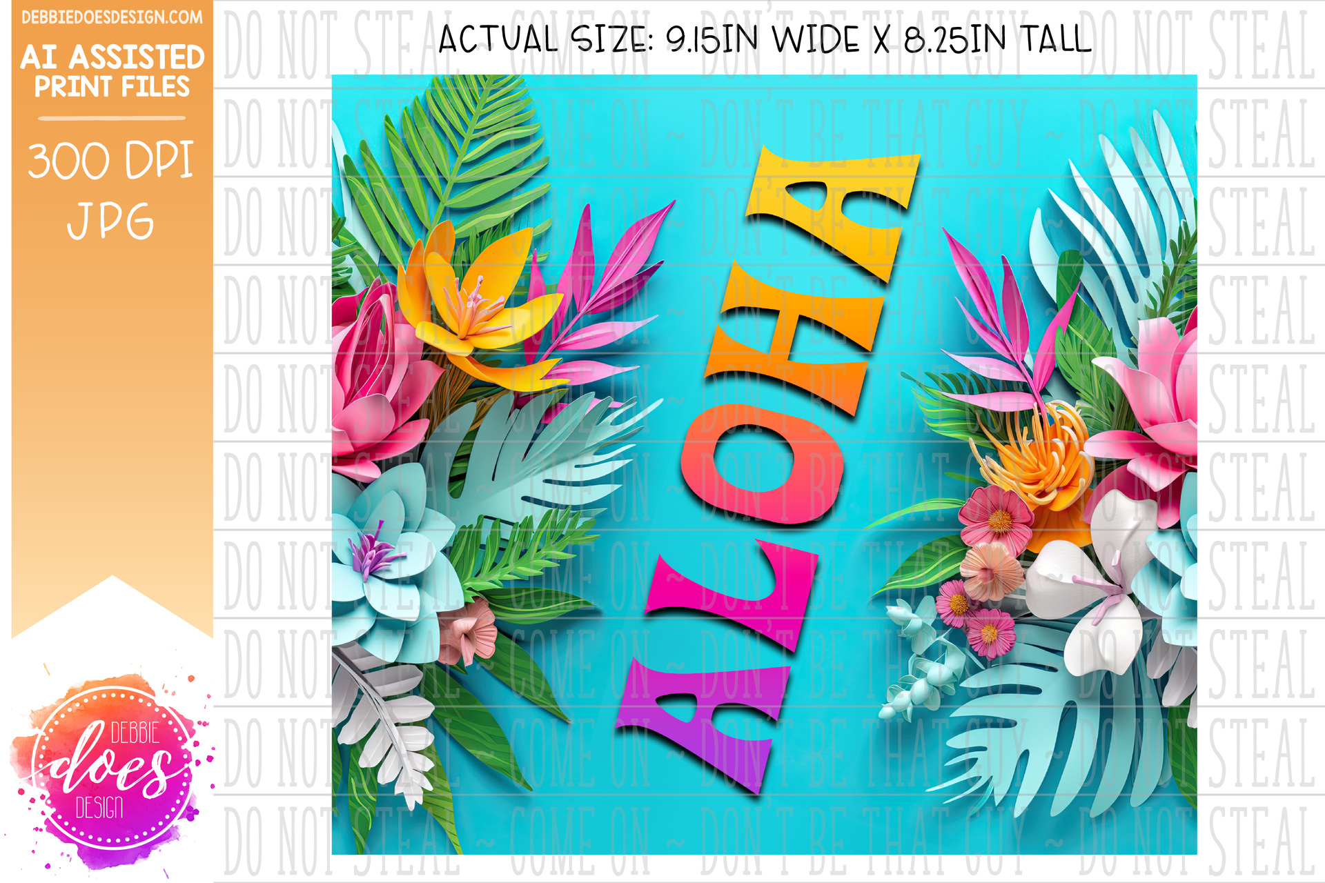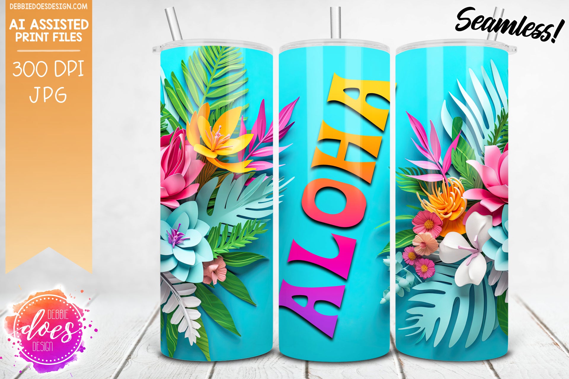 Tropical Flowers - Blue - Tumbler - Aloha - Printable/Sublimation Design