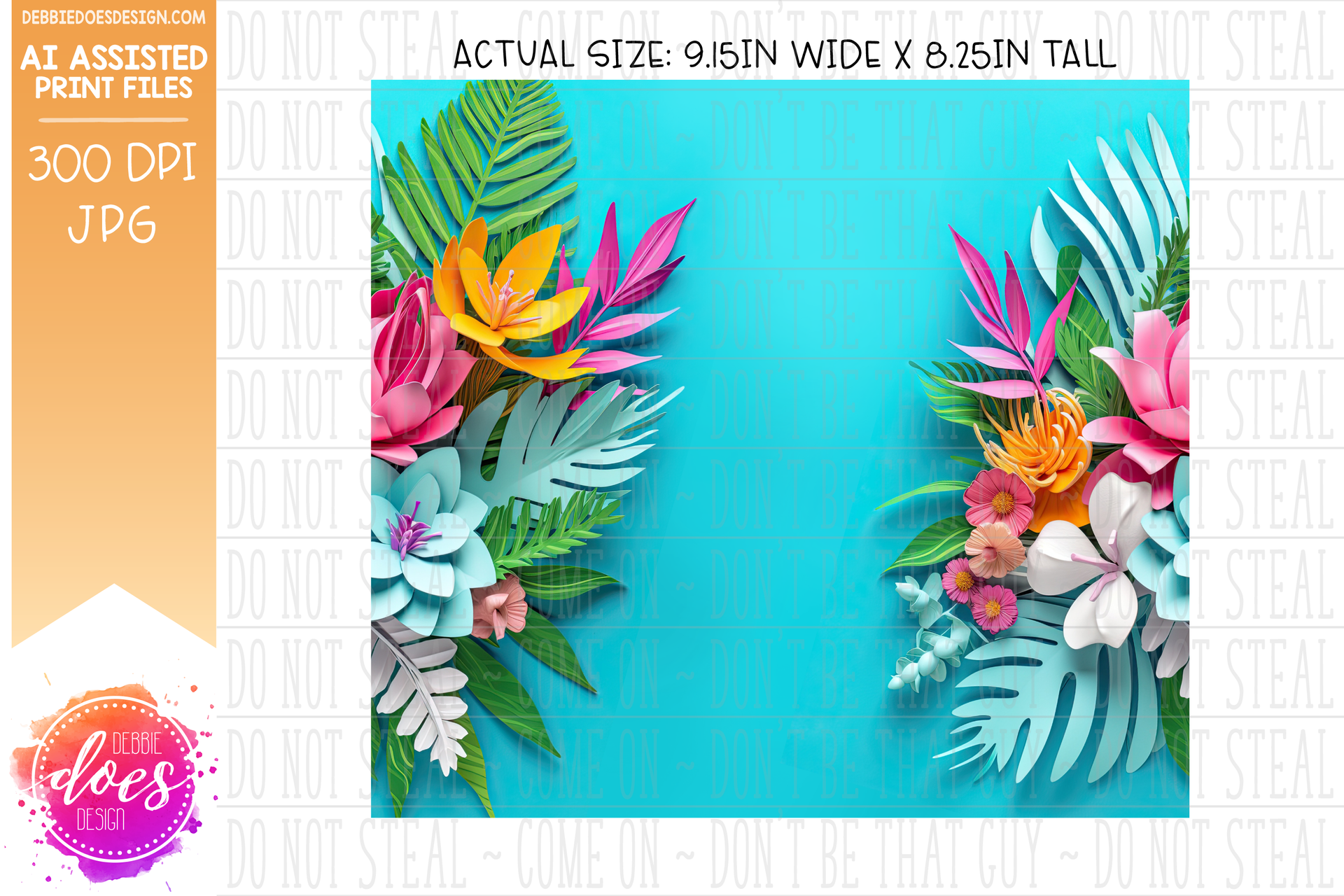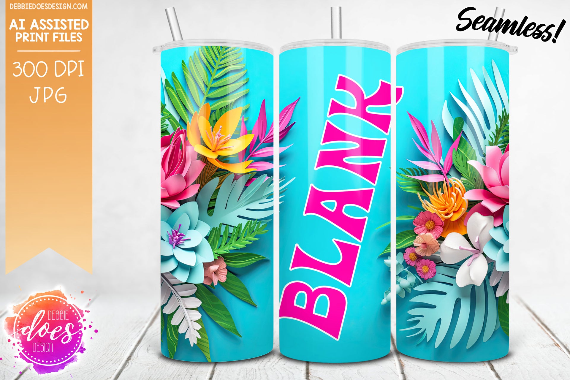 Tropical Flowers - Blue Tumbler - Blank - Printable/Sublimation Design