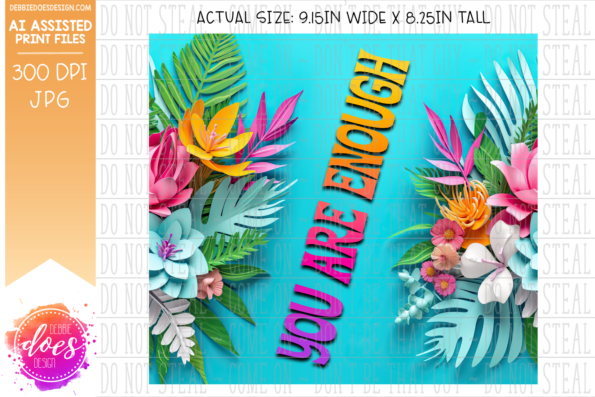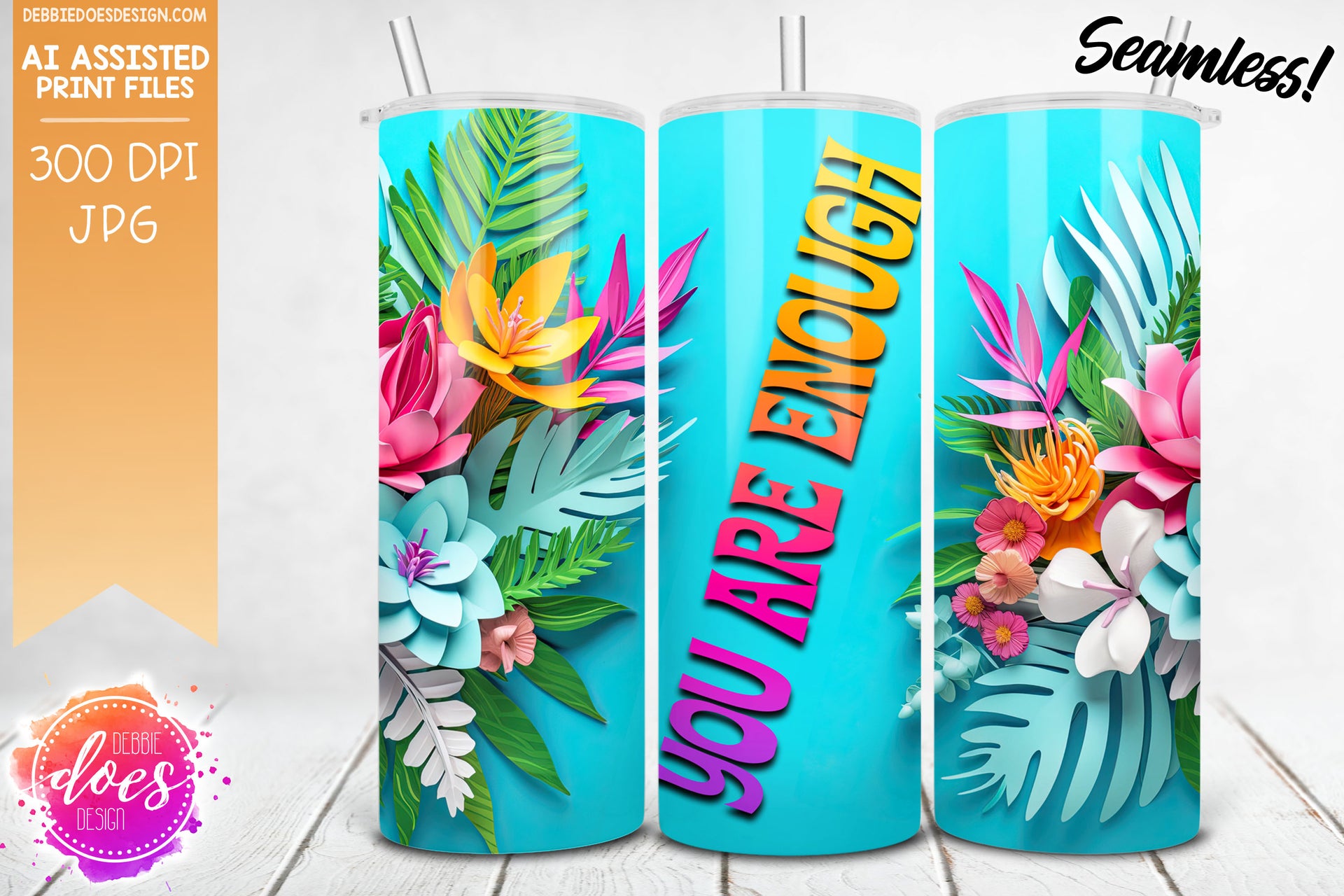 Tropical Flowers - Blue - Tumbler - You are Enough - Printable/Sublimation Design