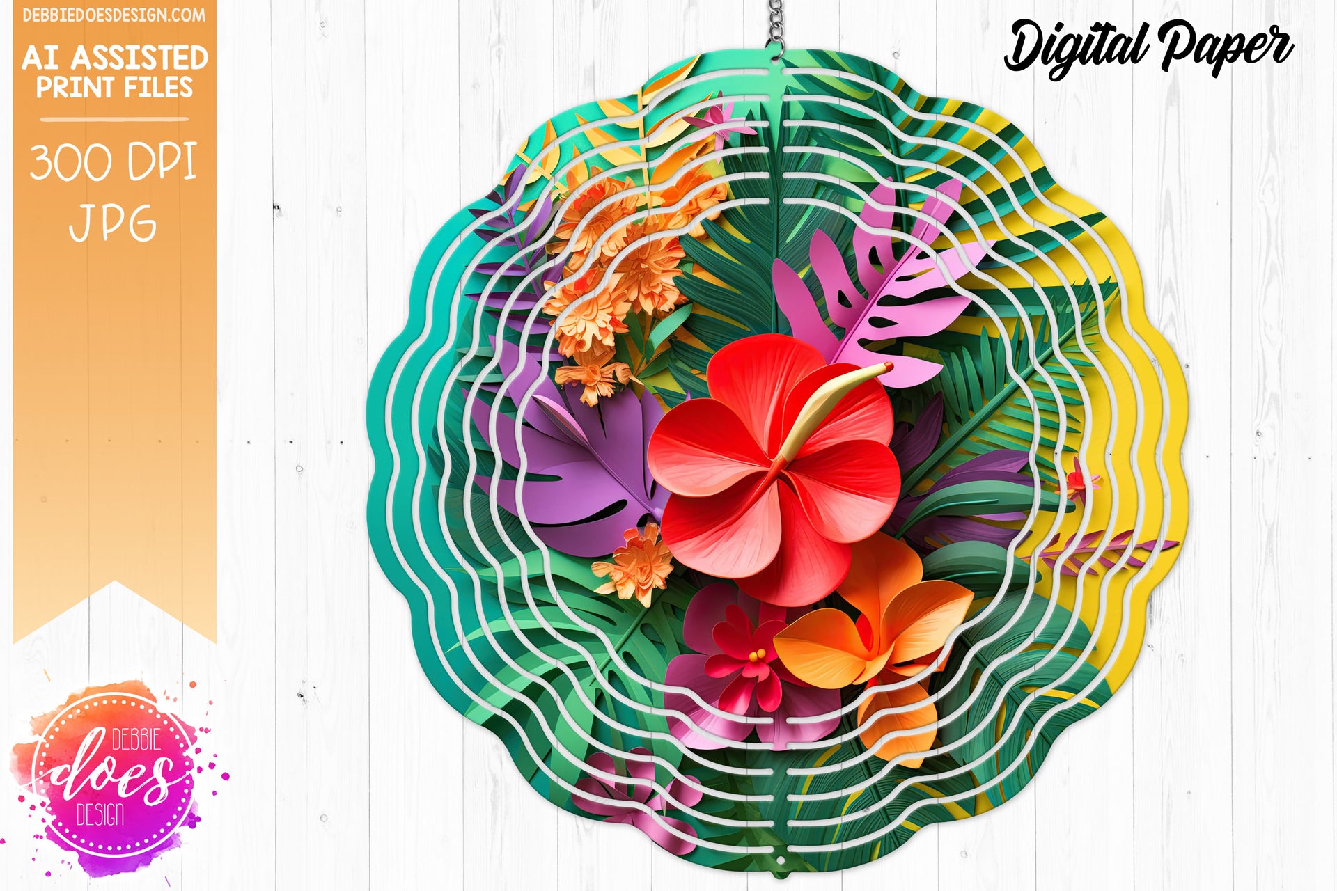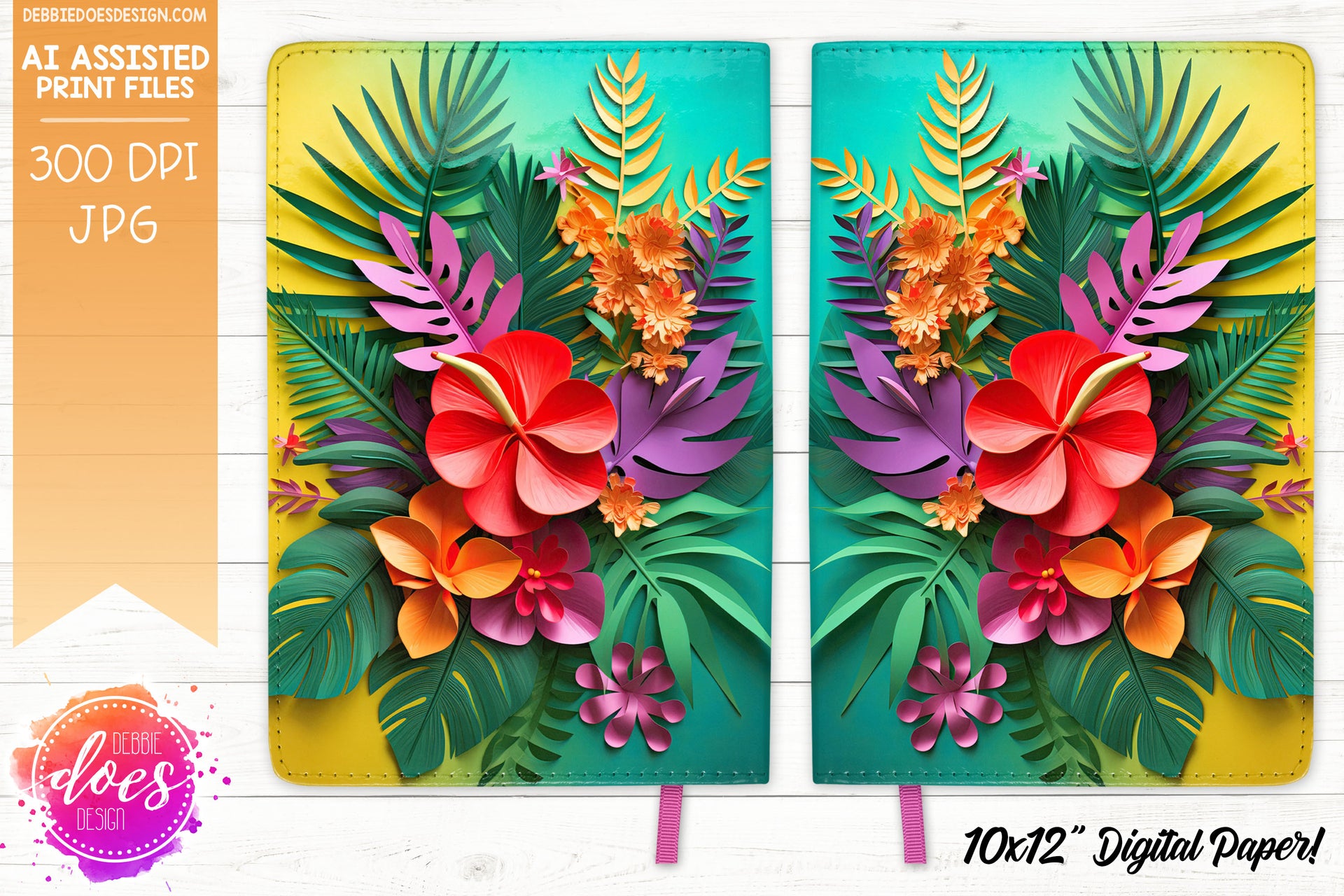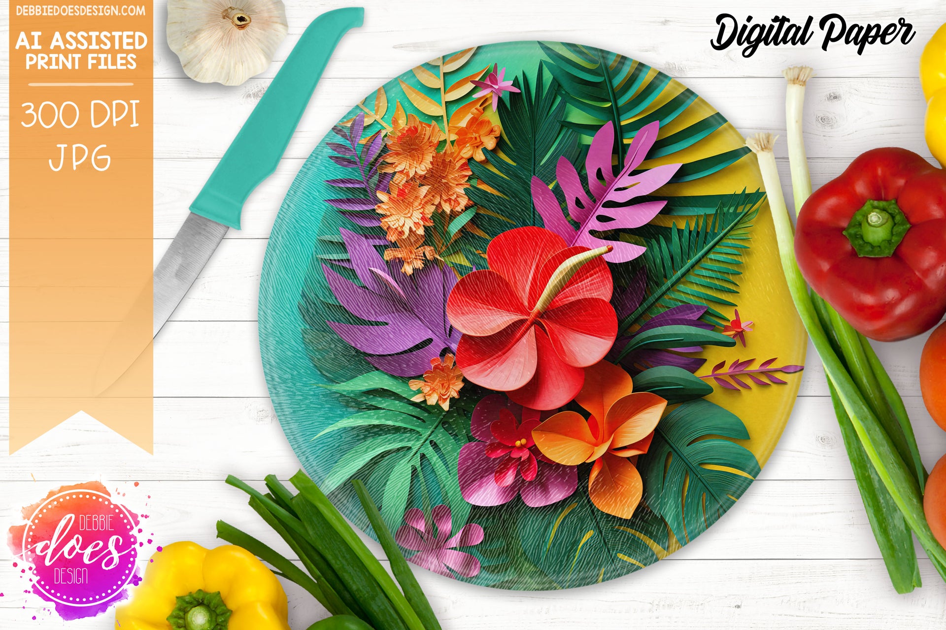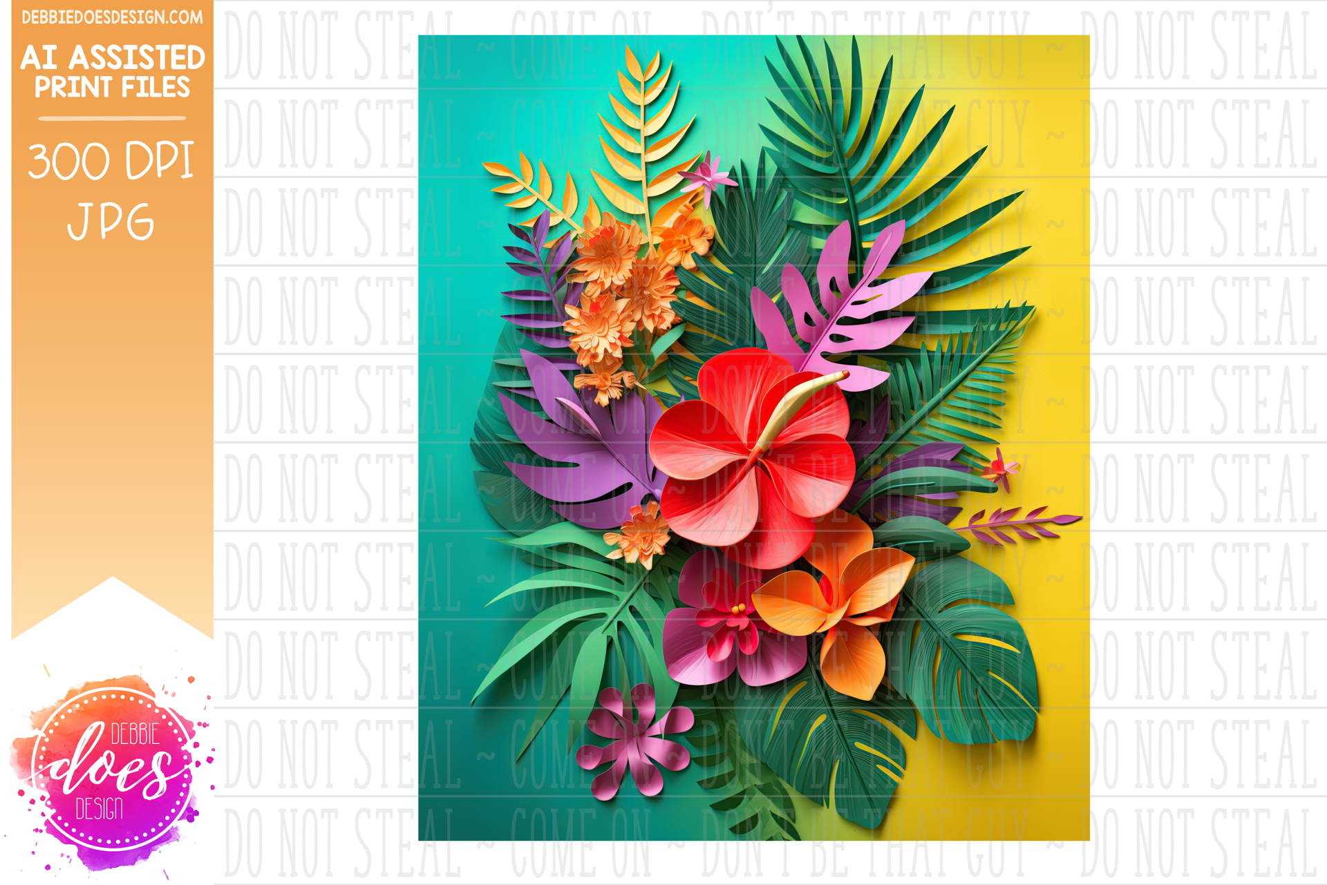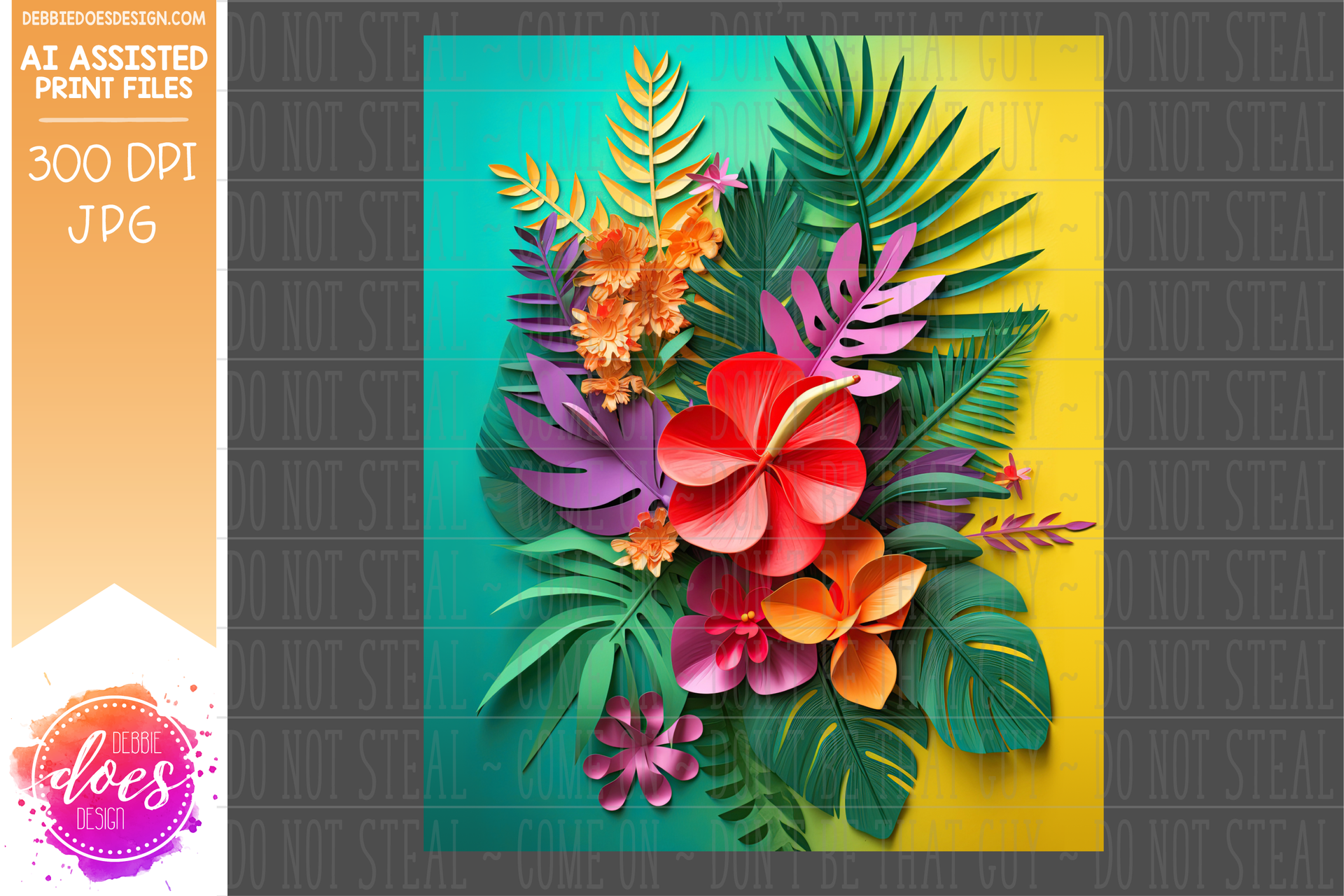 Tropical Flowers - Teal Yellow - Digital Paper - Design Elements