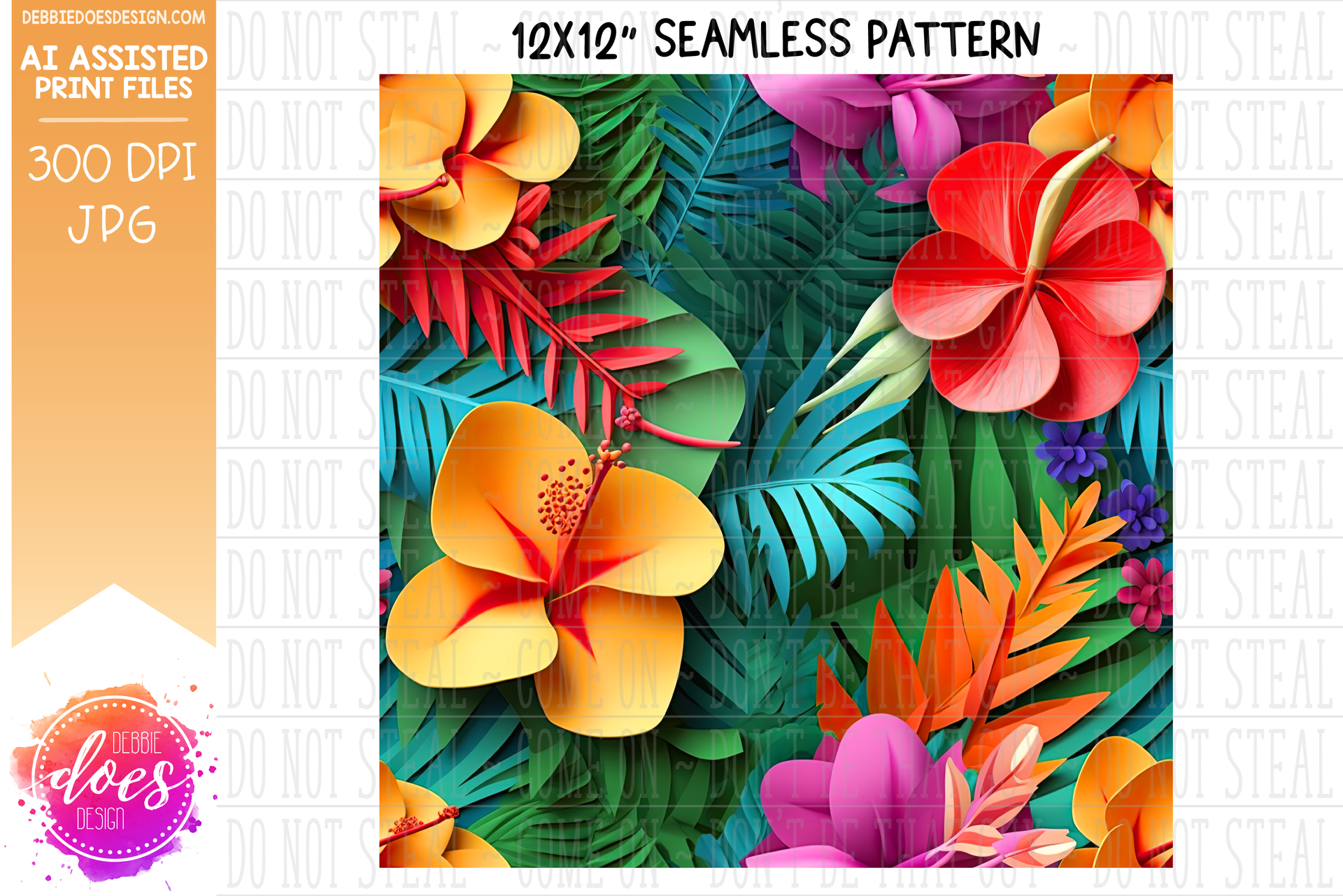 Tropical Flowers - Teal Yellow - Seamless Pattern - Design Elements