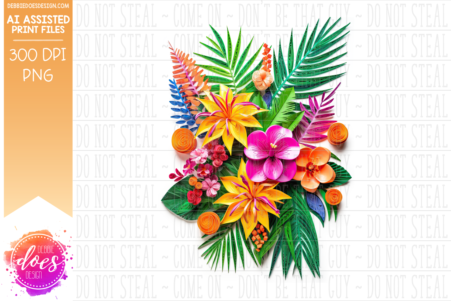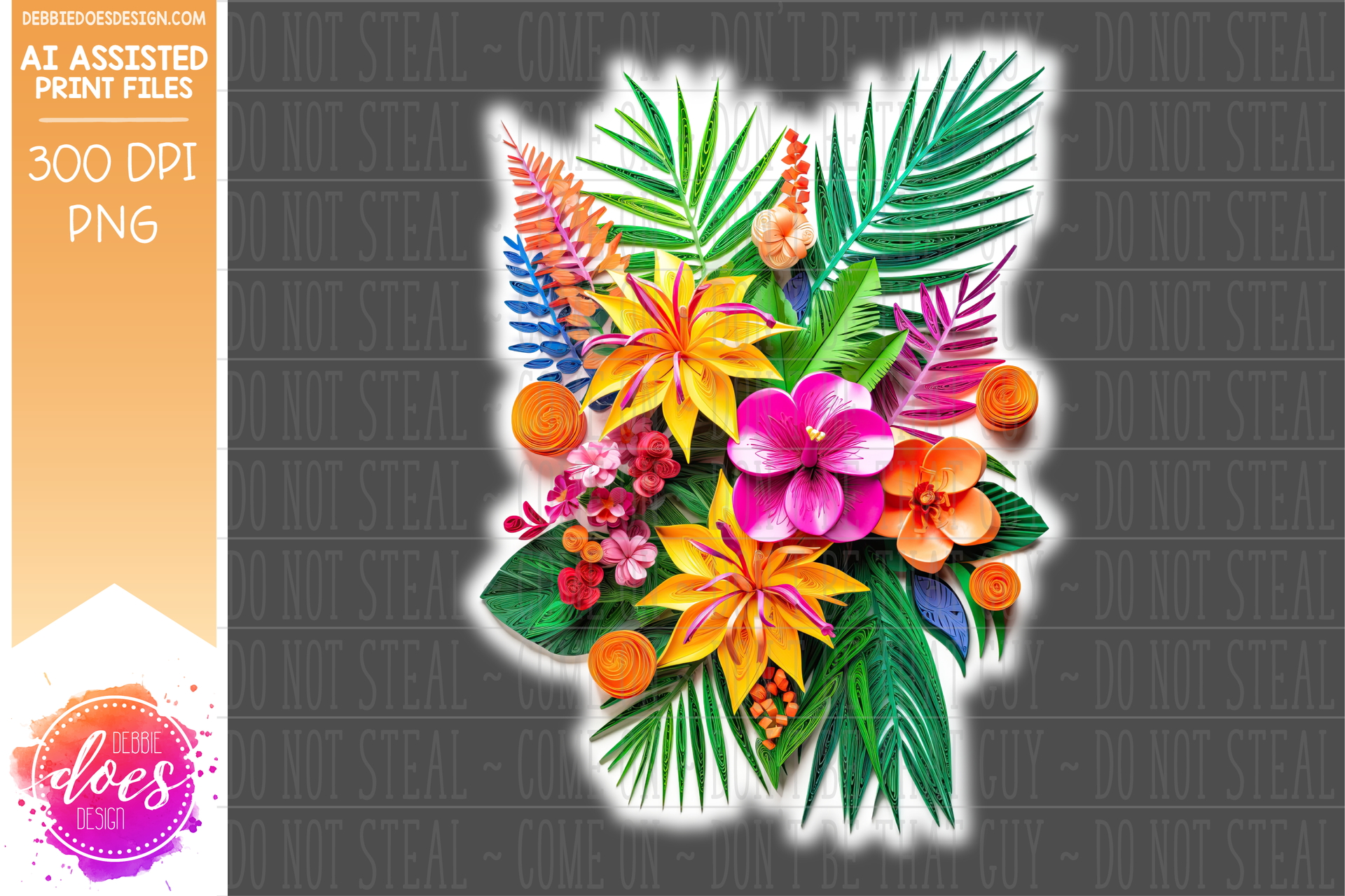 Tropical Flowers - Vivid on White - White Glow - Design Elements