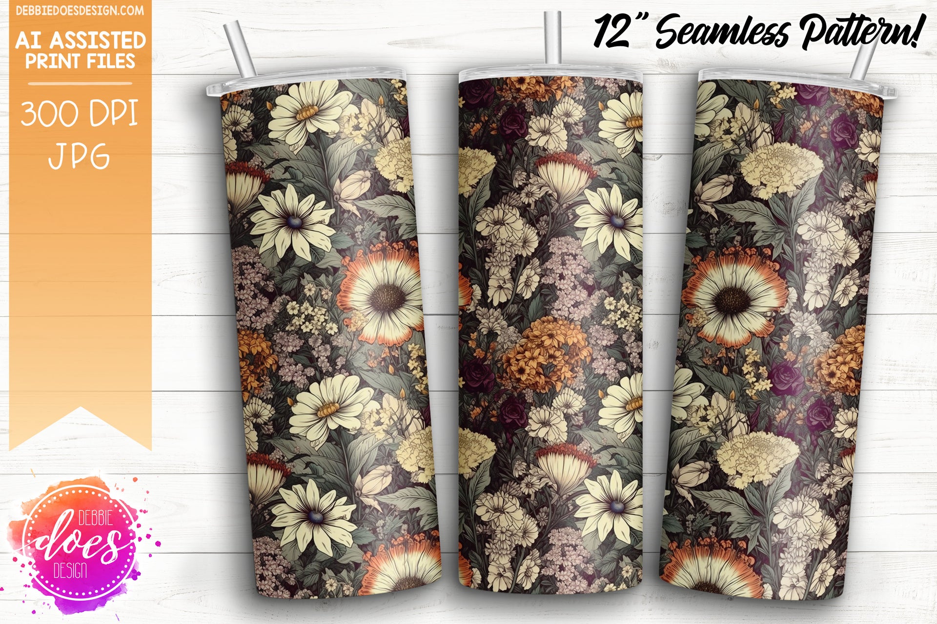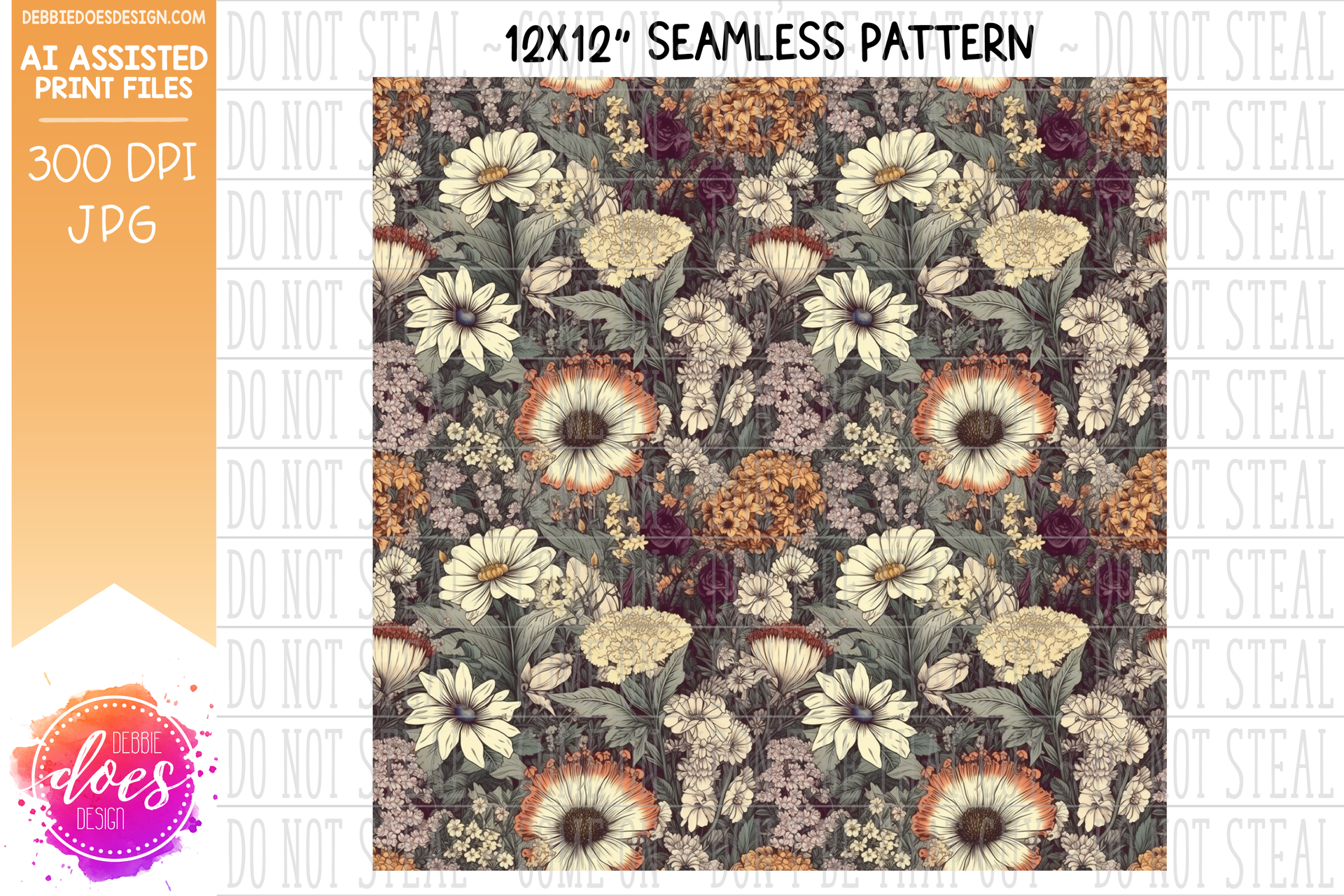 Vintage Flowers Seamless Pattern - Purple Orange Ivory - Design Elements