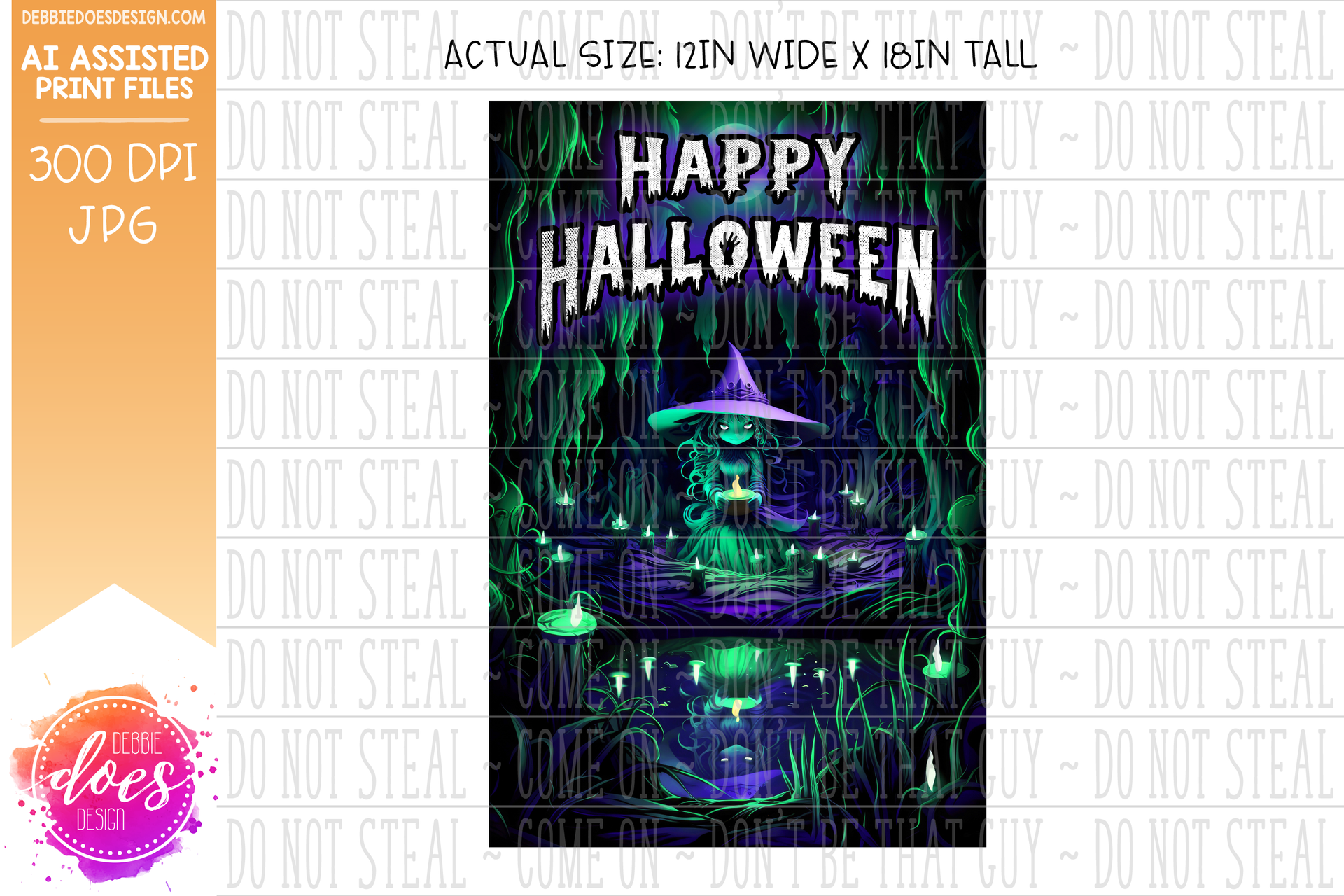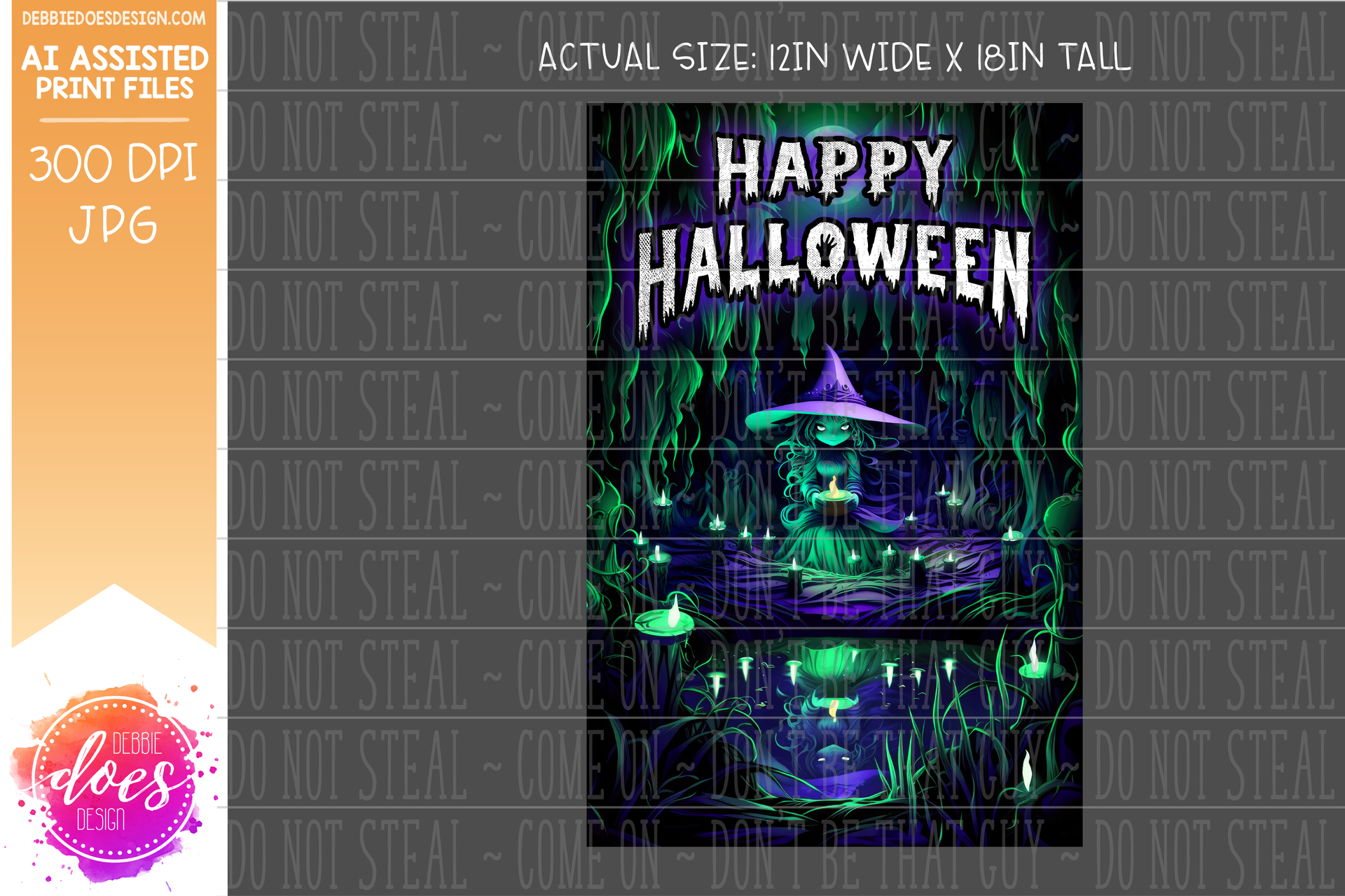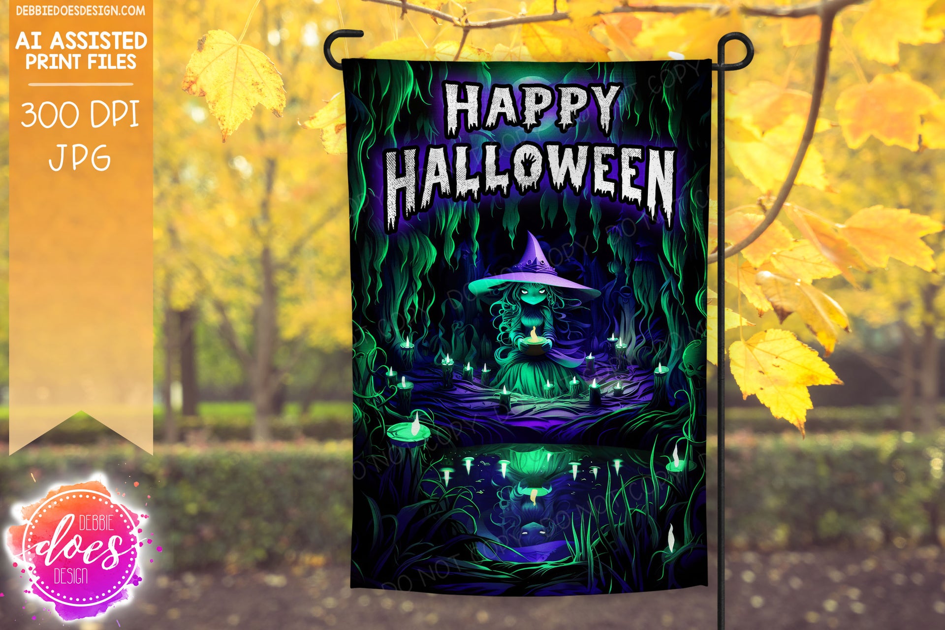 Wicked Purple and Green Witch - Happy Halloween - Garden Flag - Printable/Sublimation Design
