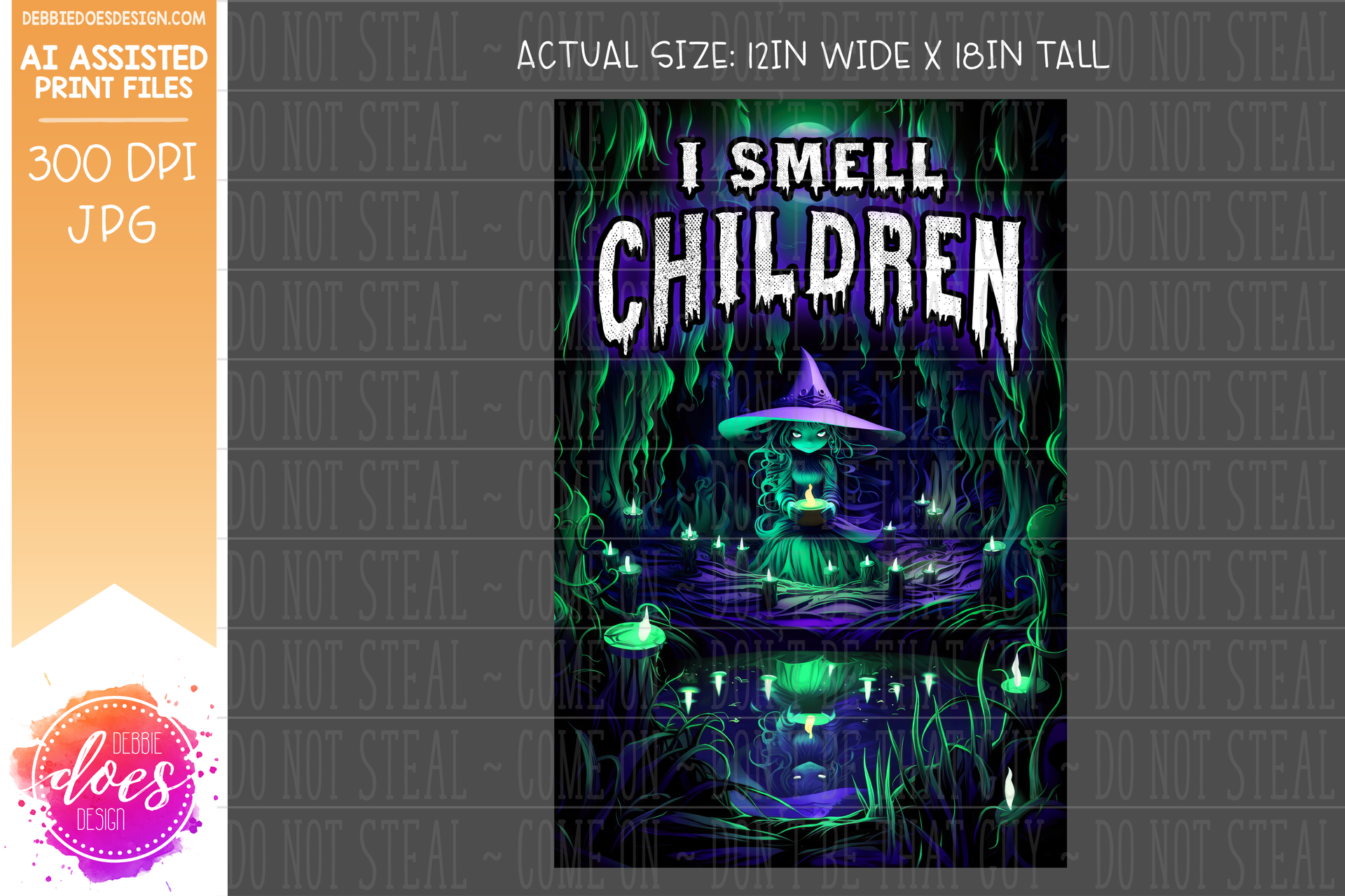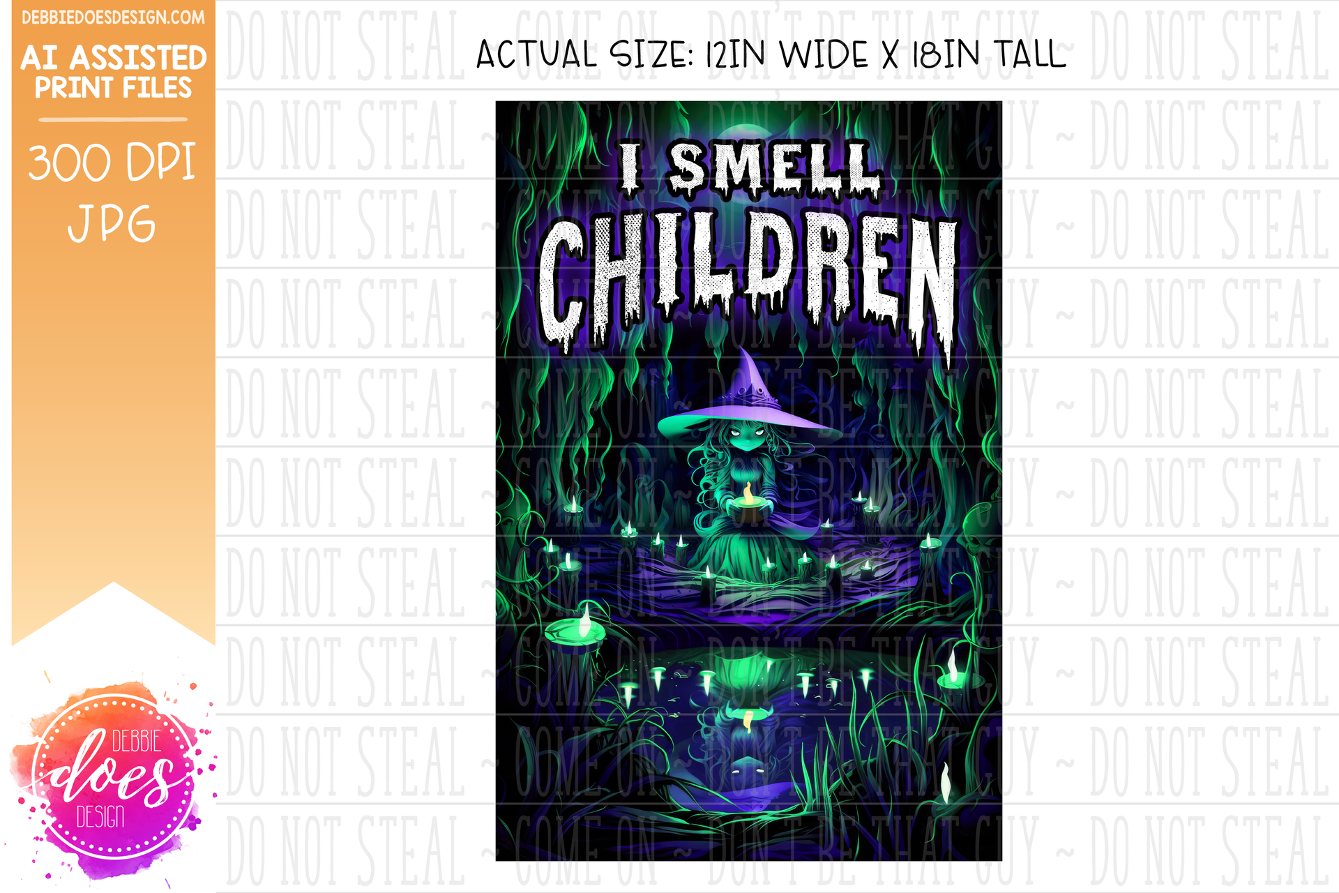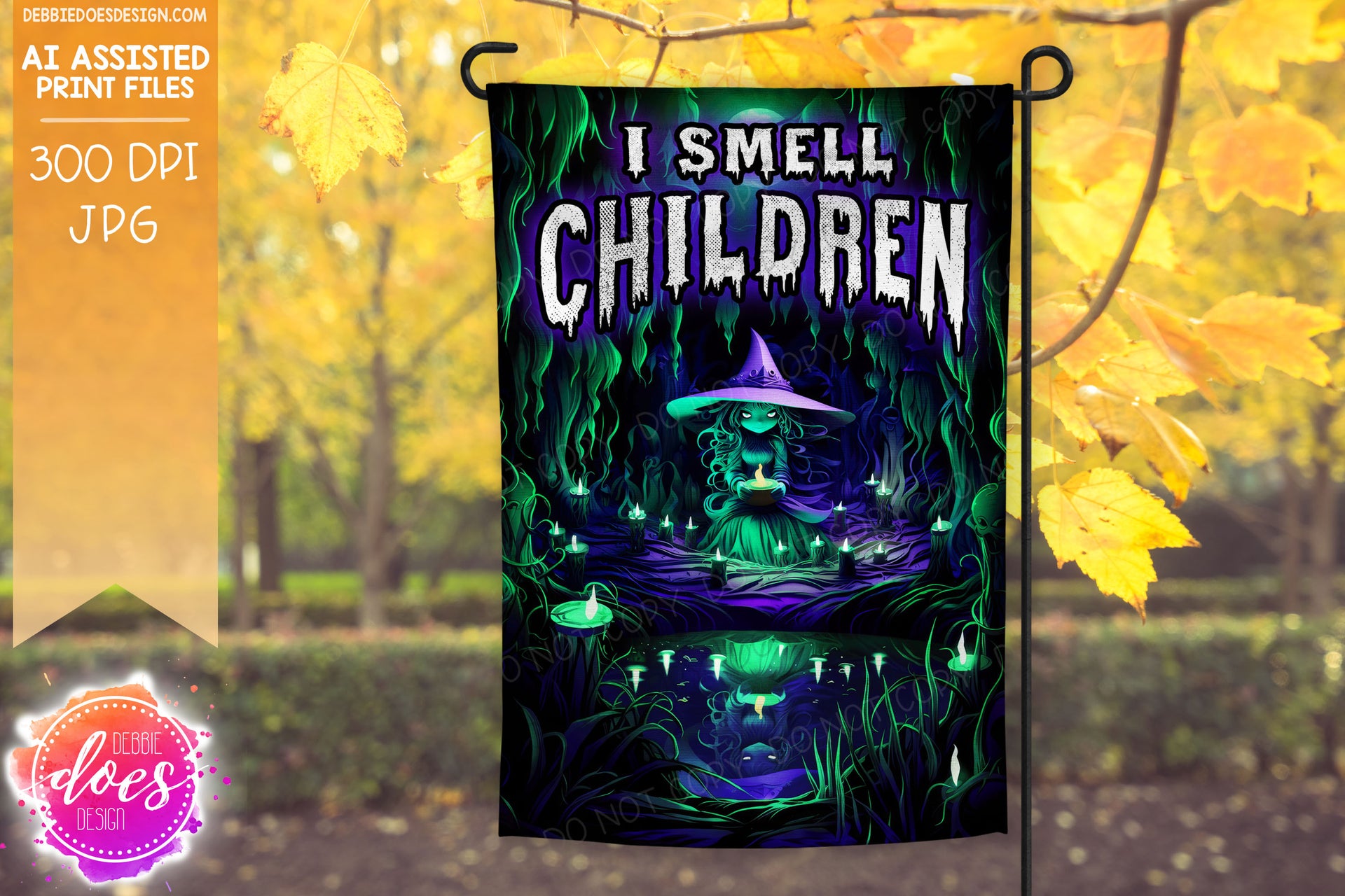 Wicked Purple and Green Witch - I Smell Children - Garden Flag - AI Assisted Printable/Sublimation Design