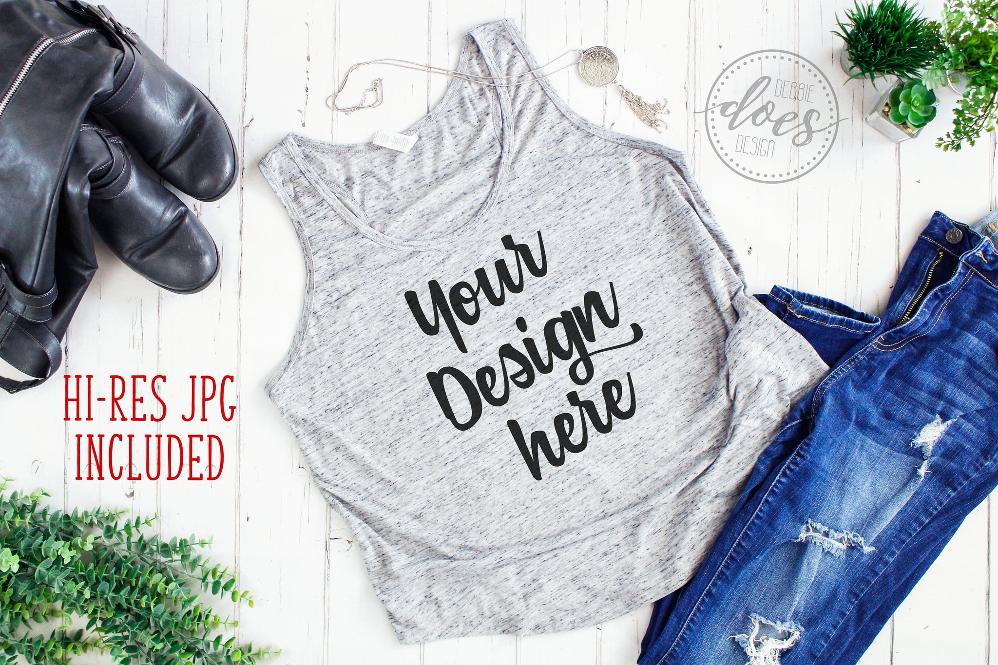 Women's Styled Tank Mockup | Grey Marbled Tank Mock-Up