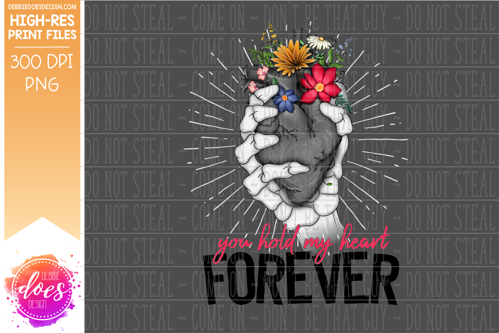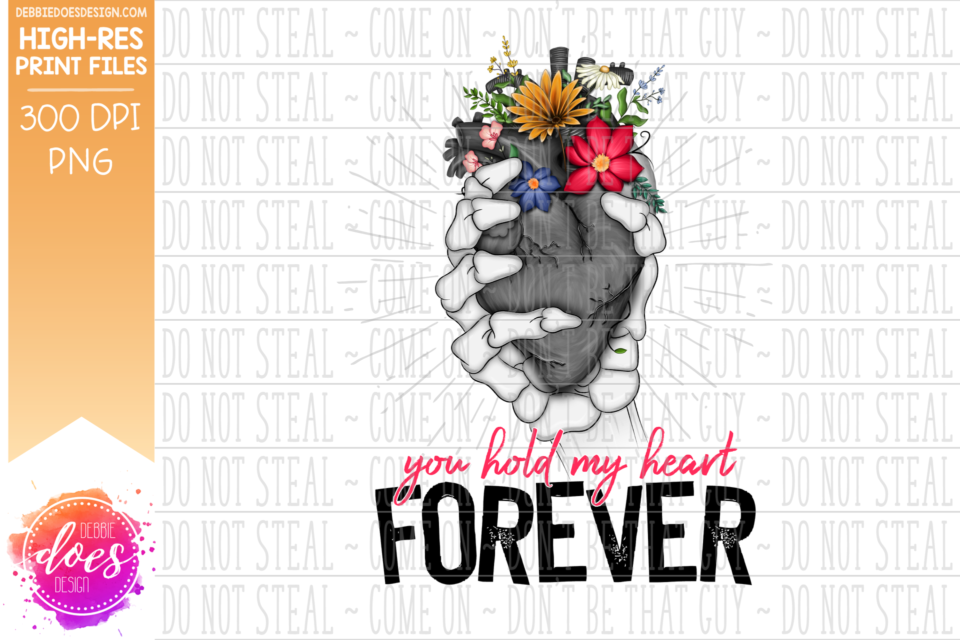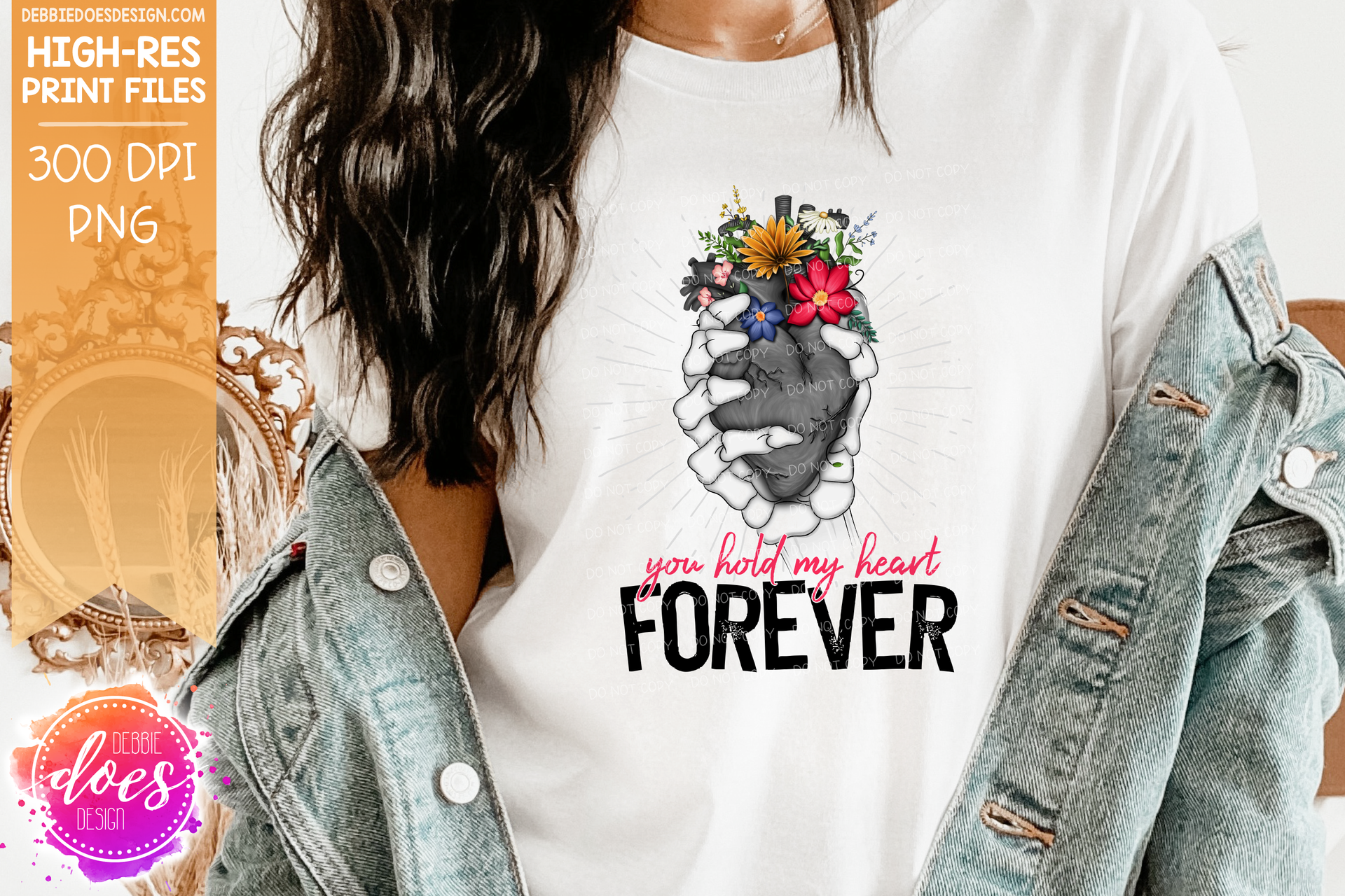 You Hold My Heart Forever - Skeleton Hand Floral Heart - Printable/Sublimation Designs